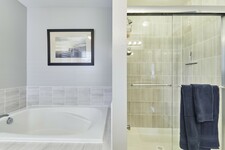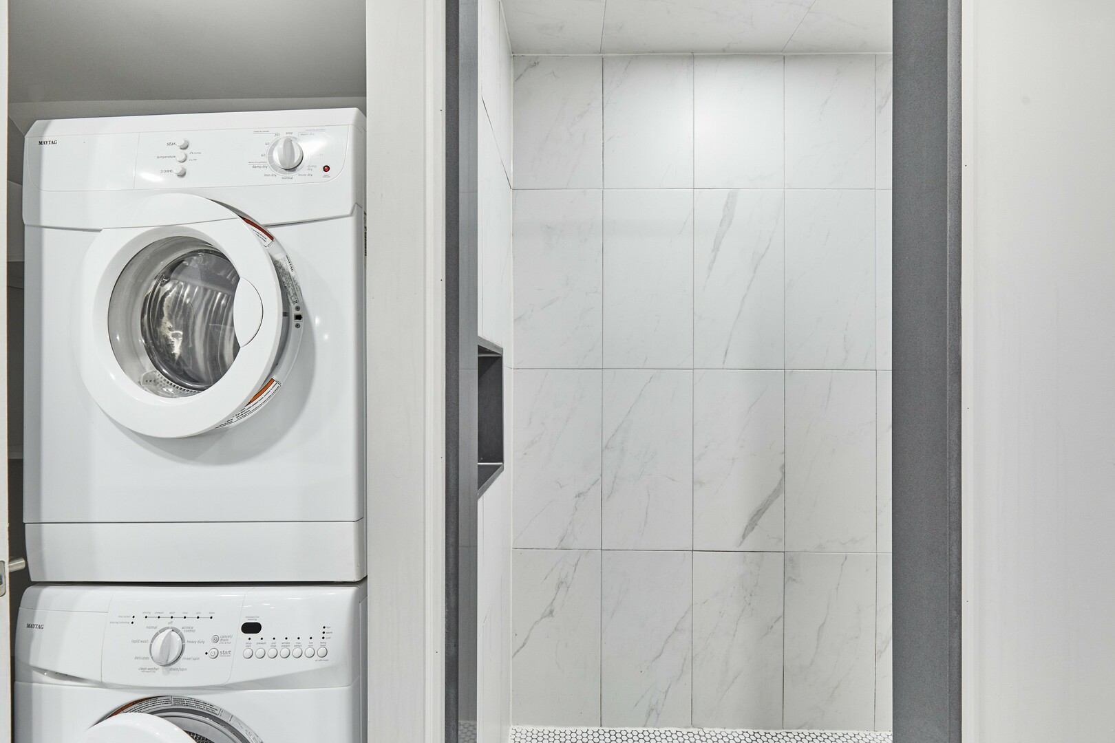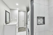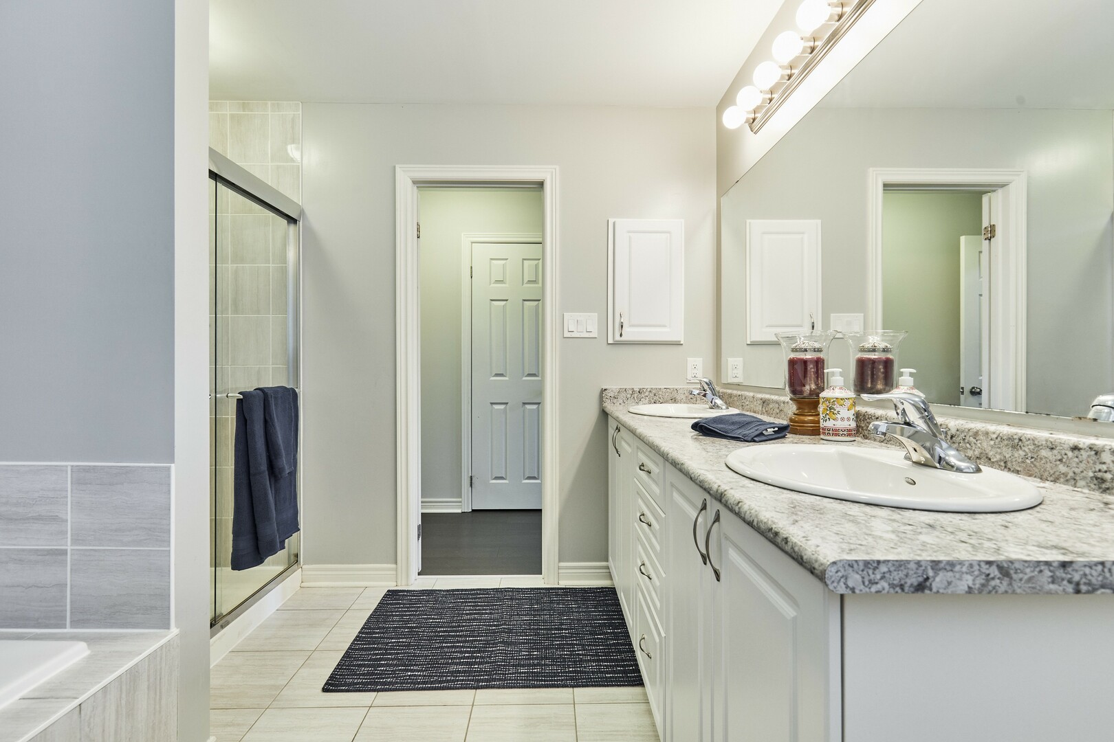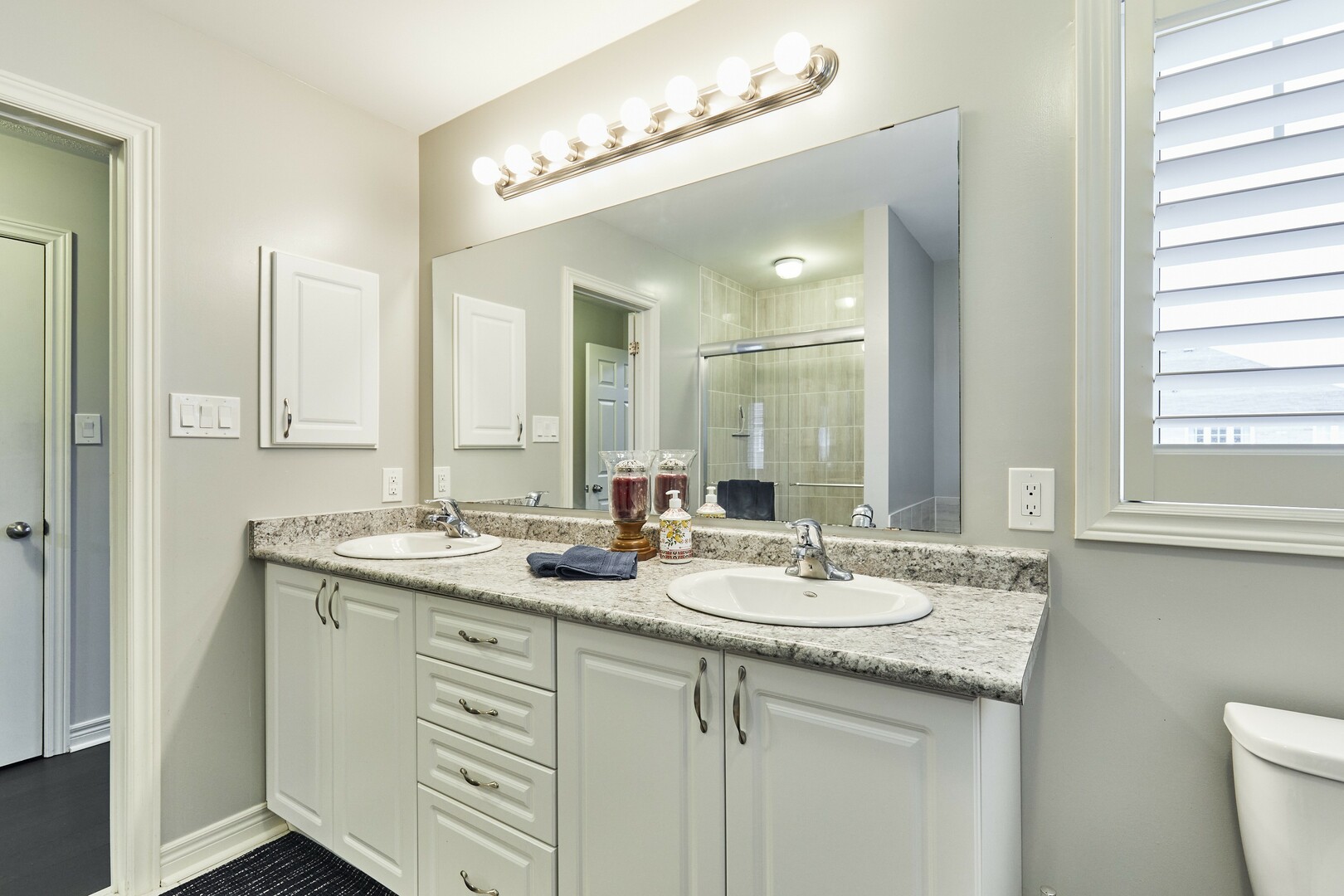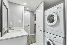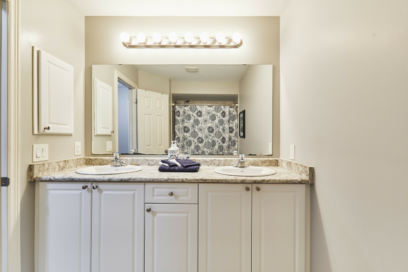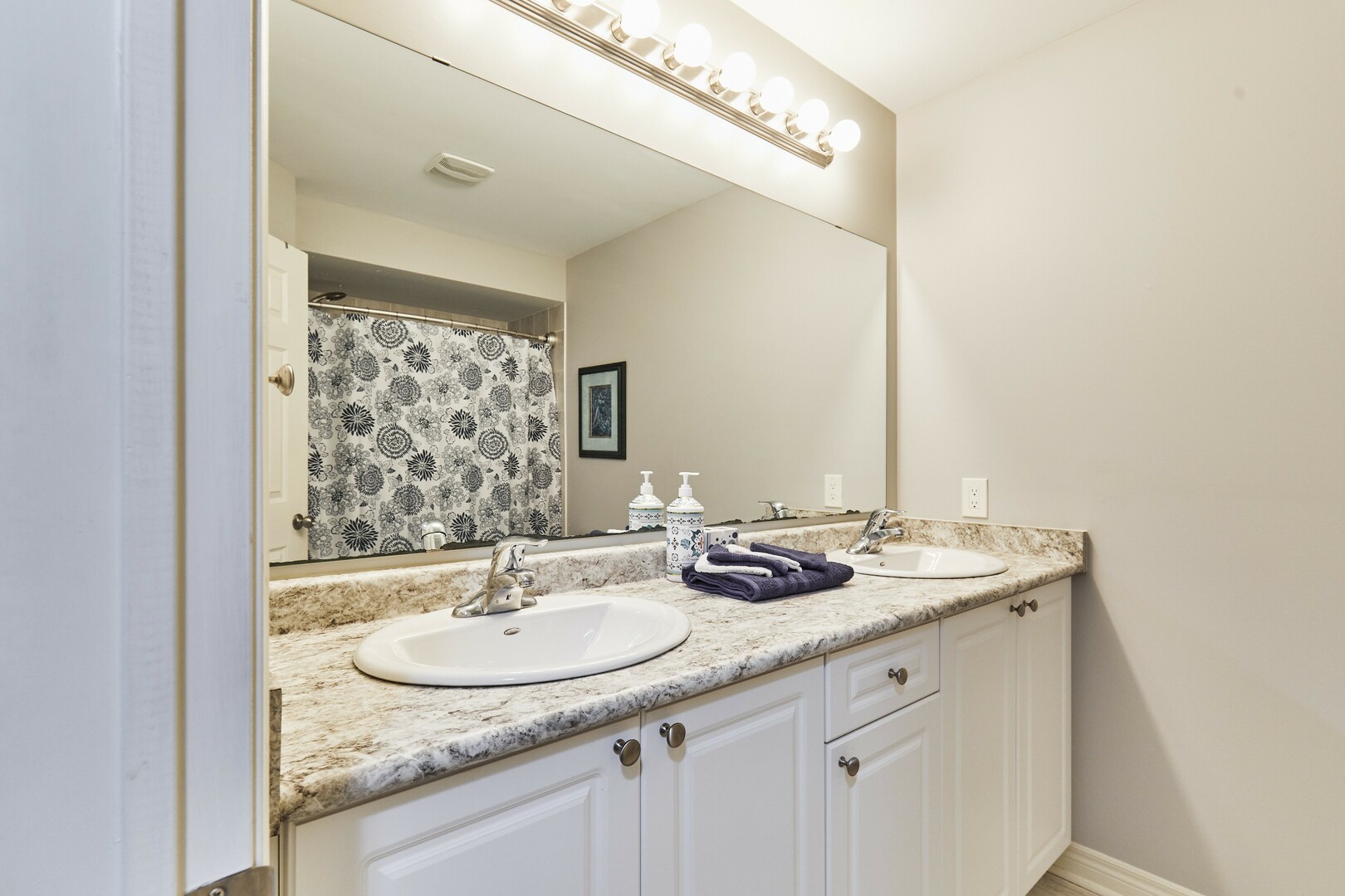 Both kitchens are finished with quartz countertops and all kitchens and bathrooms have high cabinetry.