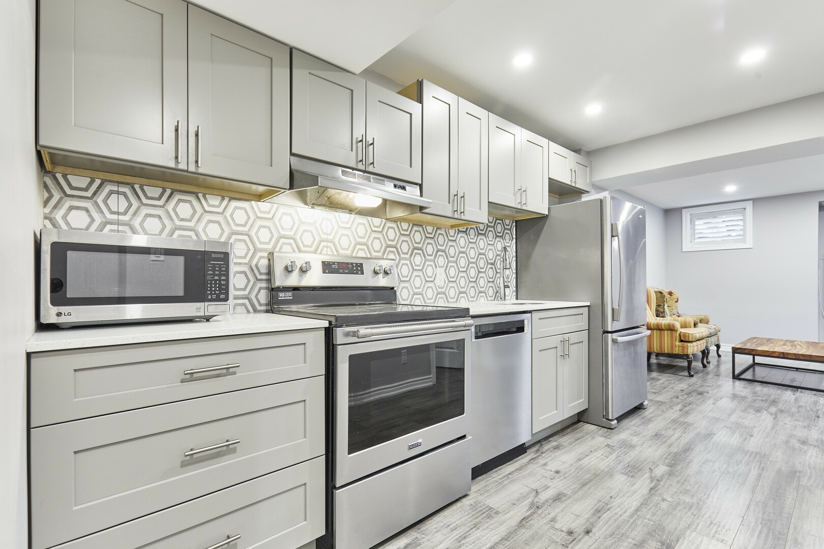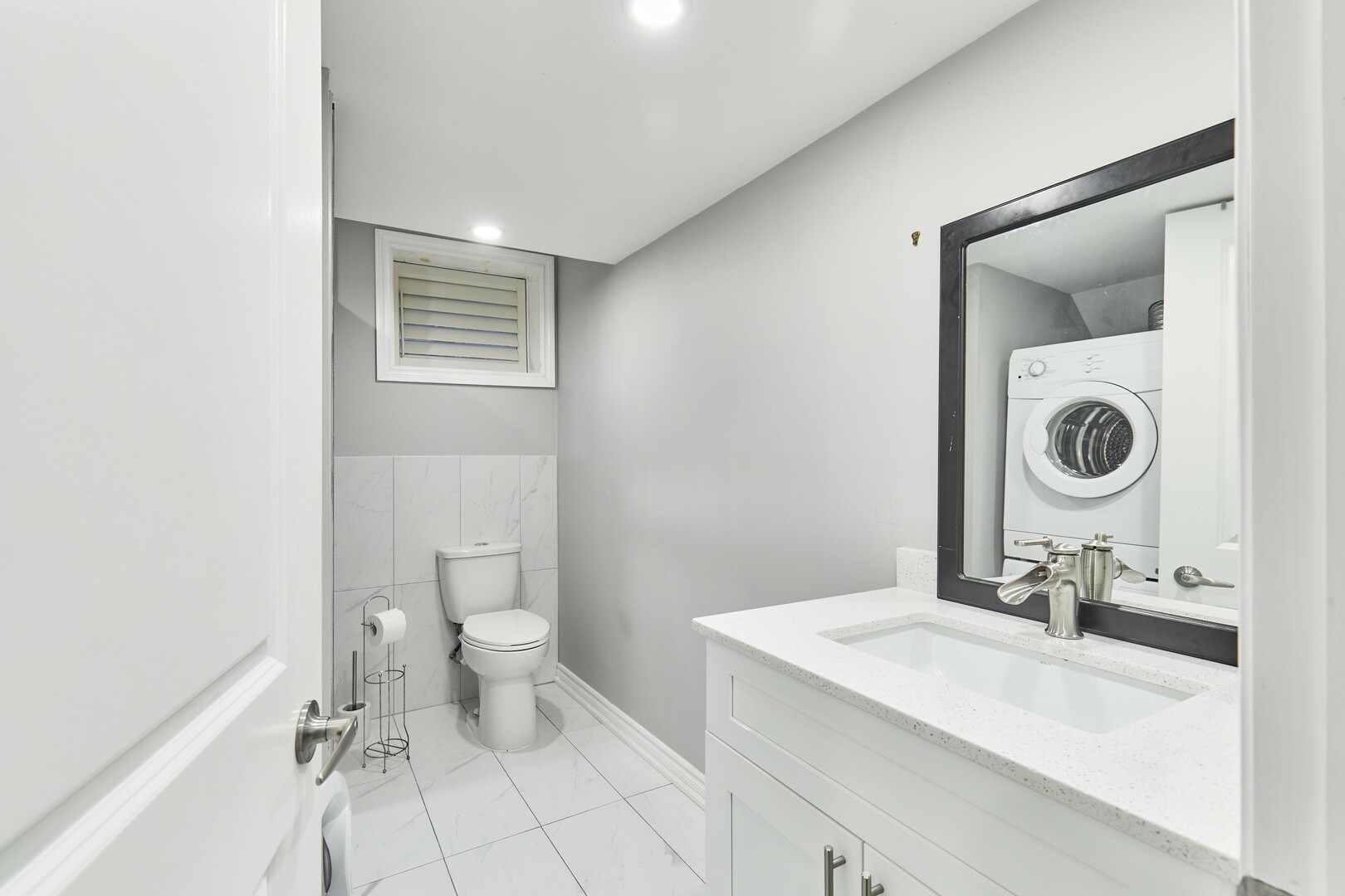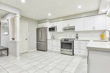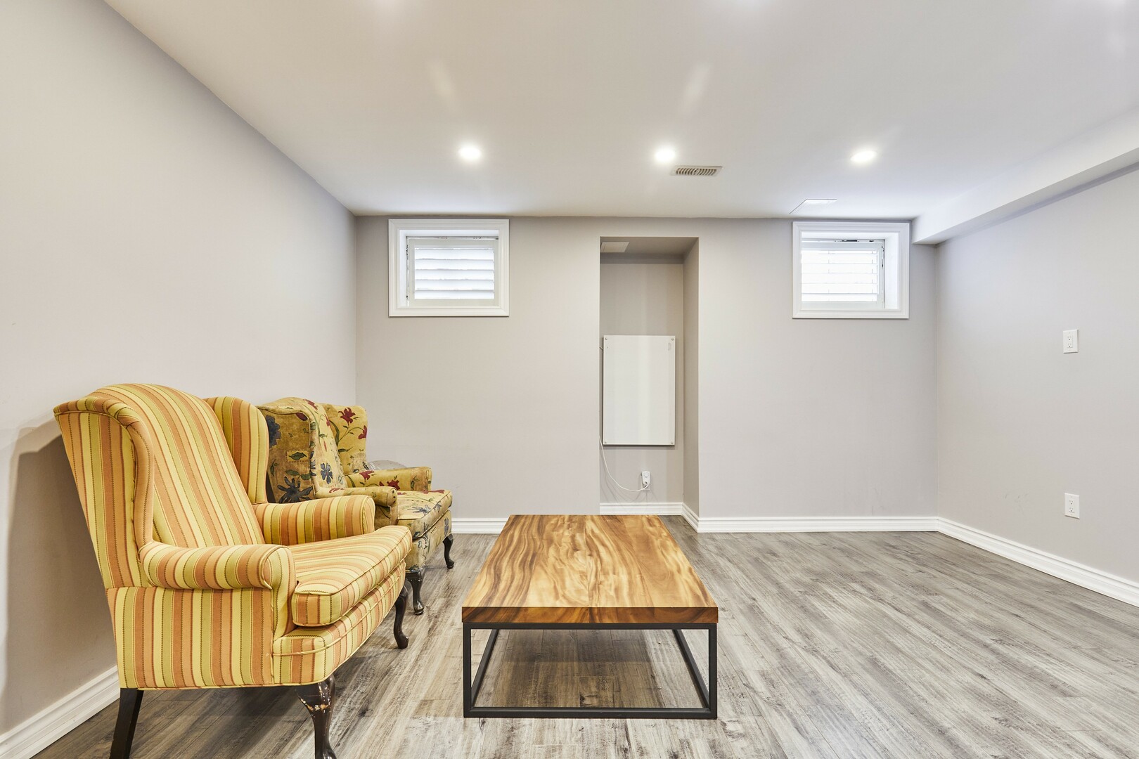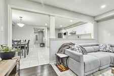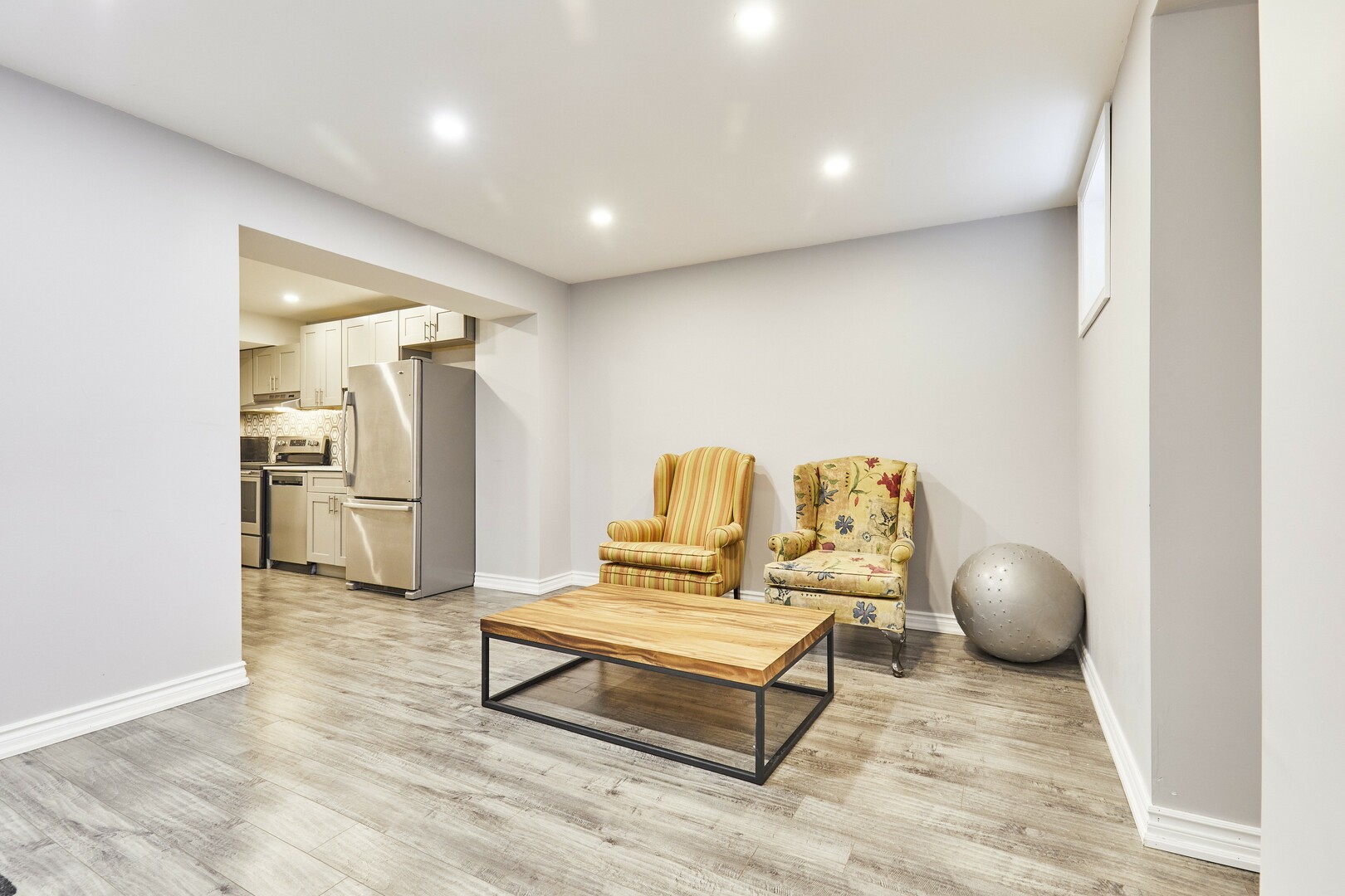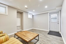 The fully renovated basement is a bright, versatile, turn key space featuring a living room, kitchen, bedroom, bathroom, laundry, and private entrance—perfect for additional income, in-laws or guests.