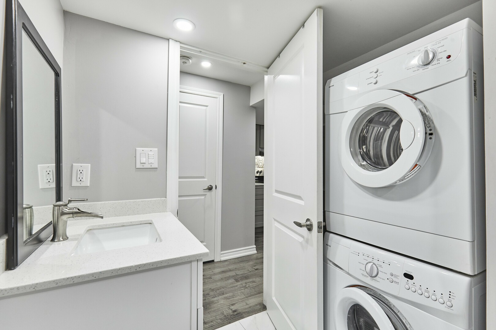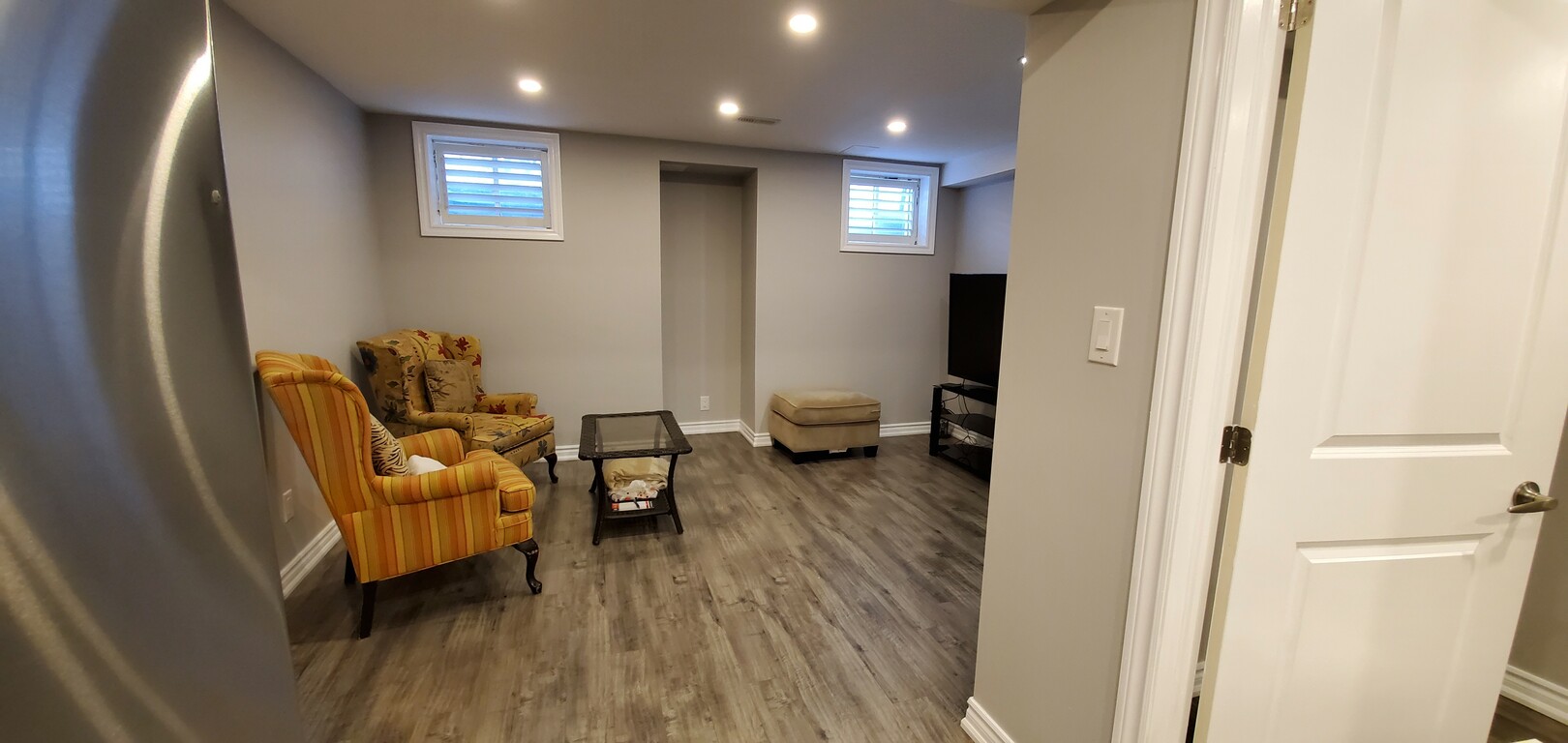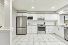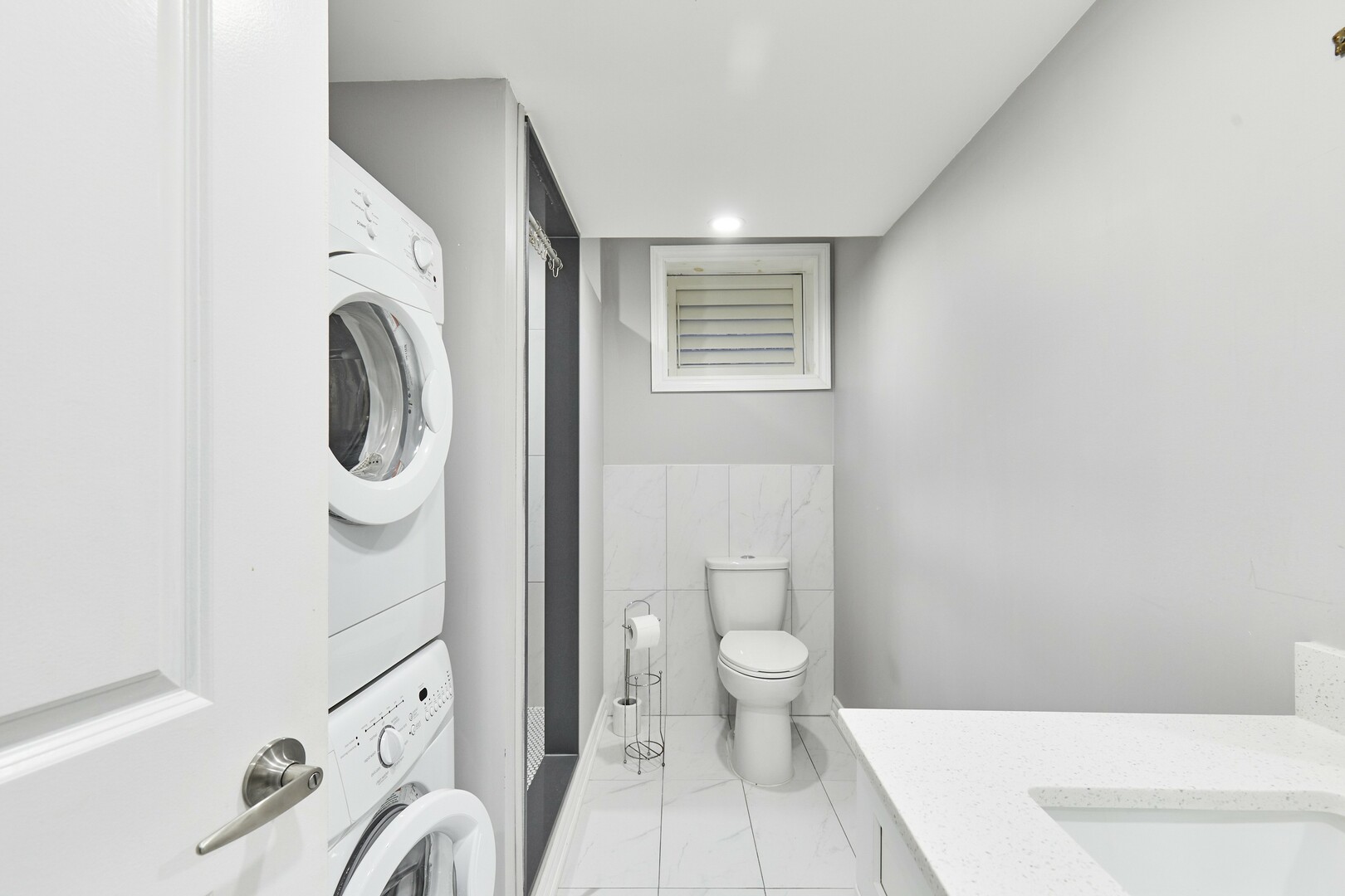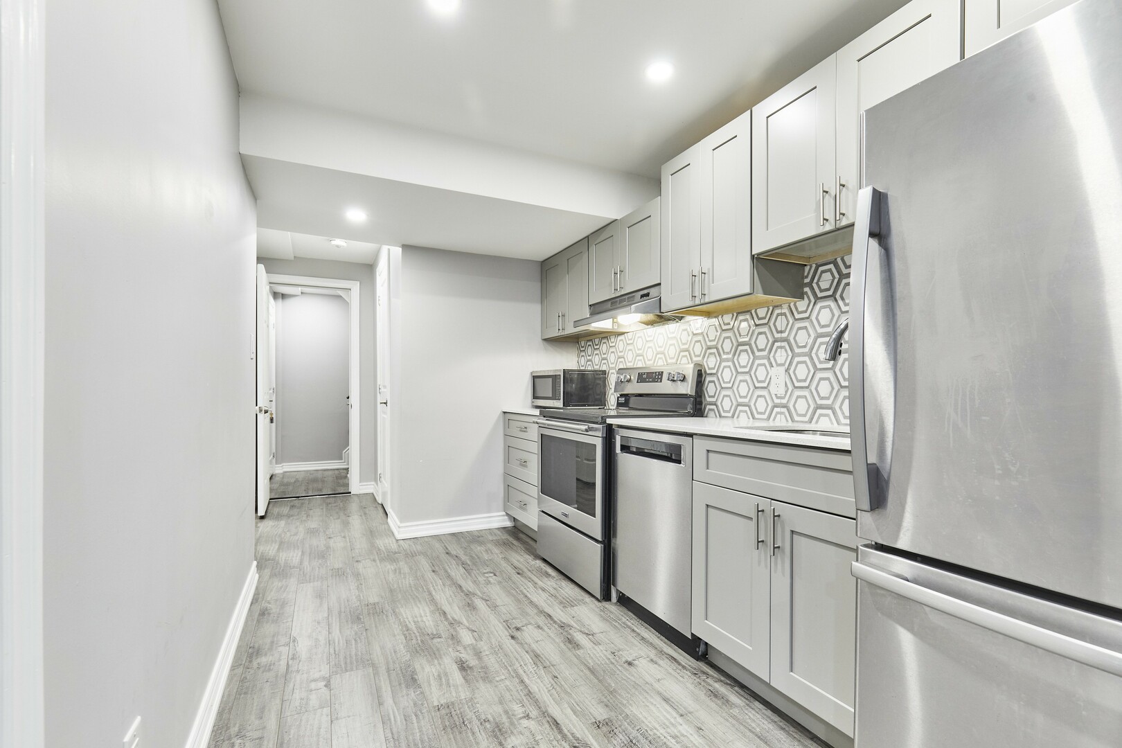 The fully renovated basement is a bright, versatile, turn key space featuring a living room, kitchen, bedroom, bathroom, laundry, and private entrance—perfect for additional income, in-laws or guests.