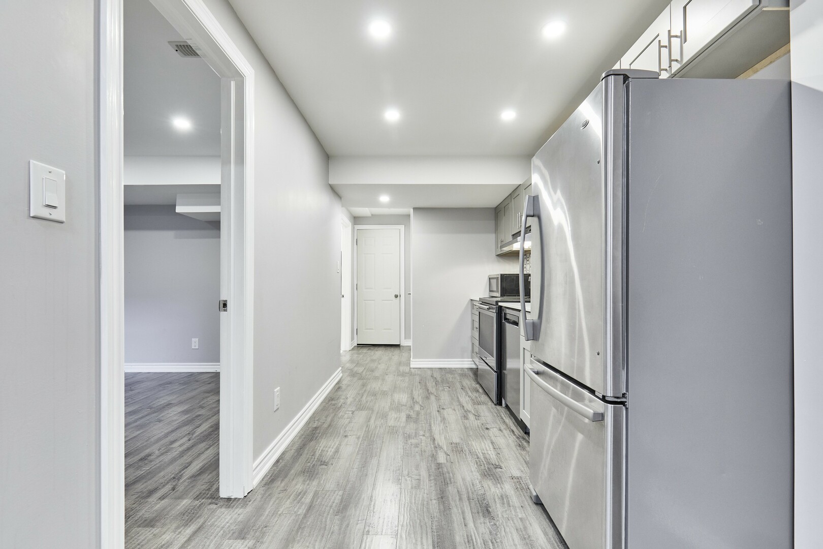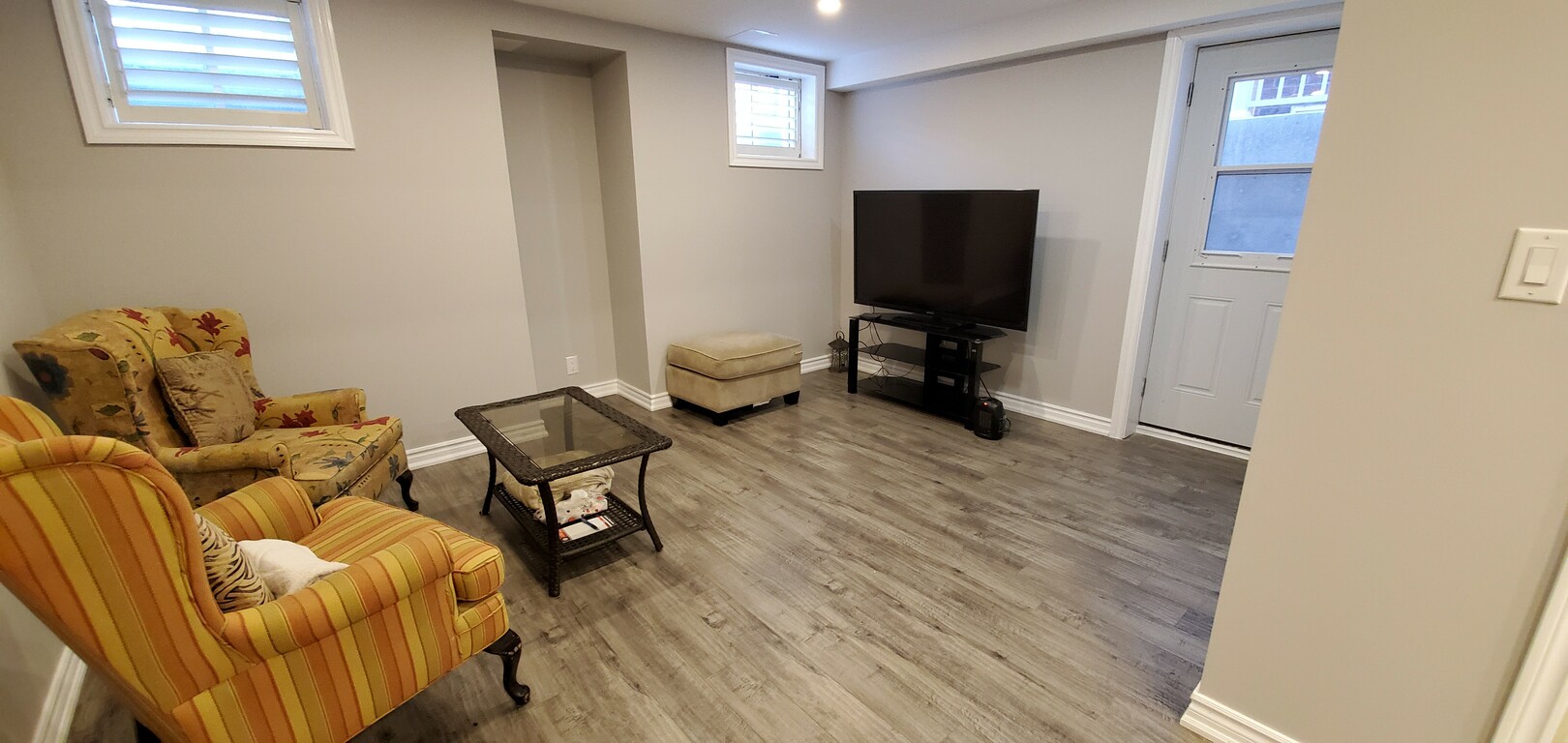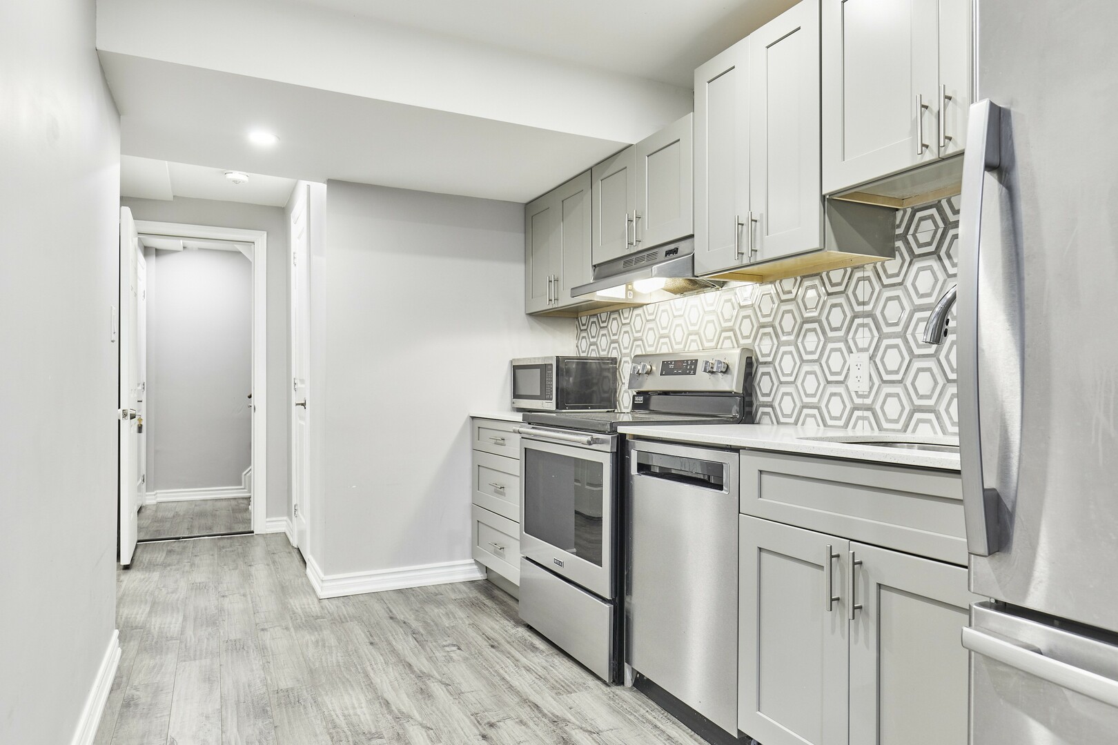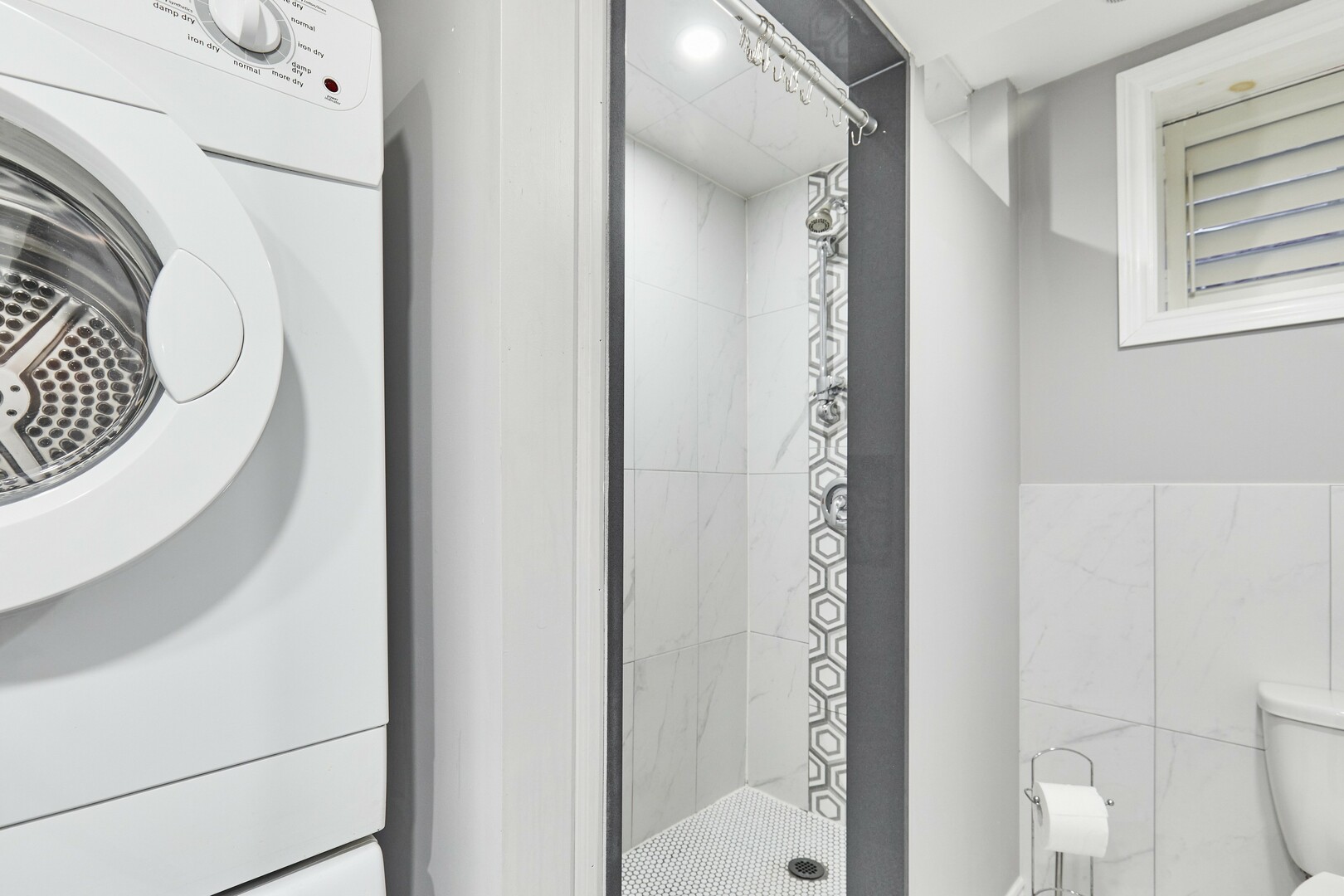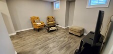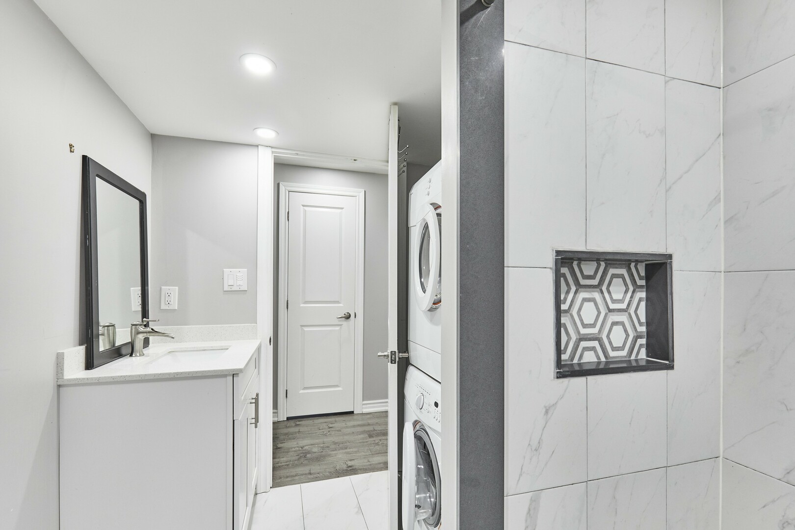 The fully renovated basement is a bright, versatile, turn key space featuring a living room, kitchen, bedroom, bathroom, laundry, and private entrance—perfect for additional income, in-laws or guests.