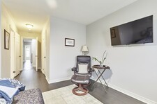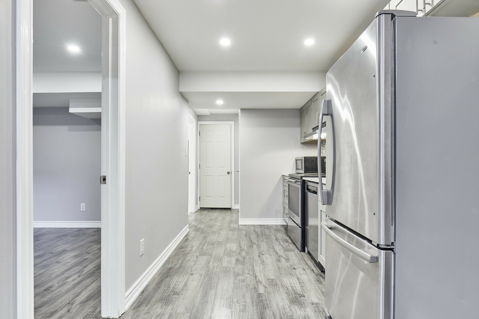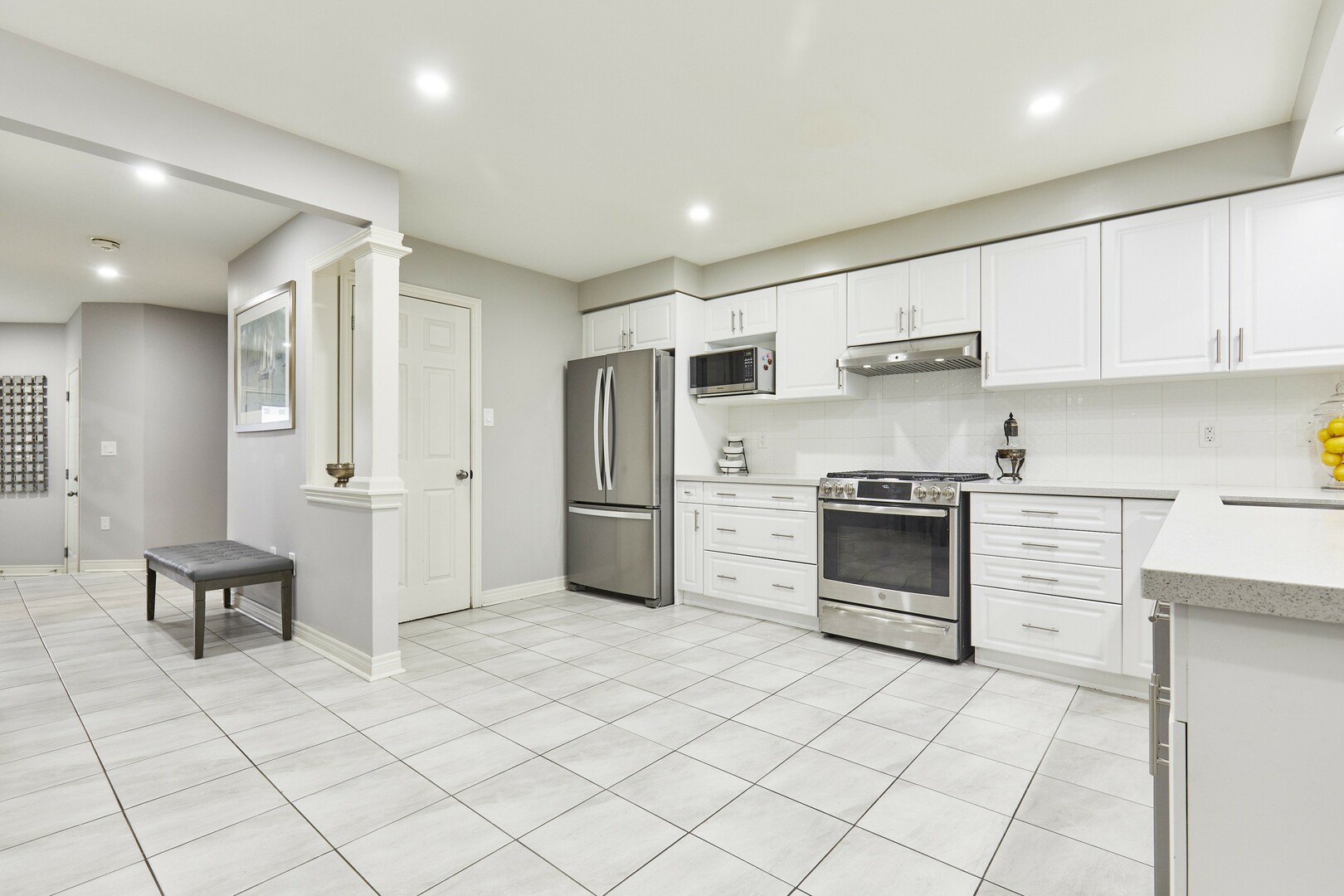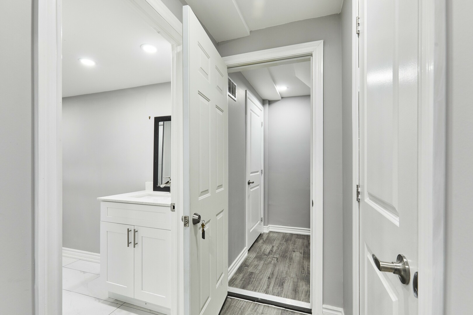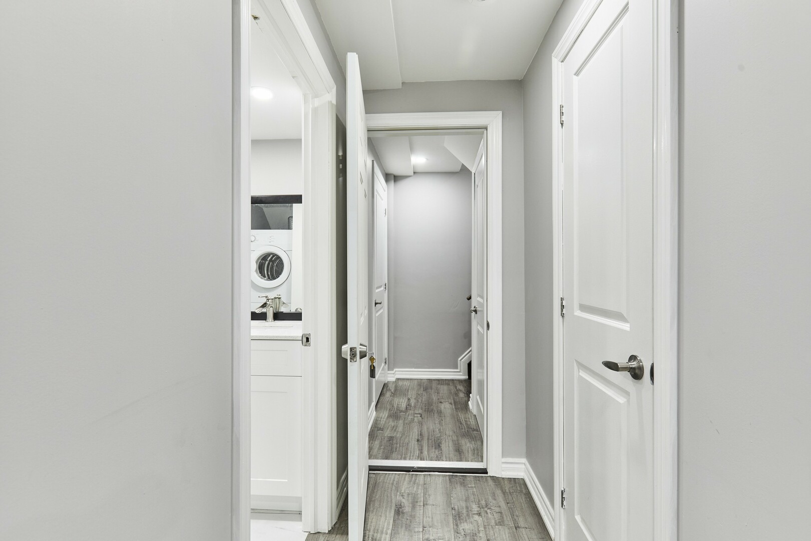 The fully renovated basement is a bright, versatile, turn key space featuring a living room, kitchen, bedroom, bathroom, laundry, and private entrance—perfect for additional income, in-laws or guests.