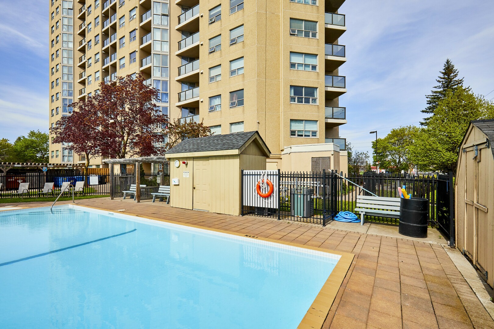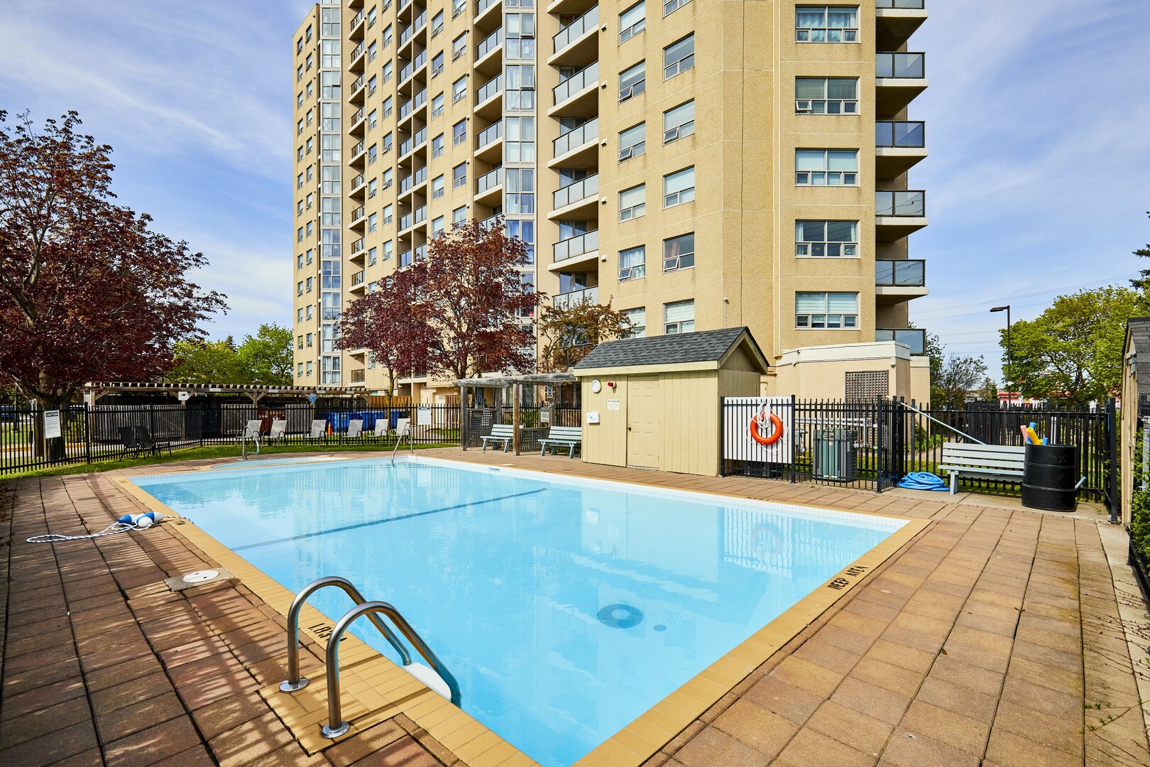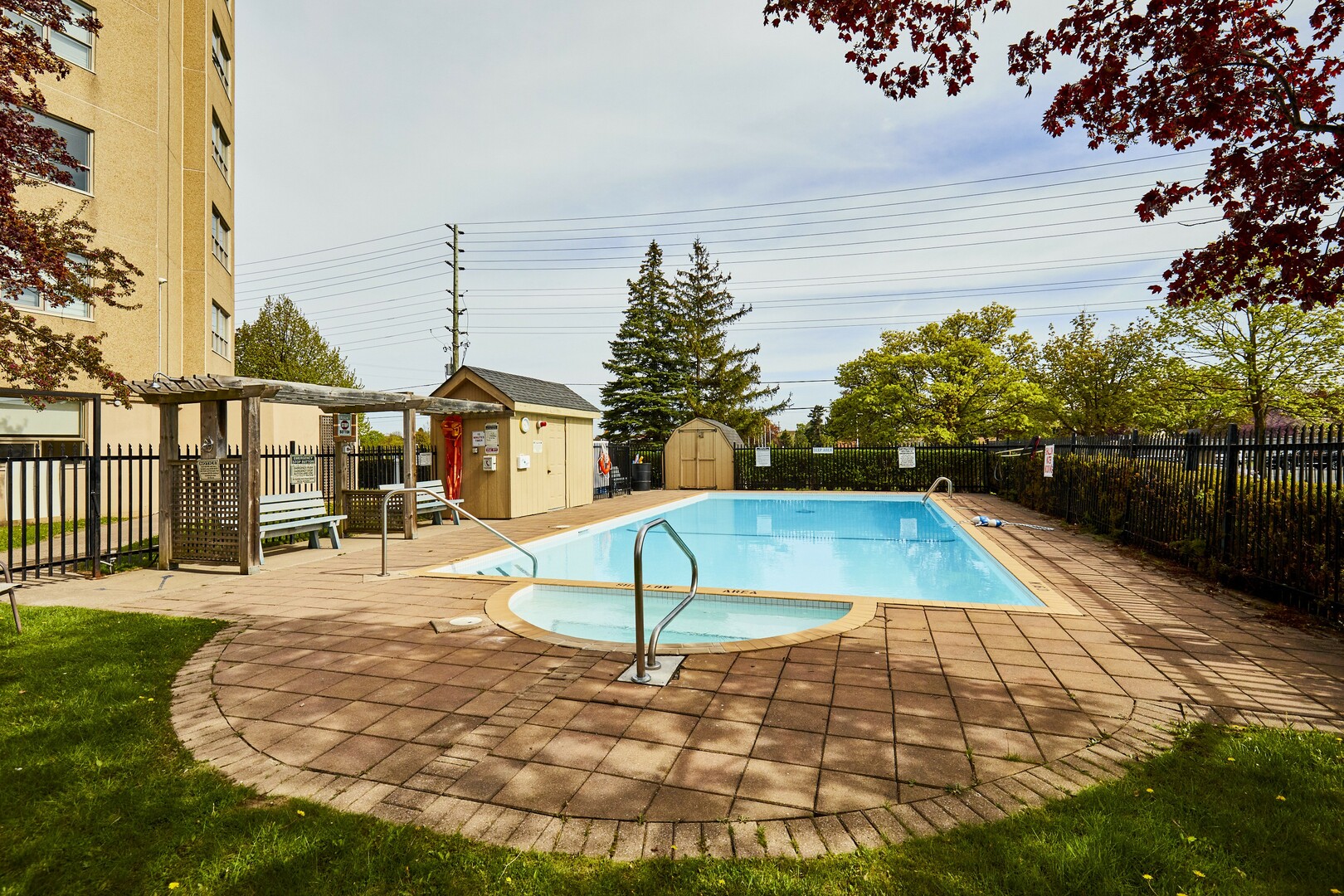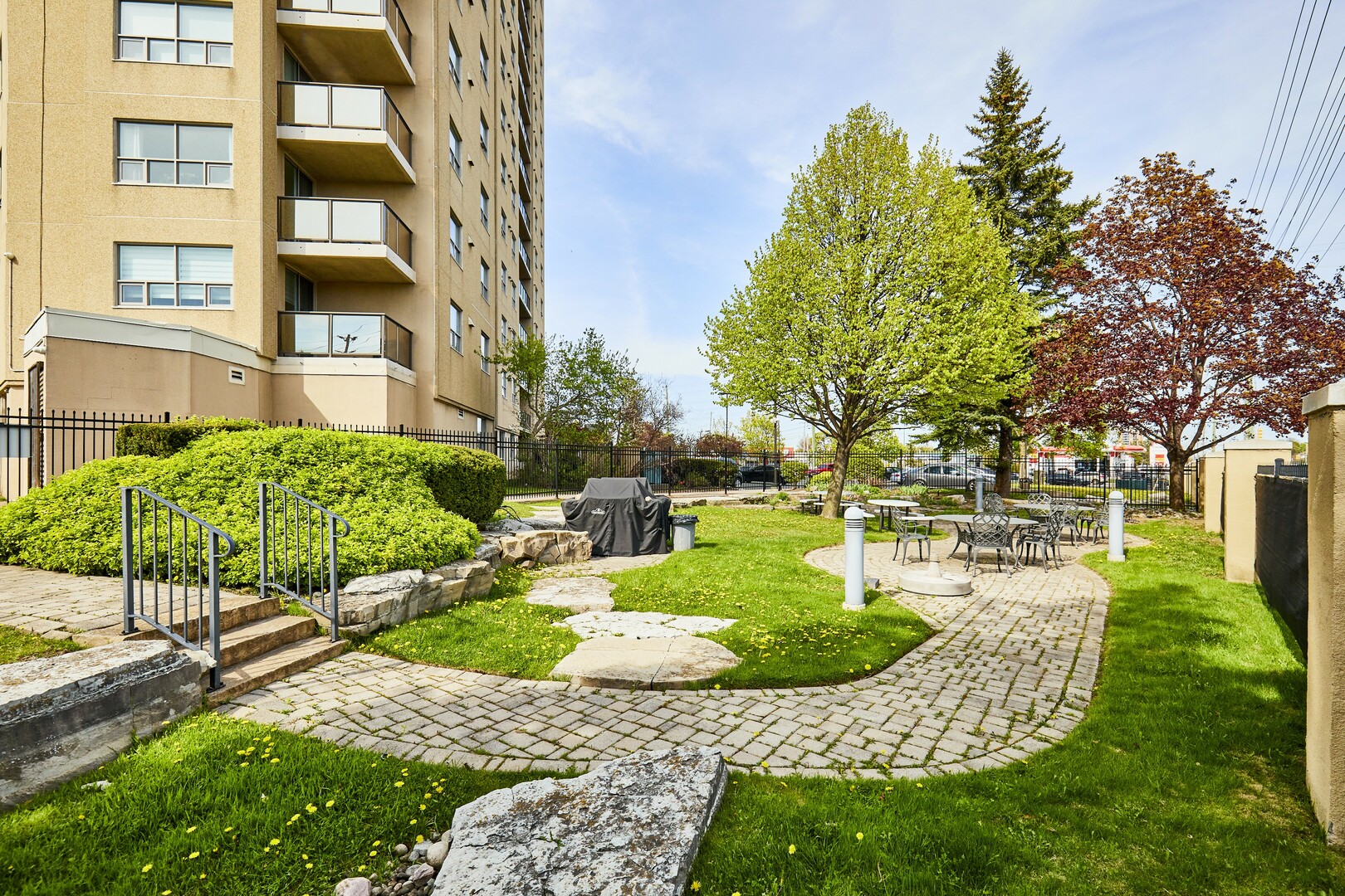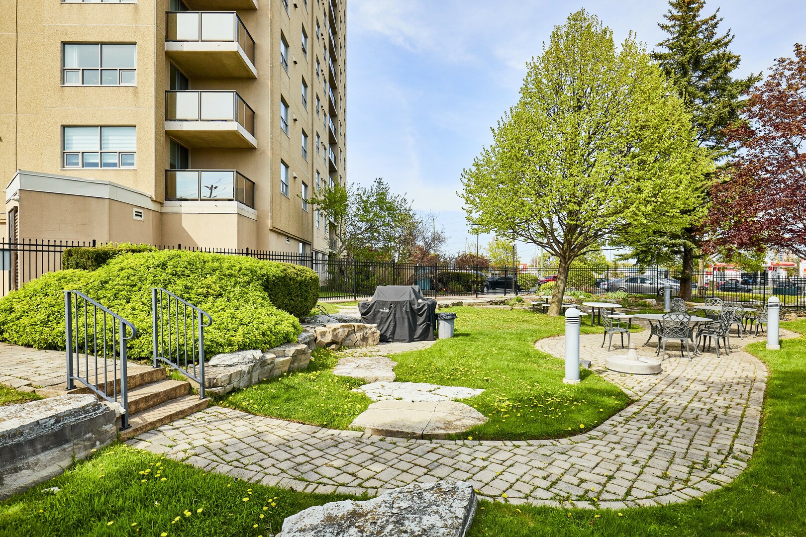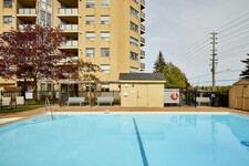 YOUR SEARCH IS OVER / Perfect Location - WALK TO SHOPPING, BANKING, MEDICAL RESTAURANTS, TRANSIT & MORE / Beautiful, Updated 2-BEDROOM , 2-BATH, 2 PARKING, & LOCKER condo, With 954 sqft / VERY REASONABLE MAINTENANCE FEES / This unit offers a desirable Split Bedroom Layout, stylishly appointed with Modern Colours and durable VINYL FLOORING THROUGHOUT. Walkout from the living room to a Private Patio overlooking Mature Trees and a Privacy Hedge with a Bright Southeast Exposure. The Spacious White Kitchen is has plenty of Counter & Cupboard Space along with a convenient pass-through to the Dining Area. The PRIMARY Bedroom comfortably fits a KING SIZE BED and features a Walk-In Closet and 3pc ENSUITE / Great Second Bedroom or Office / Enjoy the comfort of NEWER WINDOWS, NEW PATIO DOOR, UPDATED HEATING UNIT, / BOTH BATHROOMS have been UPDATED and the ENSUITE LAUNDRY adds everyday convenience. This Absolutely MOVE IN READY condo combines functionality, Comfort and Privacy in a WELL MAINTAINED Building Amenities include an OUTDOOR POOL, PATIO, GYM & SAUNA. FANTASTIC LOCATION Close to Major Shopping, Community Center, 401, TRANSIT & GO TRAIN **** Taxes & Sqft are approximate based on similar units and not yet assessed *** No Pets and No Smoking.