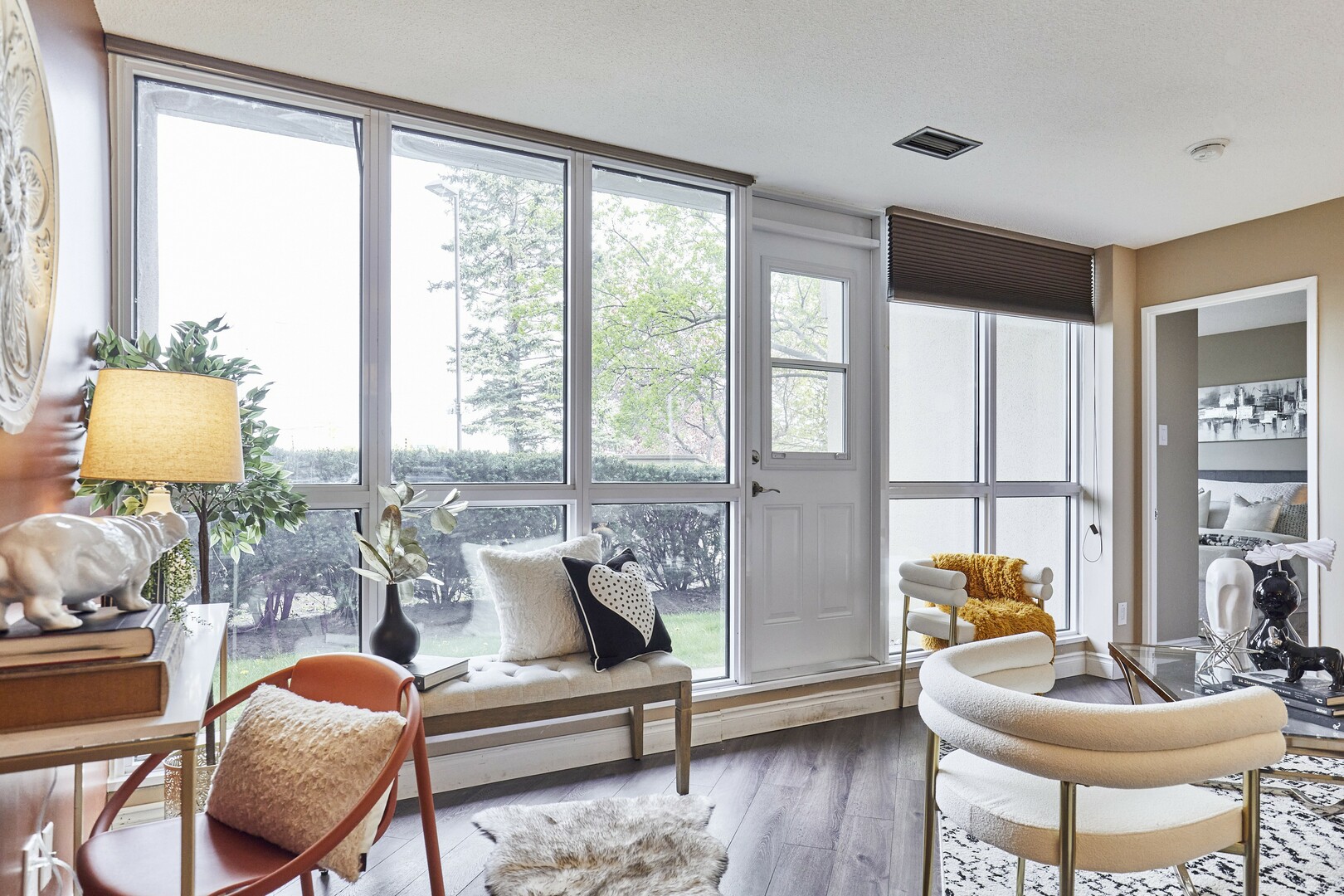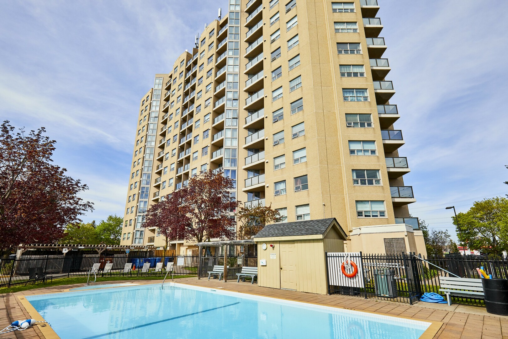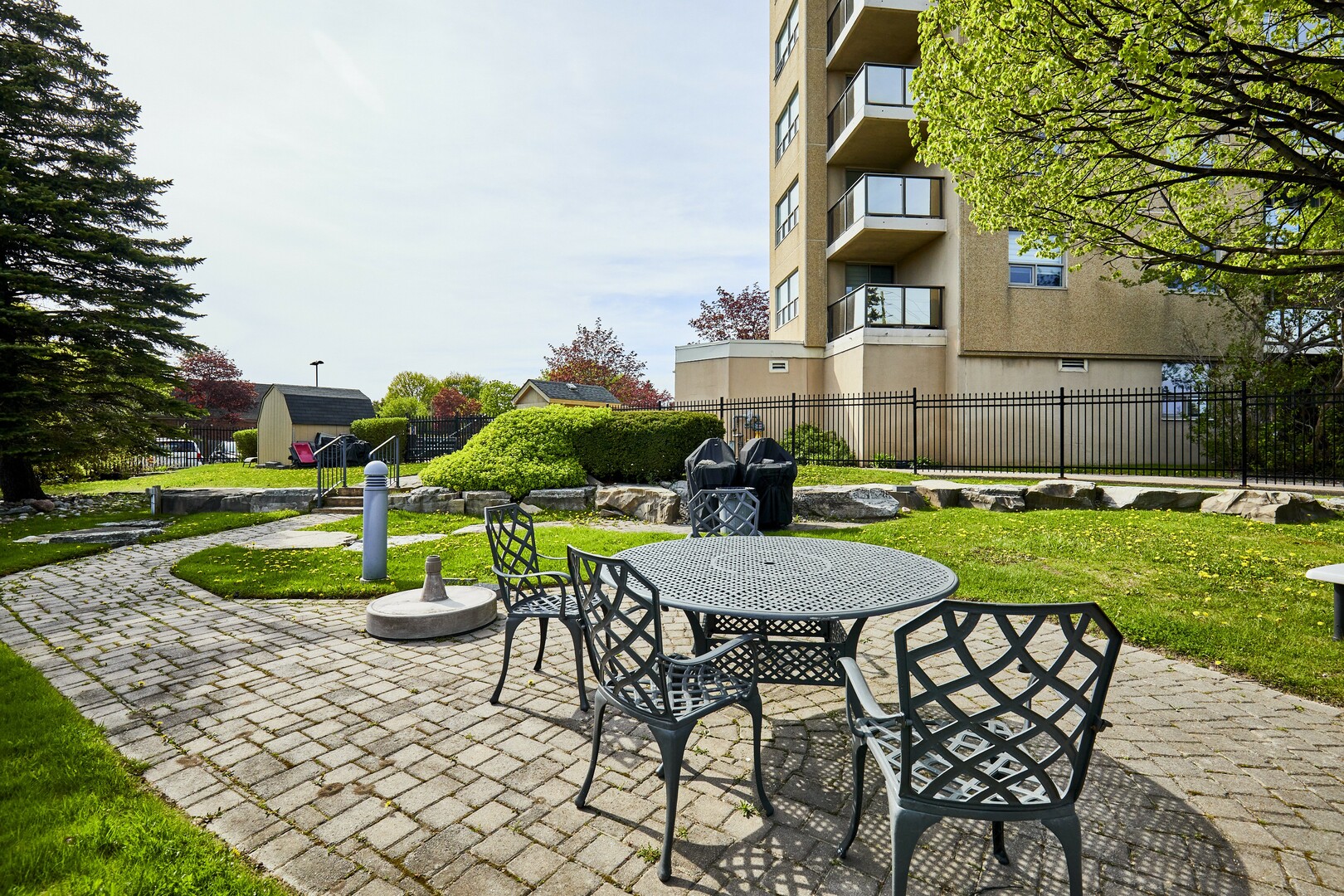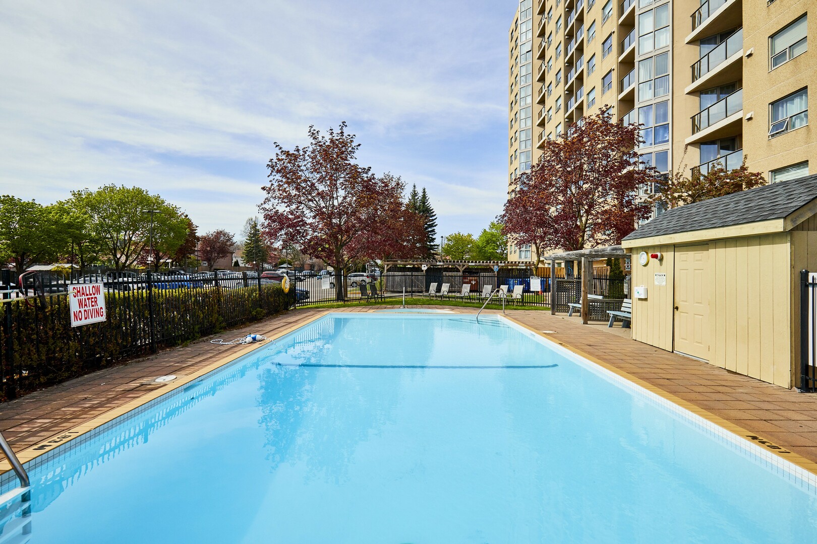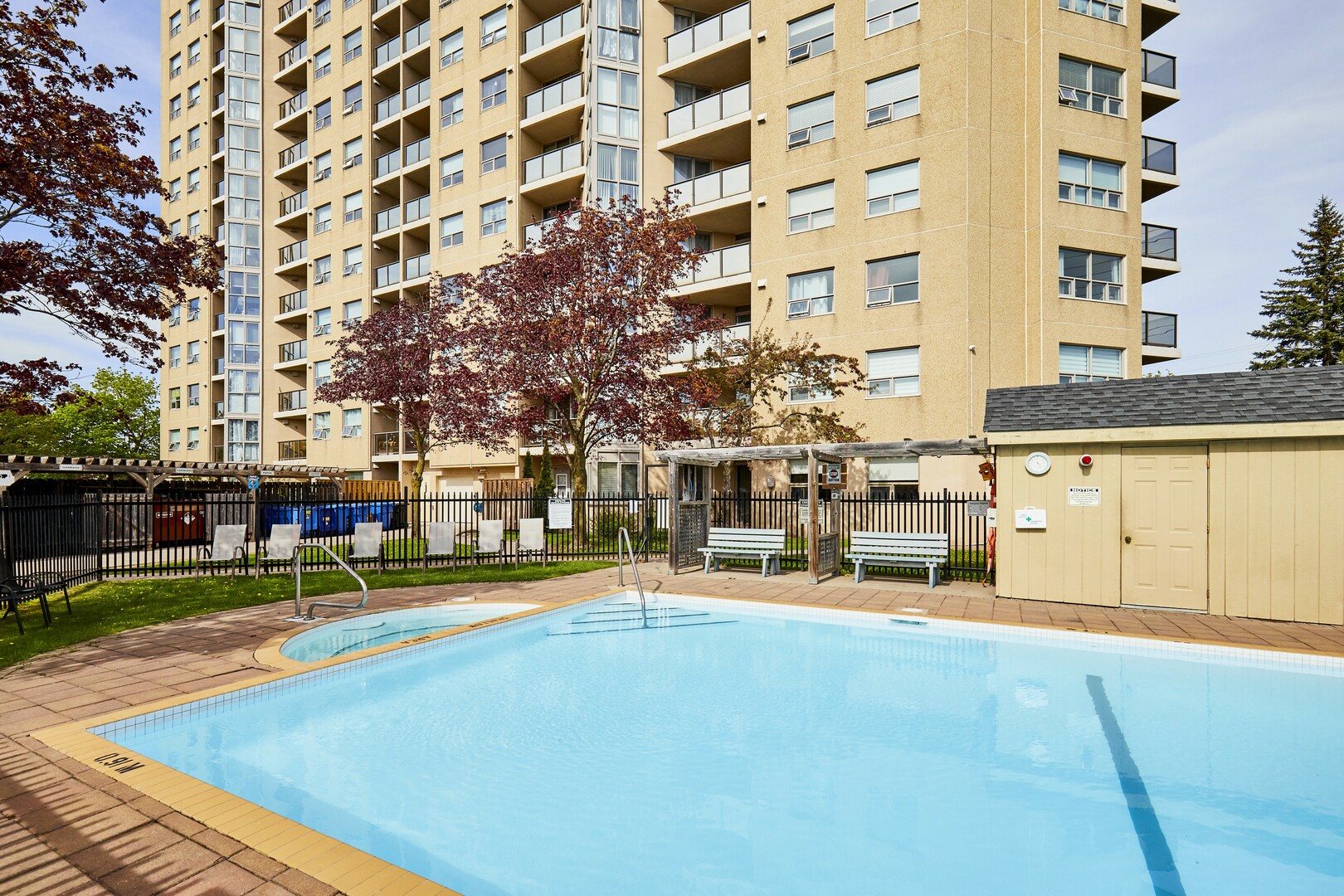 YOUR SEARCH IS OVER / Perfect Location - WALK TO SHOPPING, BANKING, MEDICAL RESTAURANTS, TRANSIT & MORE / Beautiful, Updated 2-BEDROOM , 2-BATH, 2 PARKING, & LOCKER condo, With 954 sqft / VERY REASONABLE MAINTENANCE FEES / This unit offers a desirable Split Bedroom Layout, stylishly appointed with Modern Colours and durable VINYL FLOORING THROUGHOUT. Walkout from the living room to a Private Patio overlooking Mature Trees and a Privacy Hedge with a Bright Southeast Exposure. The Spacious White Kitchen is has plenty of Counter & Cupboard Space along with a convenient pass-through to the Dining Area. The PRIMARY Bedroom comfortably fits a KING SIZE BED and features a Walk-In Closet and 3pc ENSUITE / Great Second Bedroom or Office / Enjoy the comfort of NEWER WINDOWS, NEW PATIO DOOR, UPDATED HEATING UNIT, / BOTH BATHROOMS have been UPDATED and the ENSUITE LAUNDRY adds everyday convenience. This Absolutely MOVE IN READY condo combines functionality, Comfort and Privacy in a WELL MAINTAINED Building Amenities include an OUTDOOR POOL, PATIO, GYM & SAUNA. FANTASTIC LOCATION Close to Major Shopping, Community Center, 401, TRANSIT & GO TRAIN **** Taxes & Sqft are approximate based on similar units and not yet assessed *** No Pets and No Smoking.