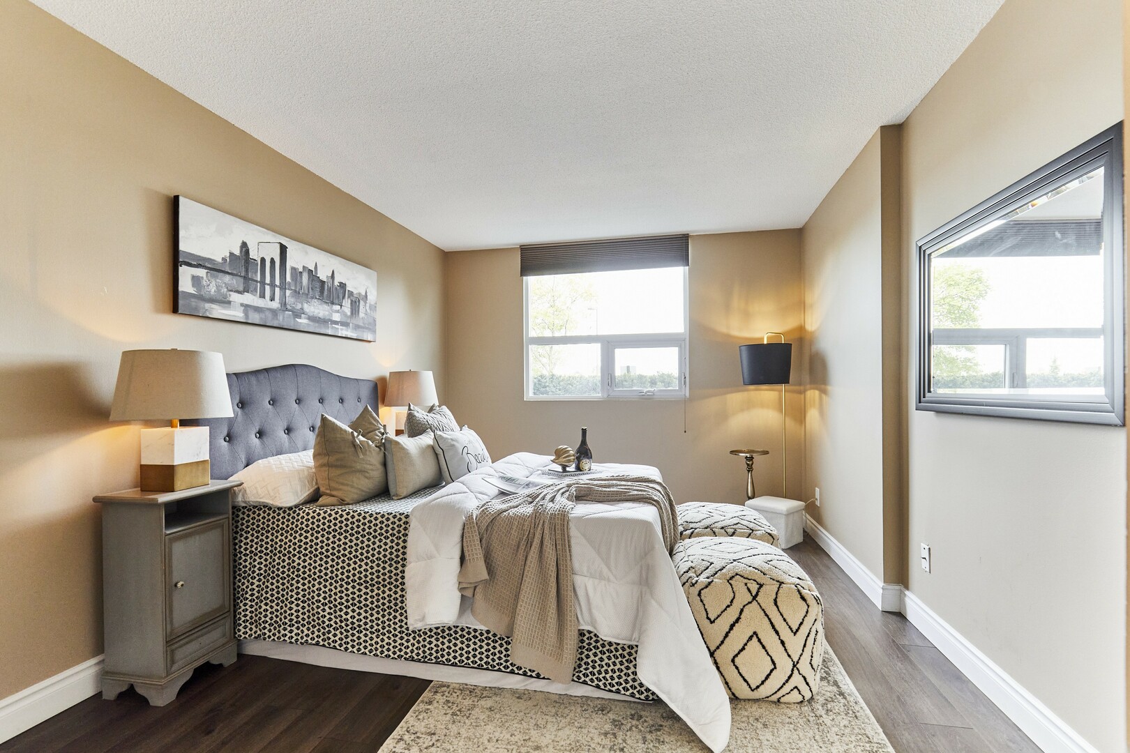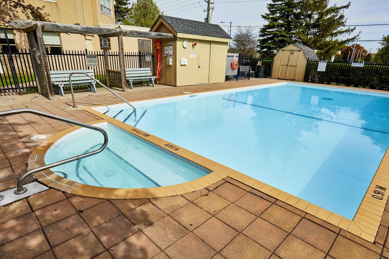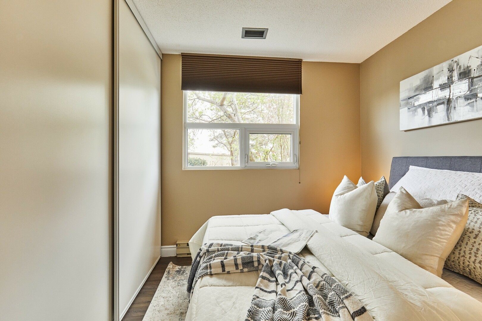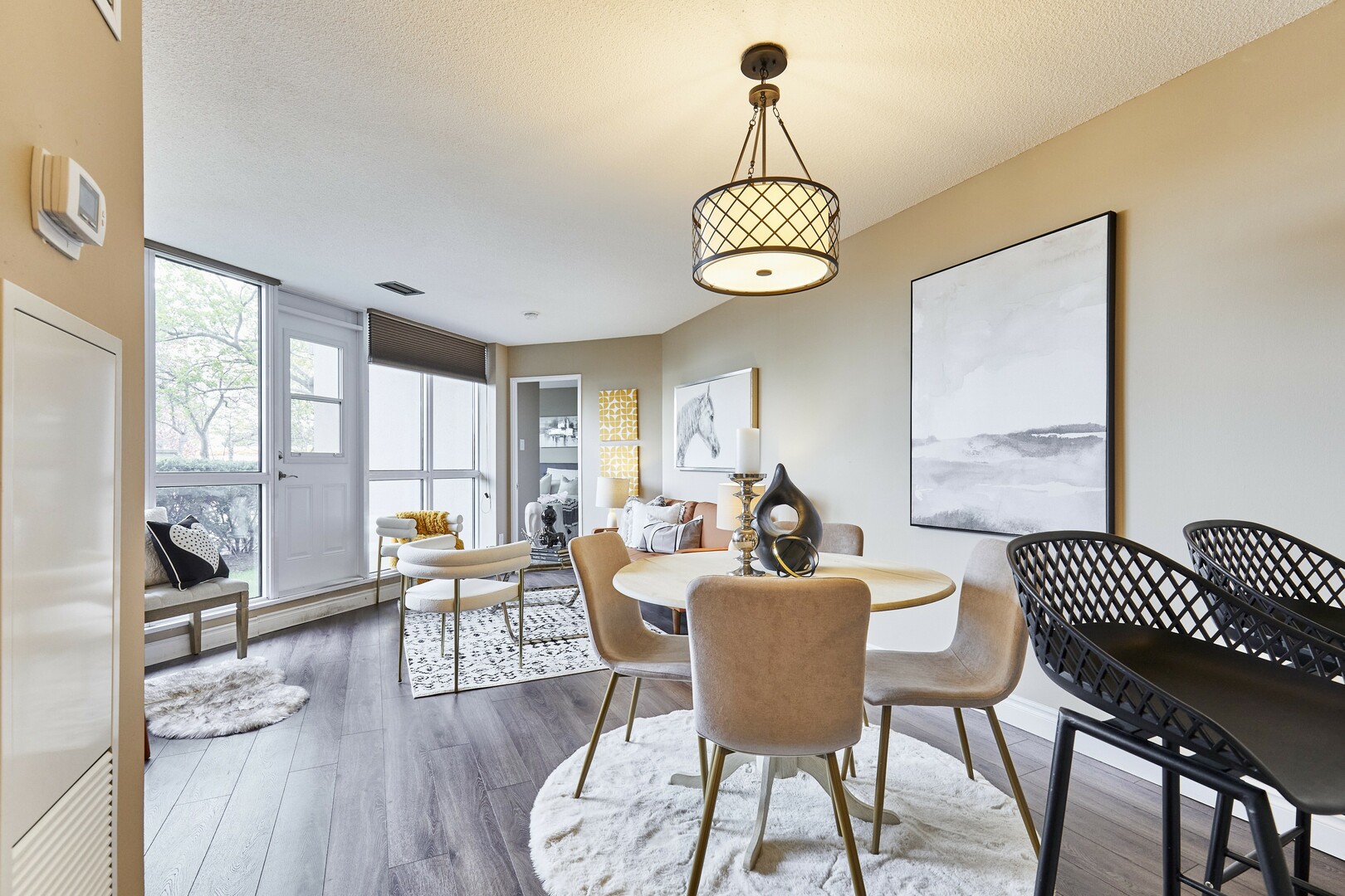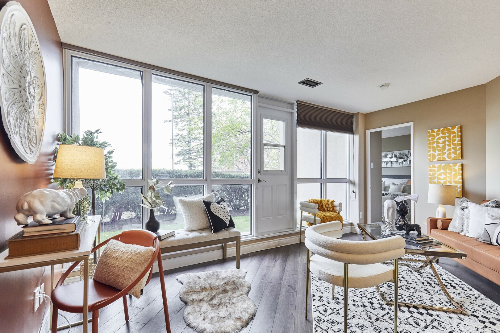 YOUR SEARCH IS OVER / Perfect Location - WALK TO SHOPPING, BANKING, MEDICAL RESTAURANTS, TRANSIT & MORE / Beautiful, Updated 2-BEDROOM , 2-BATH, 2 PARKING, & LOCKER condo, With 954 sqft / VERY REASONABLE MAINTENANCE FEES / This unit offers a desirable Split Bedroom Layout, stylishly appointed with Modern Colours and durable VINYL FLOORING THROUGHOUT. Walkout from the living room to a Private Patio overlooking Mature Trees and a Privacy Hedge with a Bright Southeast Exposure. The Spacious White Kitchen is has plenty of Counter & Cupboard Space along with a convenient pass-through to the Dining Area. The PRIMARY Bedroom comfortably fits a KING SIZE BED and features a Walk-In Closet and 3pc ENSUITE / Great Second Bedroom or Office / Enjoy the comfort of NEWER WINDOWS, NEW PATIO DOOR, UPDATED HEATING UNIT, / BOTH BATHROOMS have been UPDATED and the ENSUITE LAUNDRY adds everyday convenience. This Absolutely MOVE IN READY condo combines functionality, Comfort and Privacy in a WELL MAINTAINED Building Amenities include an OUTDOOR POOL, PATIO, GYM & SAUNA. FANTASTIC LOCATION Close to Major Shopping, Community Center, 401, TRANSIT & GO TRAIN **** Taxes & Sqft are approximate based on similar units and not yet assessed *** No Pets and No Smoking.