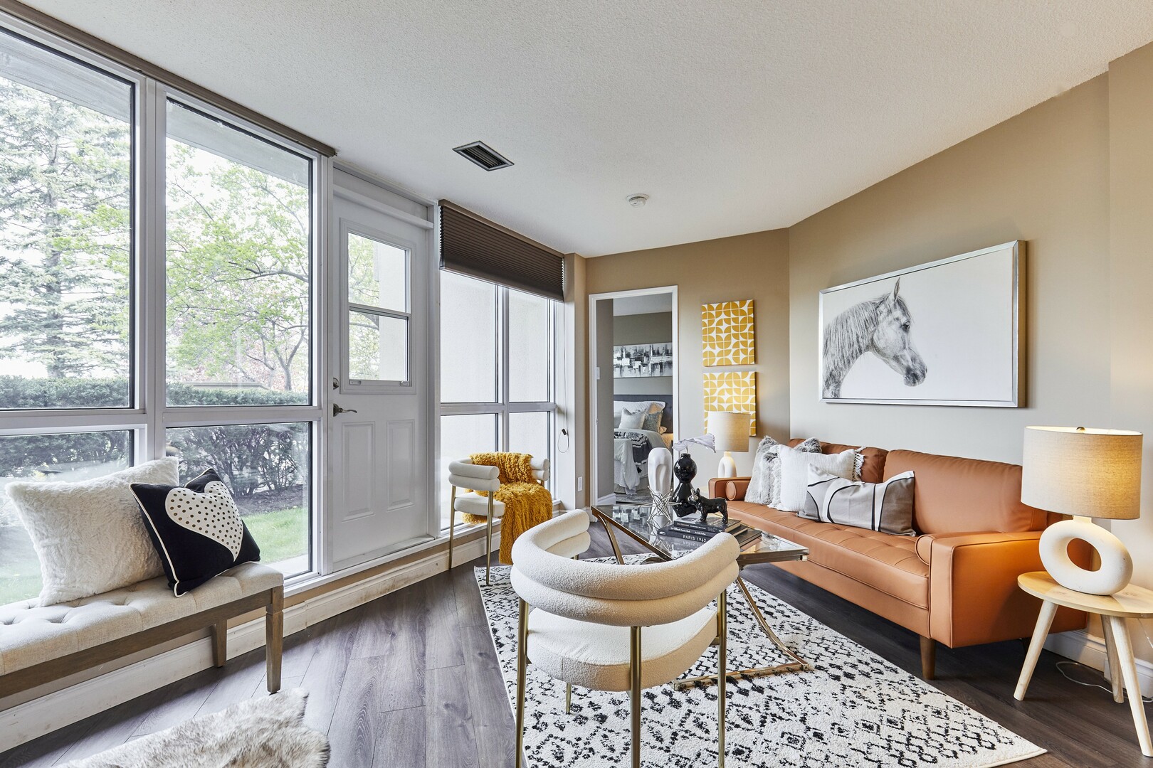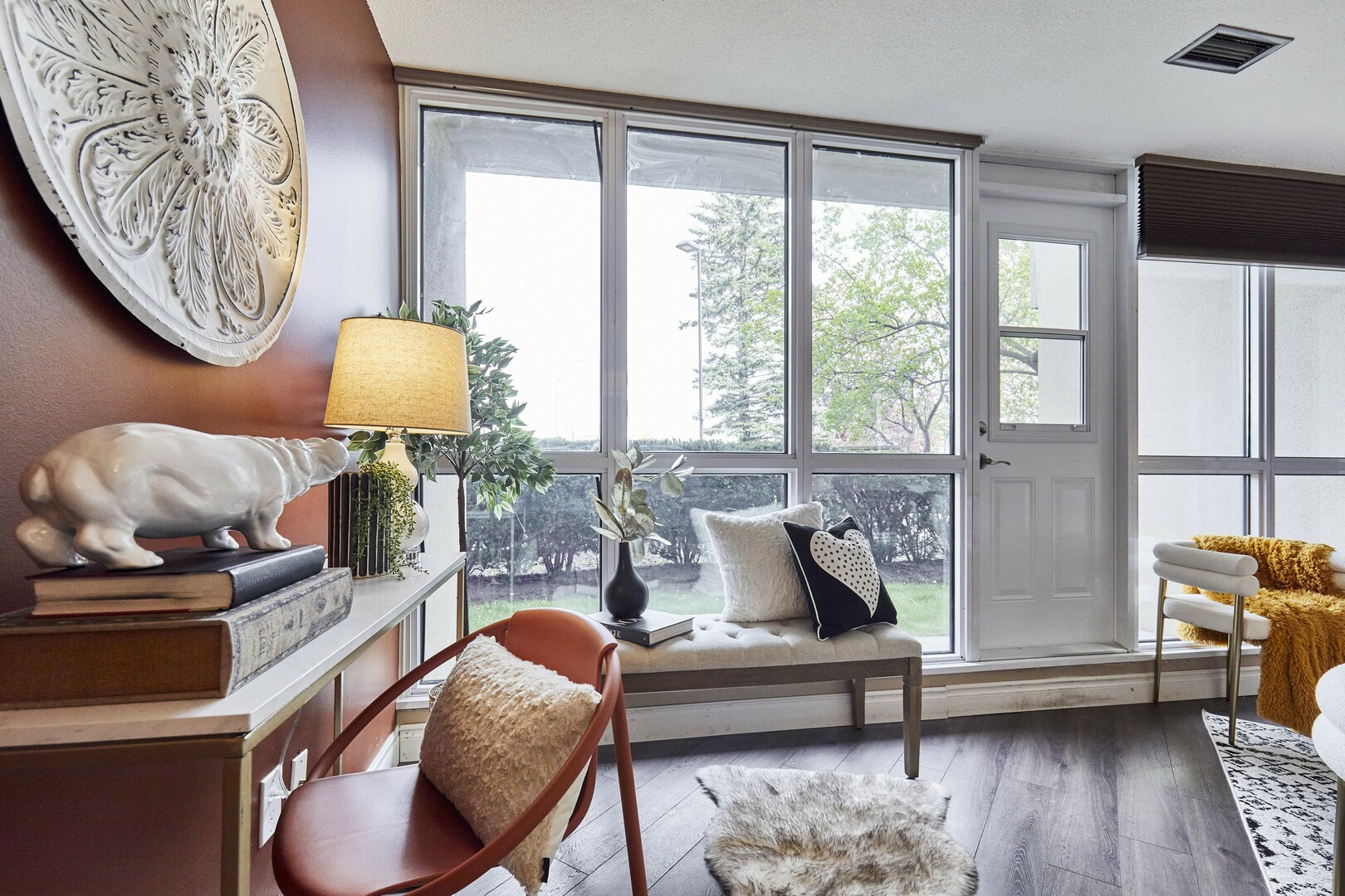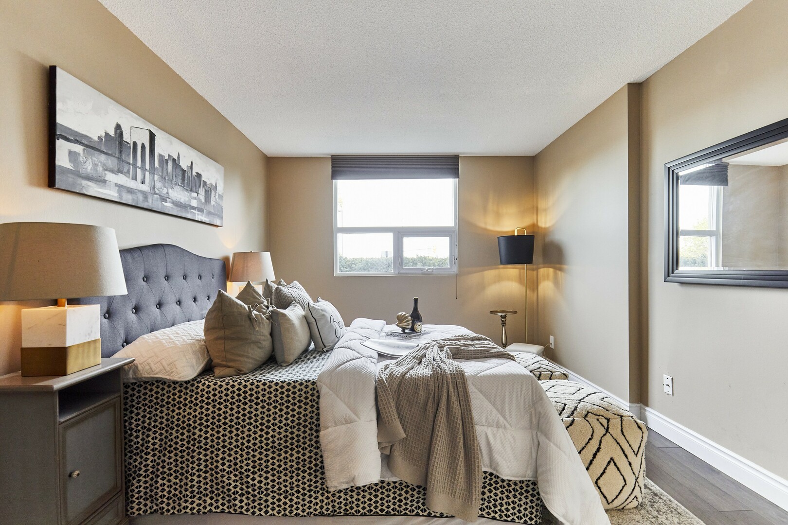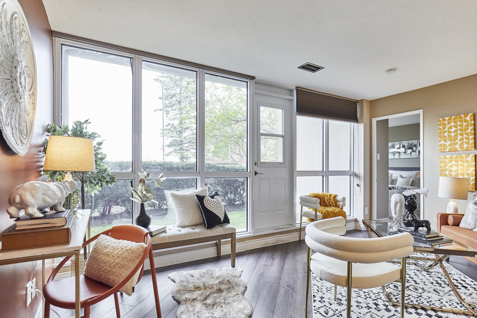 YOUR SEARCH IS OVER / Perfect Location - WALK TO SHOPPING, BANKING, MEDICAL RESTAURANTS, TRANSIT & MORE / Beautiful, Updated 2-BEDROOM , 2-BATH, 2 PARKING, & LOCKER condo, With 954 sqft / VERY REASONABLE MAINTENANCE FEES / This unit offers a desirable Split Bedroom Layout, stylishly appointed with Modern Colours and durable VINYL FLOORING THROUGHOUT. Walkout from the living room to a Private Patio overlooking Mature Trees and a Privacy Hedge with a Bright Southeast Exposure. The Spacious White Kitchen is has plenty of Counter & Cupboard Space along with a convenient pass-through to the Dining Area. The PRIMARY Bedroom comfortably fits a KING SIZE BED and features a Walk-In Closet and 3pc ENSUITE / Great Second Bedroom or Office / Enjoy the comfort of NEWER WINDOWS, NEW PATIO DOOR, UPDATED HEATING UNIT, / BOTH BATHROOMS have been UPDATED and the ENSUITE LAUNDRY adds everyday convenience. This Absolutely MOVE IN READY condo combines functionality, Comfort and Privacy in a WELL MAINTAINED Building Amenities include an OUTDOOR POOL, PATIO, GYM & SAUNA. FANTASTIC LOCATION Close to Major Shopping, Community Center, 401, TRANSIT & GO TRAIN **** Taxes & Sqft are approximate based on similar units and not yet assessed *** No Pets and No Smoking.