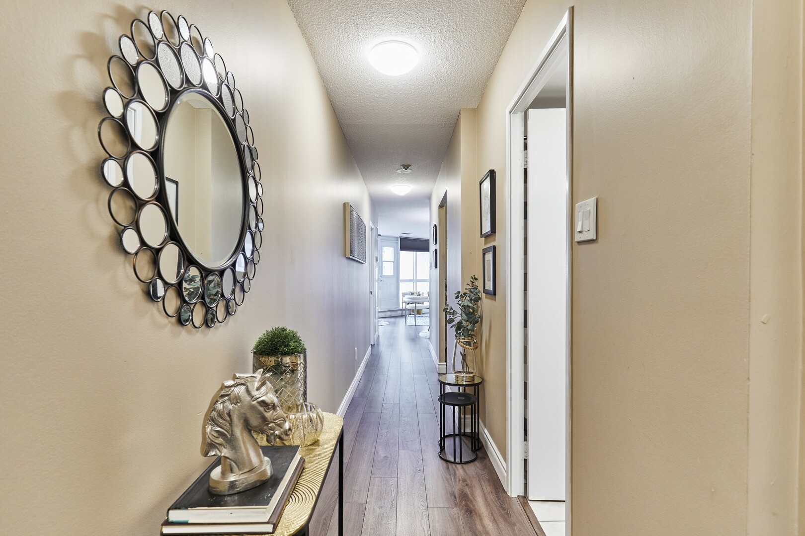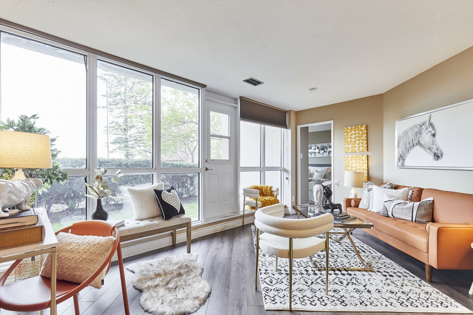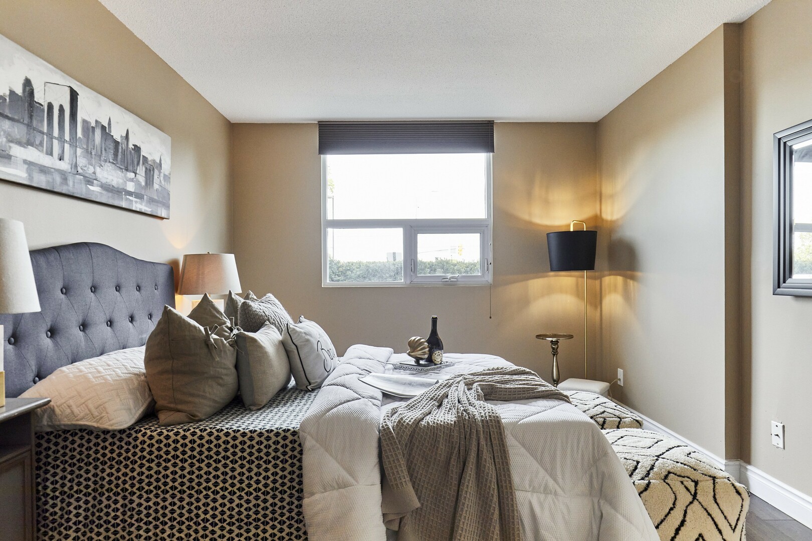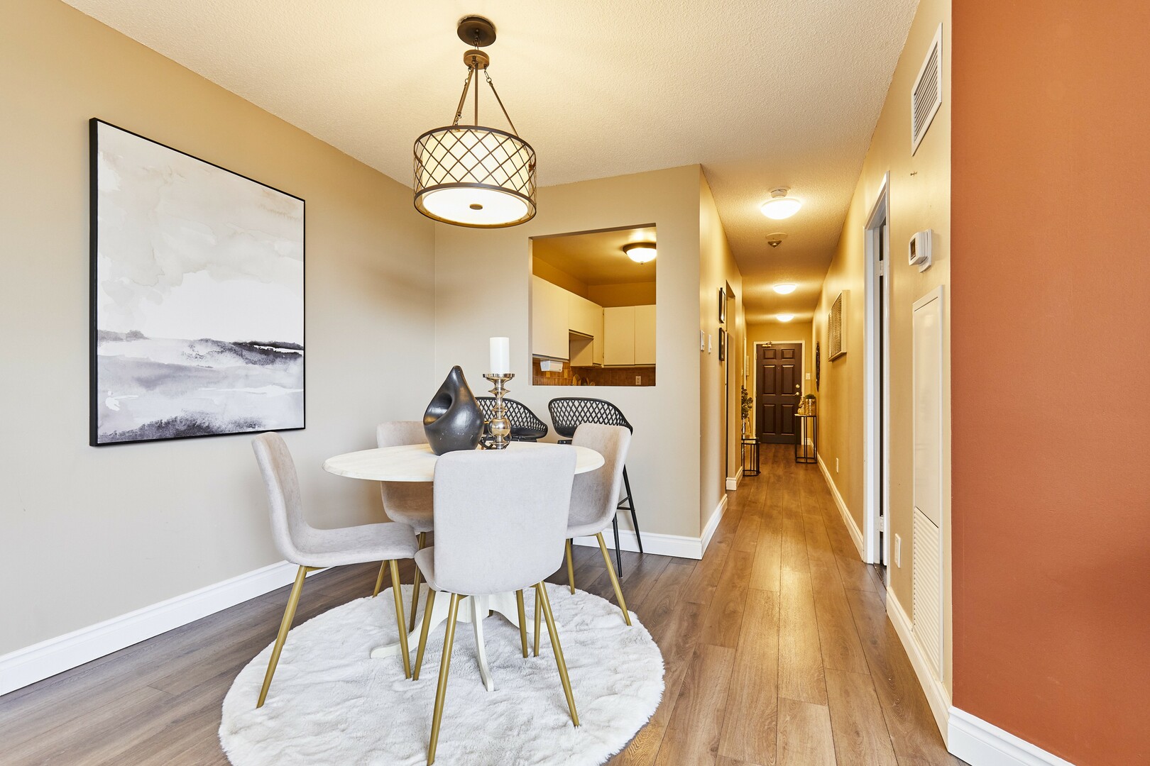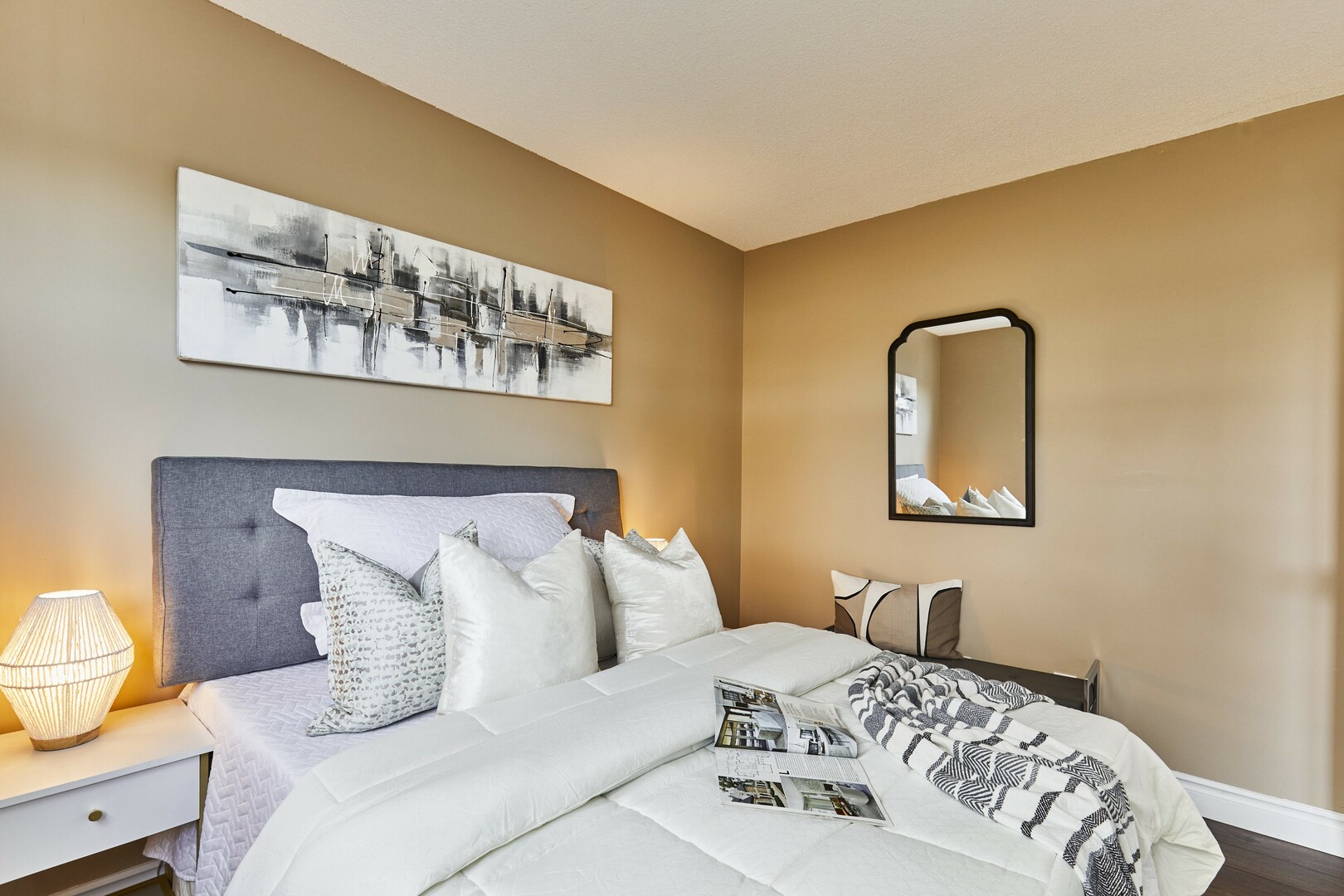 YOUR SEARCH IS OVER / Perfect Location - WALK TO SHOPPING, BANKING, MEDICAL RESTAURANTS, TRANSIT & MORE / Beautiful, Updated 2-BEDROOM , 2-BATH, 2 PARKING, & LOCKER condo, With 954 sqft / VERY REASONABLE MAINTENANCE FEES / This unit offers a desirable Split Bedroom Layout, stylishly appointed with Modern Colours and durable VINYL FLOORING THROUGHOUT. Walkout from the living room to a Private Patio overlooking Mature Trees and a Privacy Hedge with a Bright Southeast Exposure. The Spacious White Kitchen is has plenty of Counter & Cupboard Space along with a convenient pass-through to the Dining Area. The PRIMARY Bedroom comfortably fits a KING SIZE BED and features a Walk-In Closet and 3pc ENSUITE / Great Second Bedroom or Office / Enjoy the comfort of NEWER WINDOWS, NEW PATIO DOOR, UPDATED HEATING UNIT, / BOTH BATHROOMS have been UPDATED and the ENSUITE LAUNDRY adds everyday convenience. This Absolutely MOVE IN READY condo combines functionality, Comfort and Privacy in a WELL MAINTAINED Building Amenities include an OUTDOOR POOL, PATIO, GYM & SAUNA. FANTASTIC LOCATION Close to Major Shopping, Community Center, 401, TRANSIT & GO TRAIN **** Taxes & Sqft are approximate based on similar units and not yet assessed *** No Pets and No Smoking.