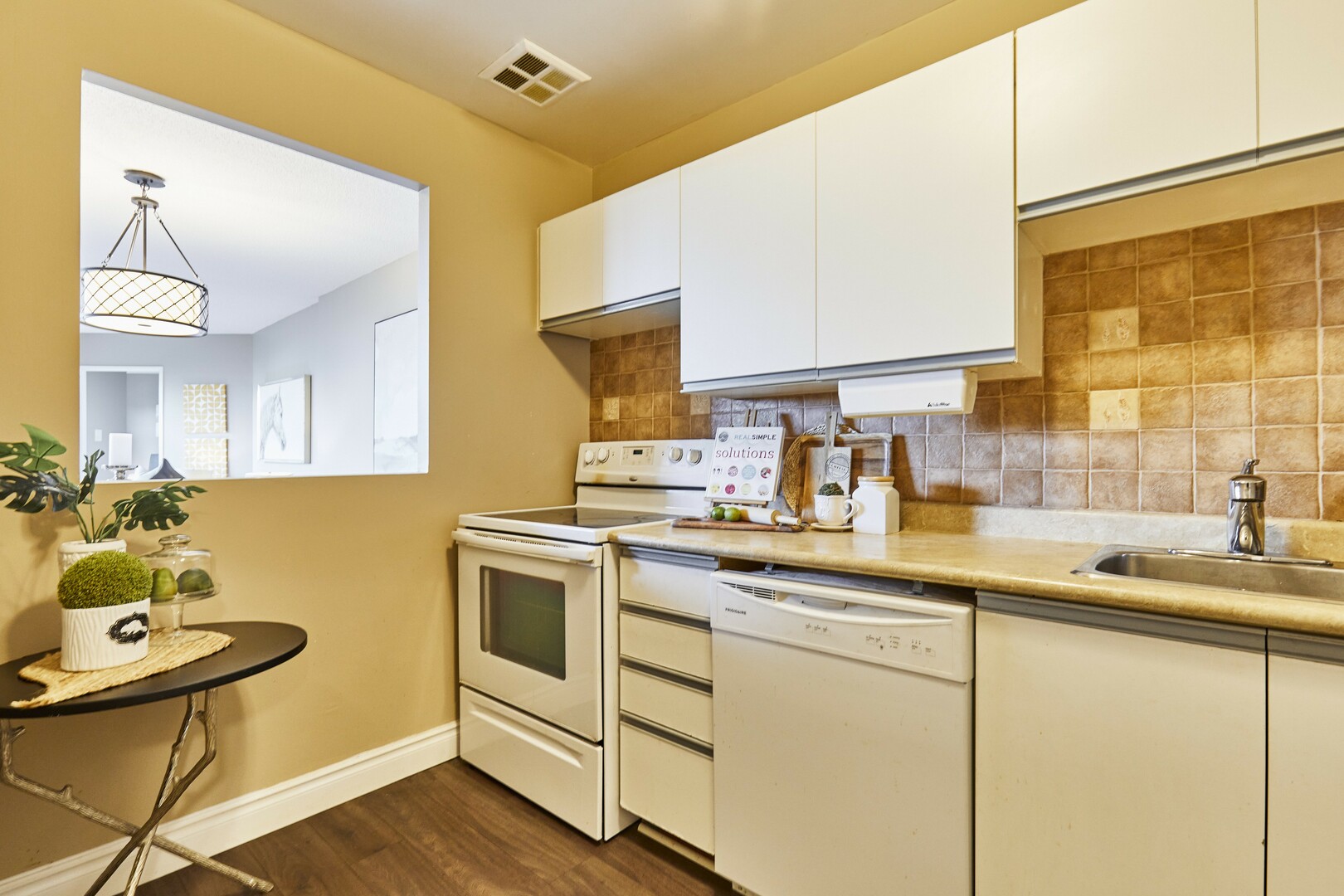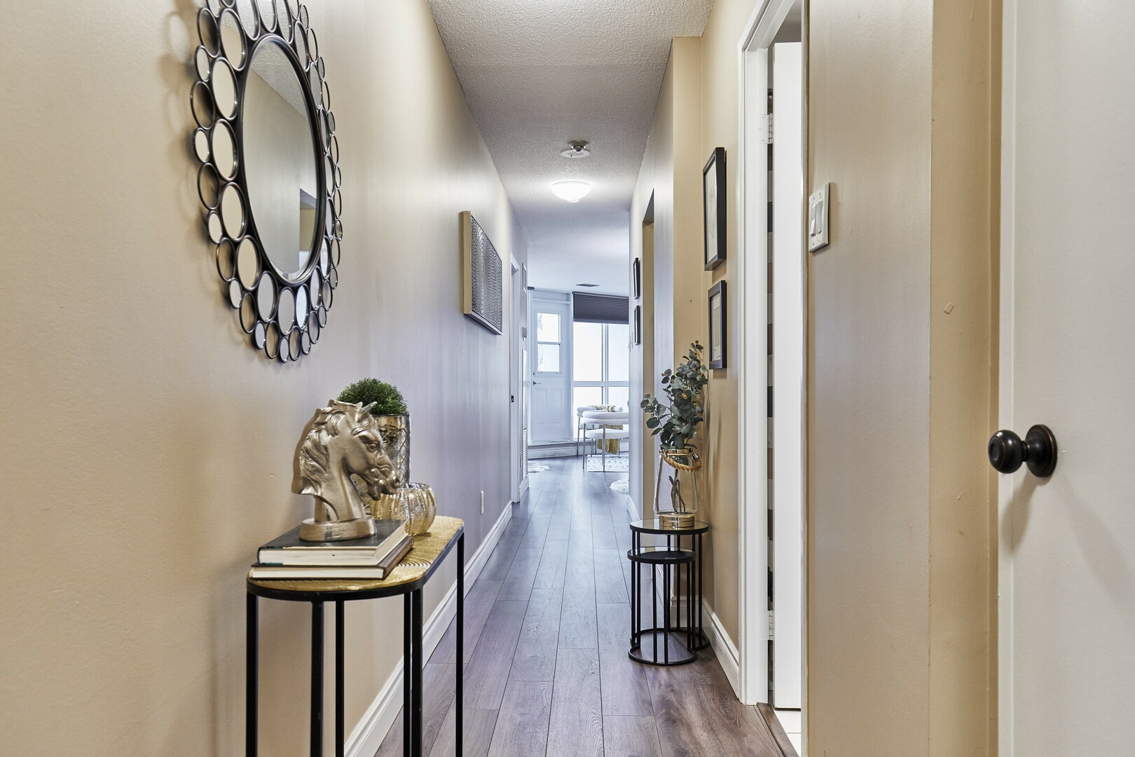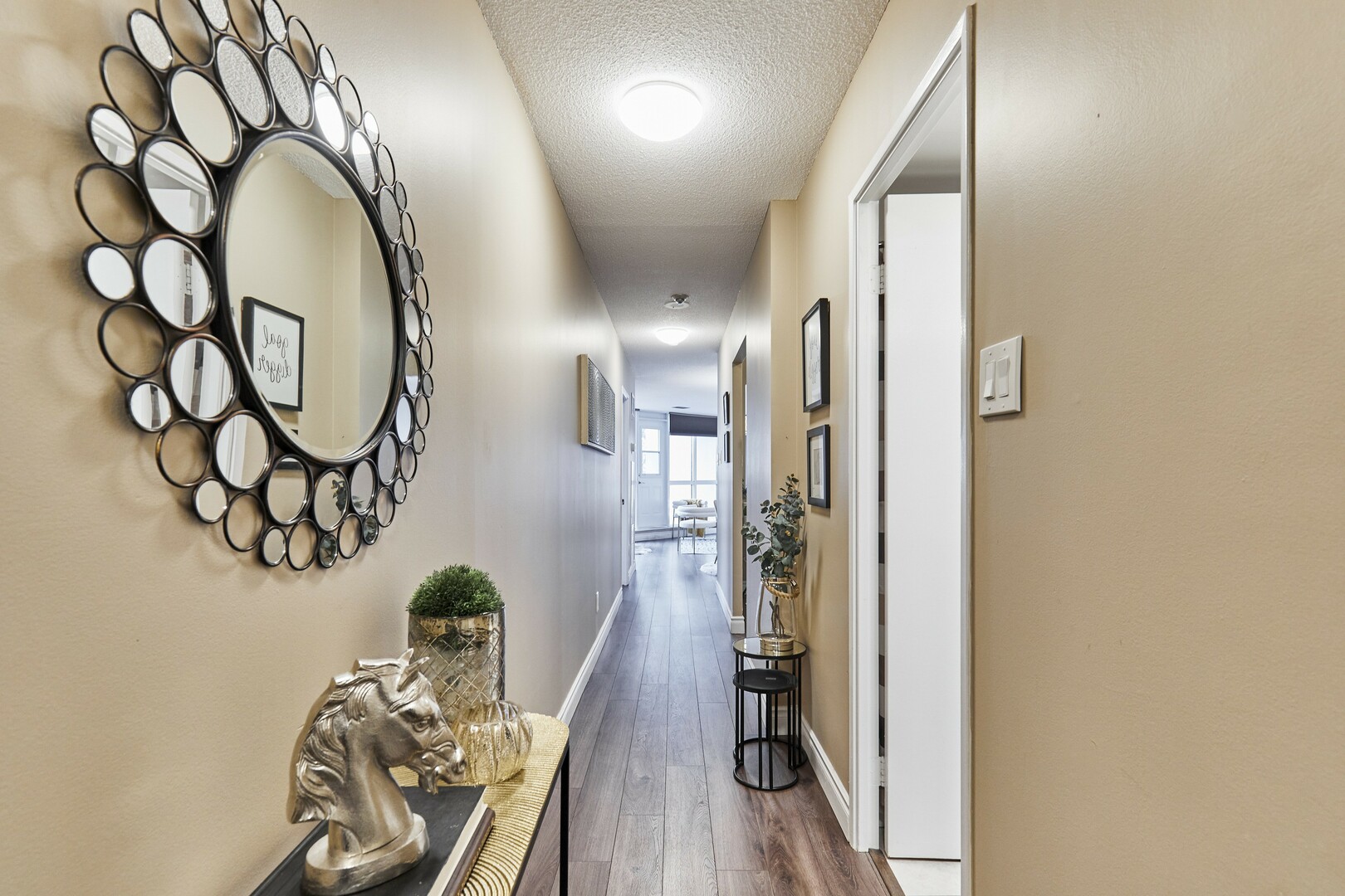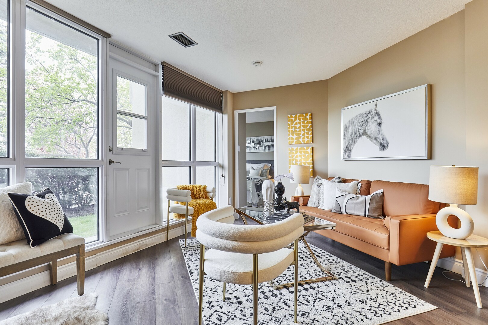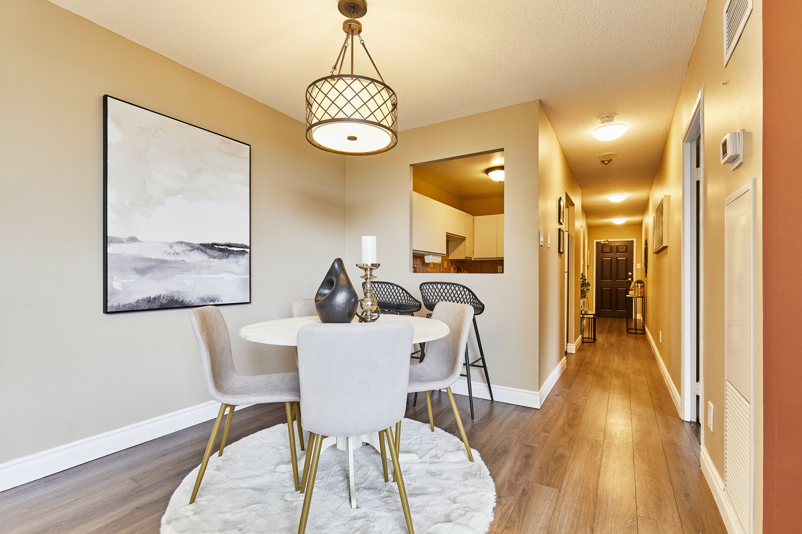 YOUR SEARCH IS OVER / Perfect Location - WALK TO SHOPPING, BANKING, MEDICAL RESTAURANTS, TRANSIT & MORE / Beautiful, Updated 2-BEDROOM , 2-BATH, 2 PARKING, & LOCKER condo, With 954 sqft / VERY REASONABLE MAINTENANCE FEES / This unit offers a desirable Split Bedroom Layout, stylishly appointed with Modern Colours and durable VINYL FLOORING THROUGHOUT. Walkout from the living room to a Private Patio overlooking Mature Trees and a Privacy Hedge with a Bright Southeast Exposure. The Spacious White Kitchen is has plenty of Counter & Cupboard Space along with a convenient pass-through to the Dining Area. The PRIMARY Bedroom comfortably fits a KING SIZE BED and features a Walk-In Closet and 3pc ENSUITE / Great Second Bedroom or Office / Enjoy the comfort of NEWER WINDOWS, NEW PATIO DOOR, UPDATED HEATING UNIT, / BOTH BATHROOMS have been UPDATED and the ENSUITE LAUNDRY adds everyday convenience. This Absolutely MOVE IN READY condo combines functionality, Comfort and Privacy in a WELL MAINTAINED Building Amenities include an OUTDOOR POOL, PATIO, GYM & SAUNA. FANTASTIC LOCATION Close to Major Shopping, Community Center, 401, TRANSIT & GO TRAIN **** Taxes & Sqft are approximate based on similar units and not yet assessed *** No Pets and No Smoking.