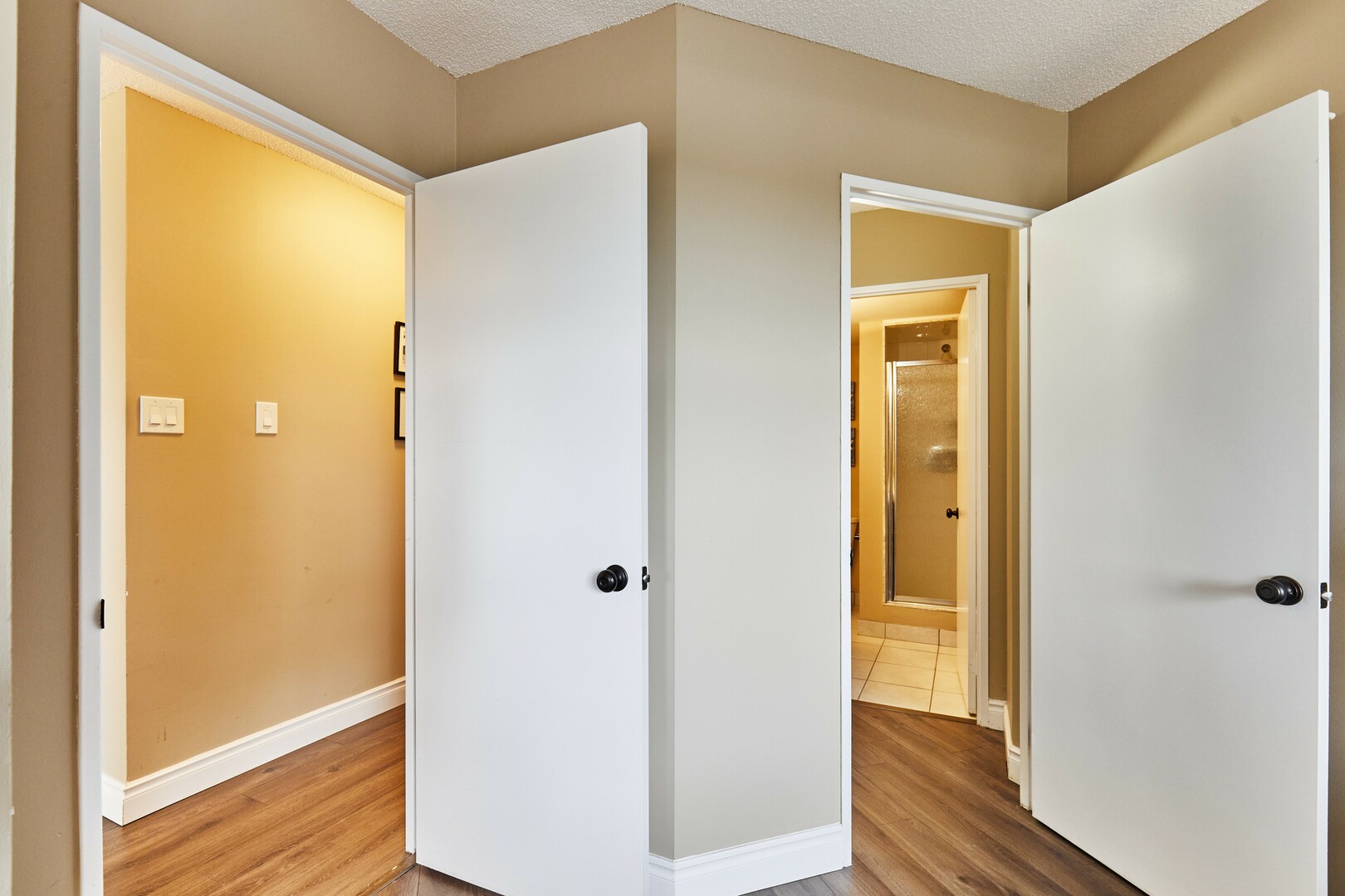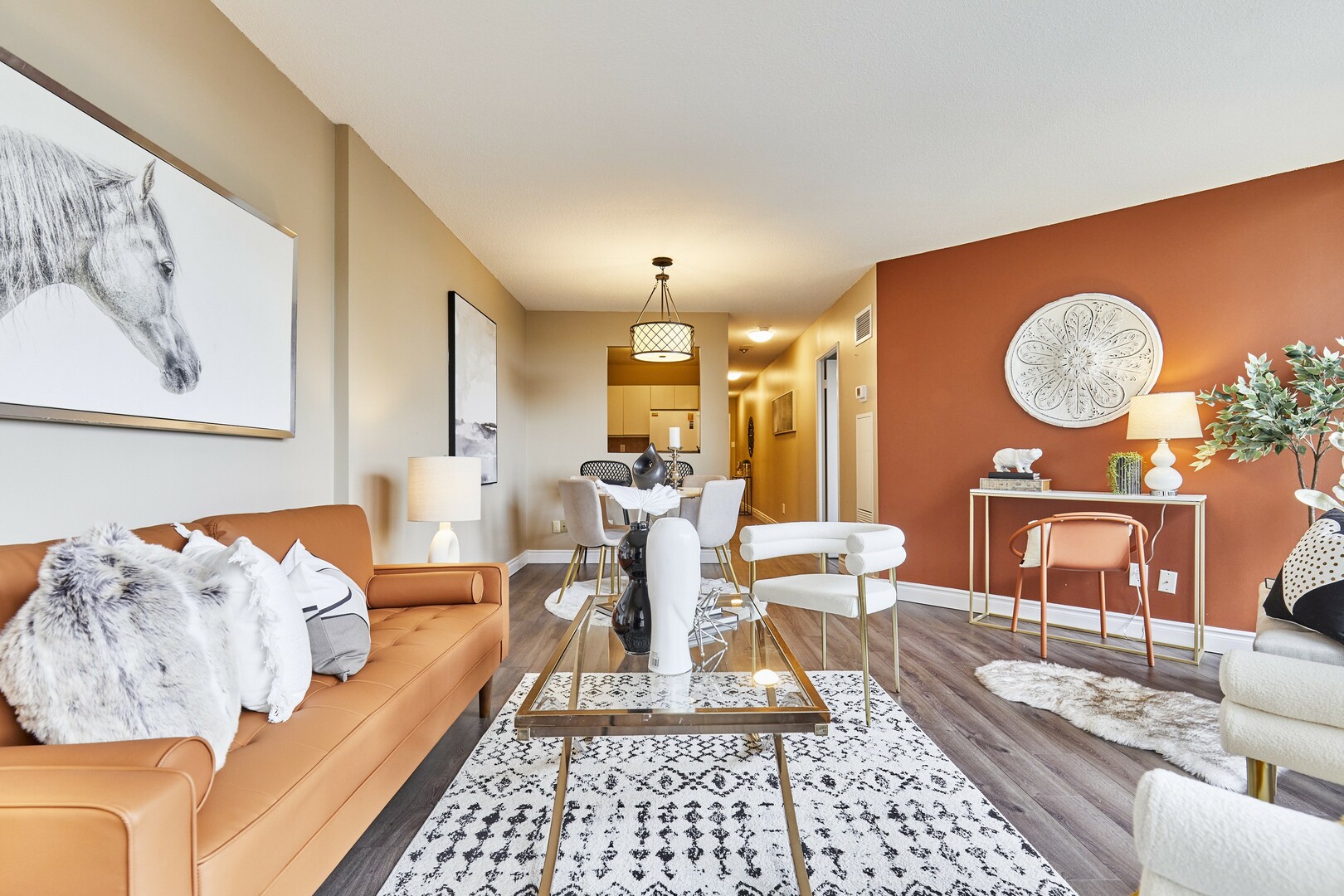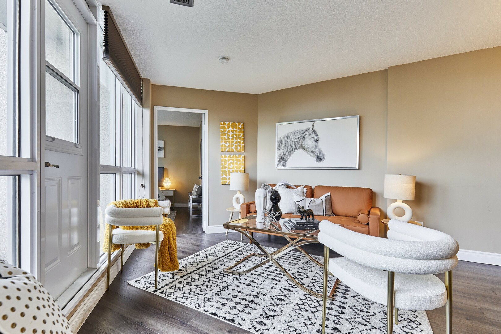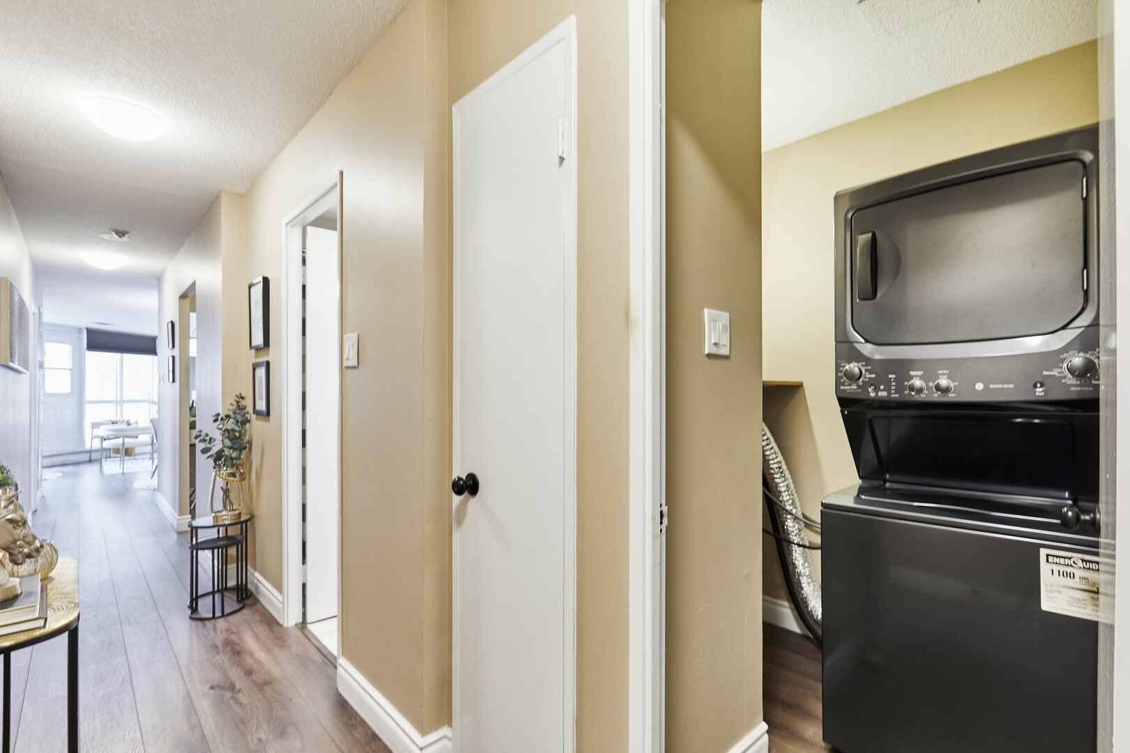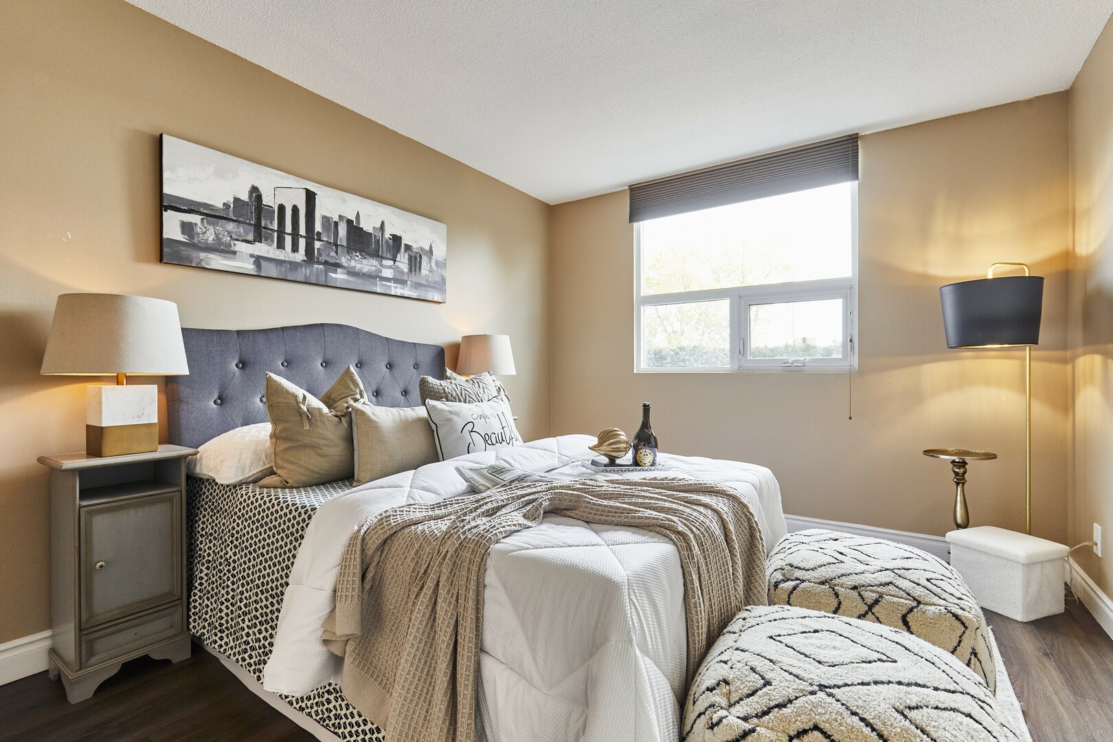 YOUR SEARCH IS OVER / Perfect Location - WALK TO SHOPPING, BANKING, MEDICAL RESTAURANTS, TRANSIT & MORE / Beautiful, Updated 2-BEDROOM , 2-BATH, 2 PARKING, & LOCKER condo, With 954 sqft / VERY REASONABLE MAINTENANCE FEES / This unit offers a desirable Split Bedroom Layout, stylishly appointed with Modern Colours and durable VINYL FLOORING THROUGHOUT. Walkout from the living room to a Private Patio overlooking Mature Trees and a Privacy Hedge with a Bright Southeast Exposure. The Spacious White Kitchen is has plenty of Counter & Cupboard Space along with a convenient pass-through to the Dining Area. The PRIMARY Bedroom comfortably fits a KING SIZE BED and features a Walk-In Closet and 3pc ENSUITE / Great Second Bedroom or Office / Enjoy the comfort of NEWER WINDOWS, NEW PATIO DOOR, UPDATED HEATING UNIT, / BOTH BATHROOMS have been UPDATED and the ENSUITE LAUNDRY adds everyday convenience. This Absolutely MOVE IN READY condo combines functionality, Comfort and Privacy in a WELL MAINTAINED Building Amenities include an OUTDOOR POOL, PATIO, GYM & SAUNA. FANTASTIC LOCATION Close to Major Shopping, Community Center, 401, TRANSIT & GO TRAIN **** Taxes & Sqft are approximate based on similar units and not yet assessed *** No Pets and No Smoking.