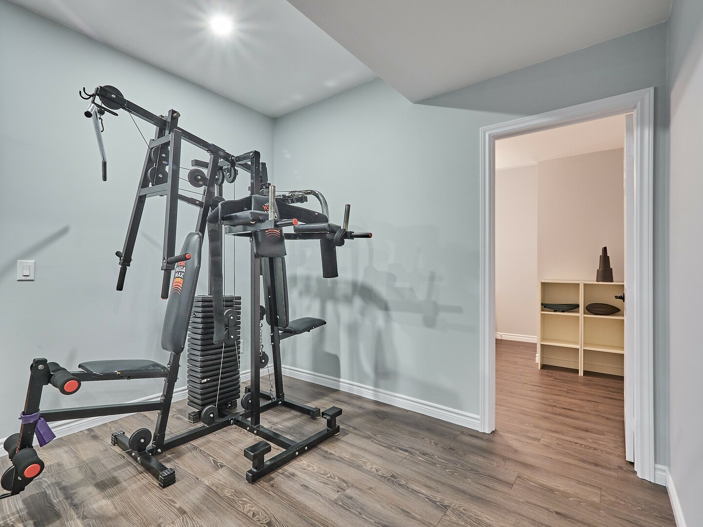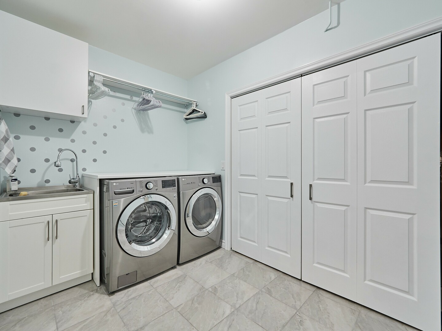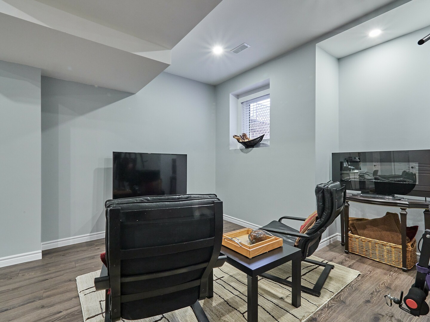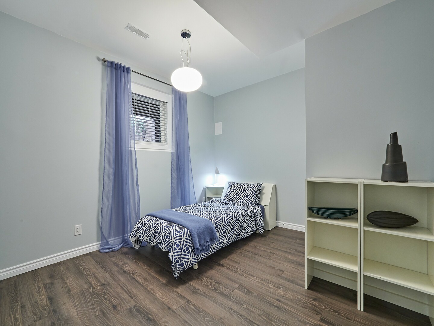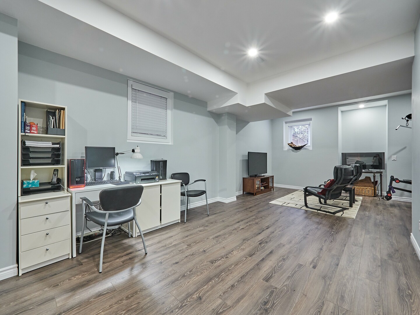 Showcasing high quality German laminate flooring and pot lighting throughout much of its space, great storage, and above grade oversized basement windows - this level also boasts a layout that has potential for an in-law suite. In addition to a generously sized recreation area, there is a very spacious laundry room; a 3-pc washroom; as well as a bedroom.