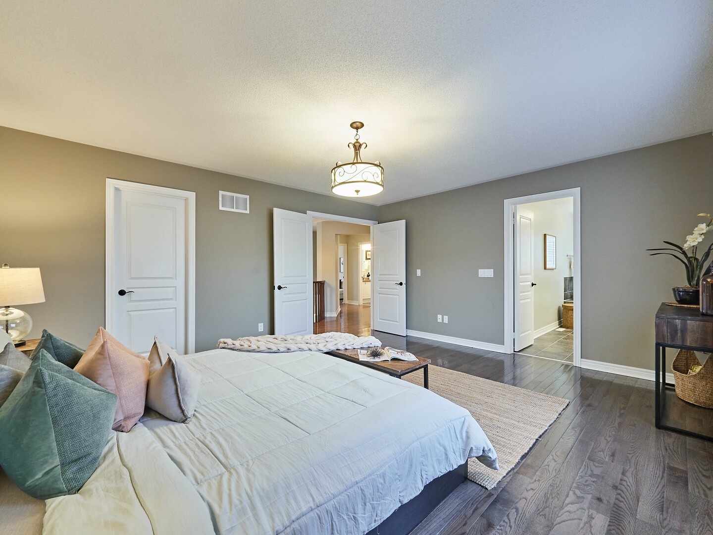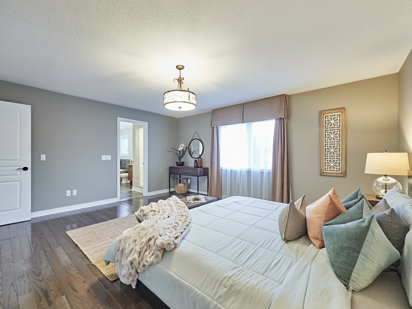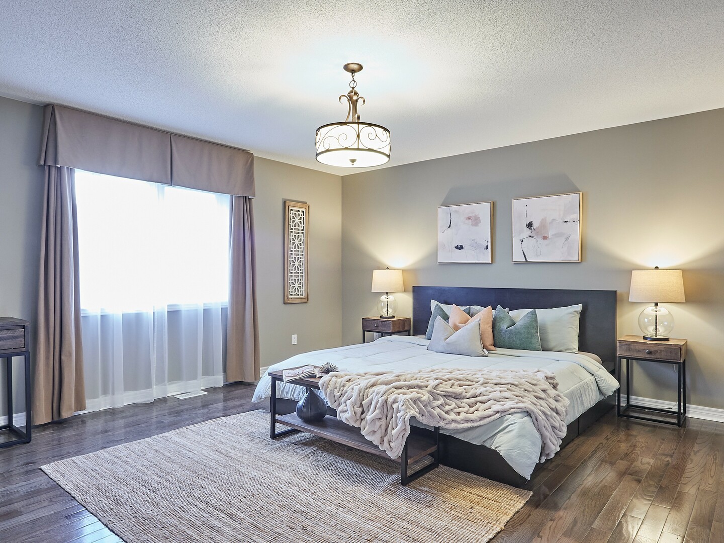 Through a double door entry is the serenity of the master suite - this beautiful personal retreat showcasing ample space for a sitting area, a large window with backyard views, an upgraded light fixture, and a walk-in closet with organizers. Its ensuite washroom has a relaxing aura, as well - and showcases tiled finishes throughout; a walk-in shower area; a soaker tub with two corner windows; and a vanity updated with a quartz counter.