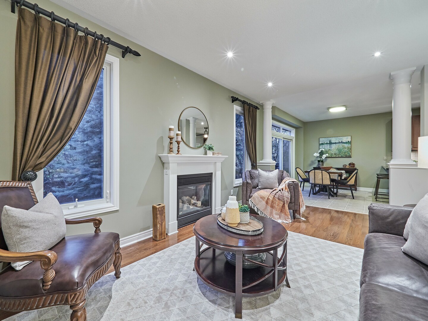 With a spacious open-themed layout, high ceilings, as well as rooms with a soft colour palette - the main level feels fresh and airy, while the backyard greenery visible through the family room windows brings a beautifully relaxing atmosphere to this space, which also features the added warmth of a gas fireplace and the brightness of pot lighting.