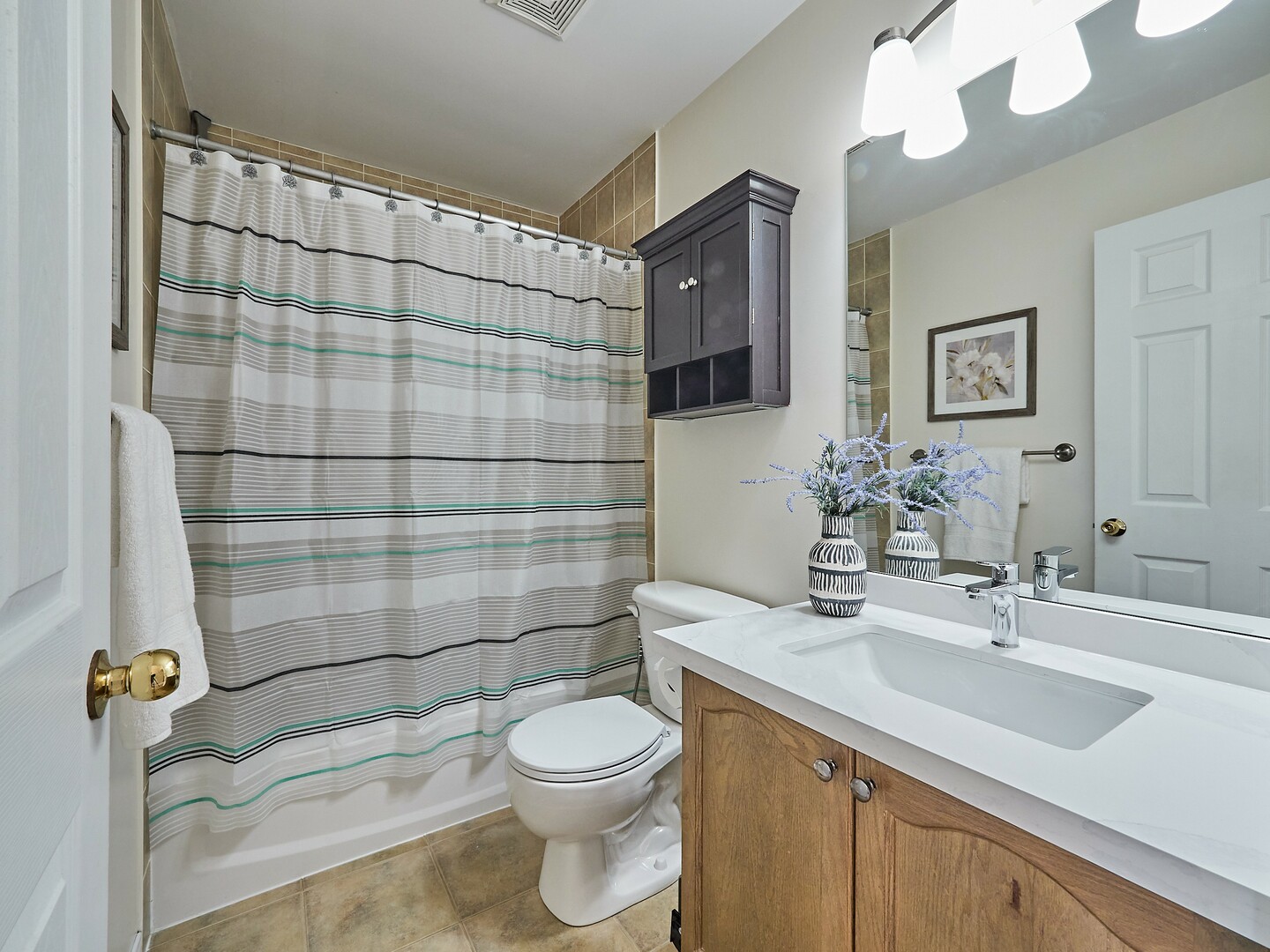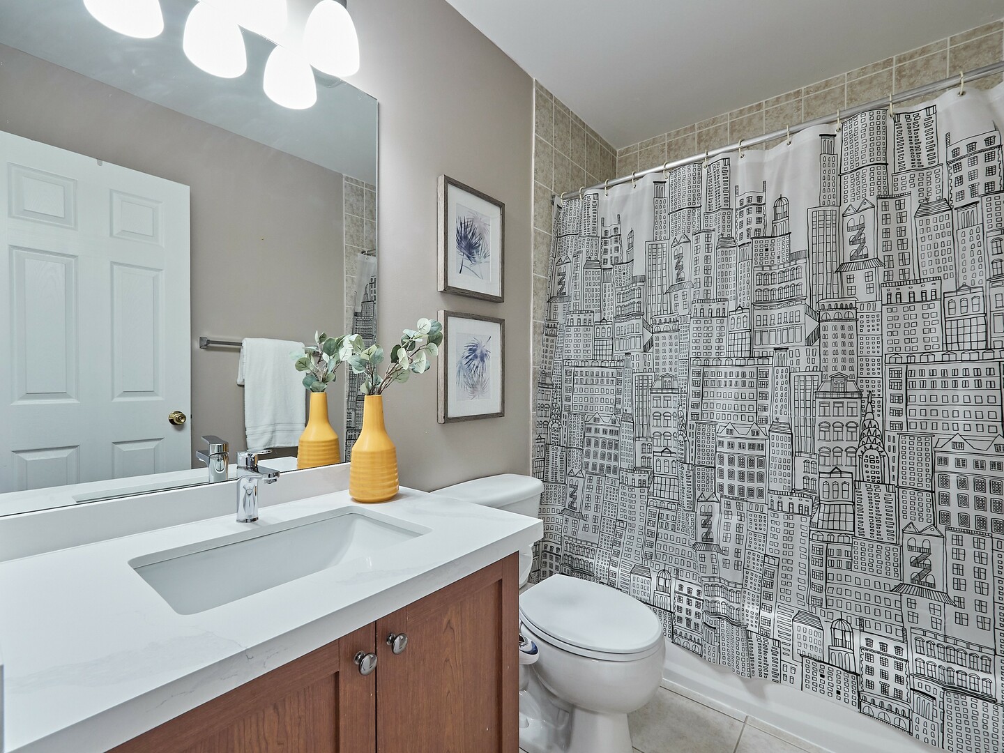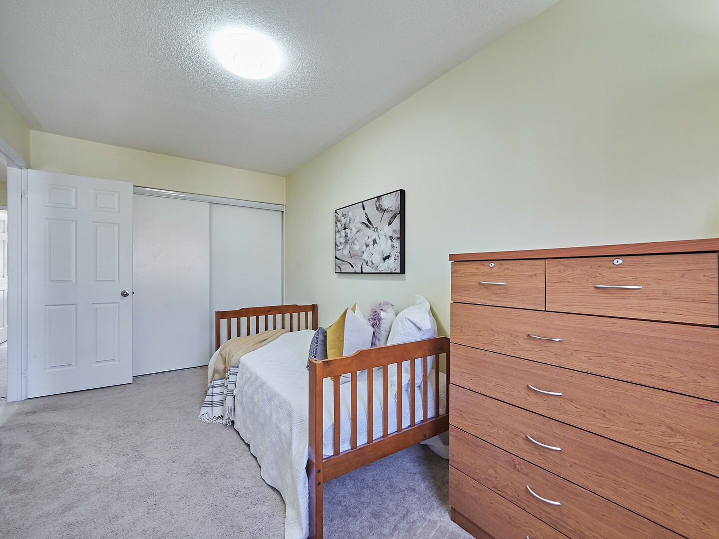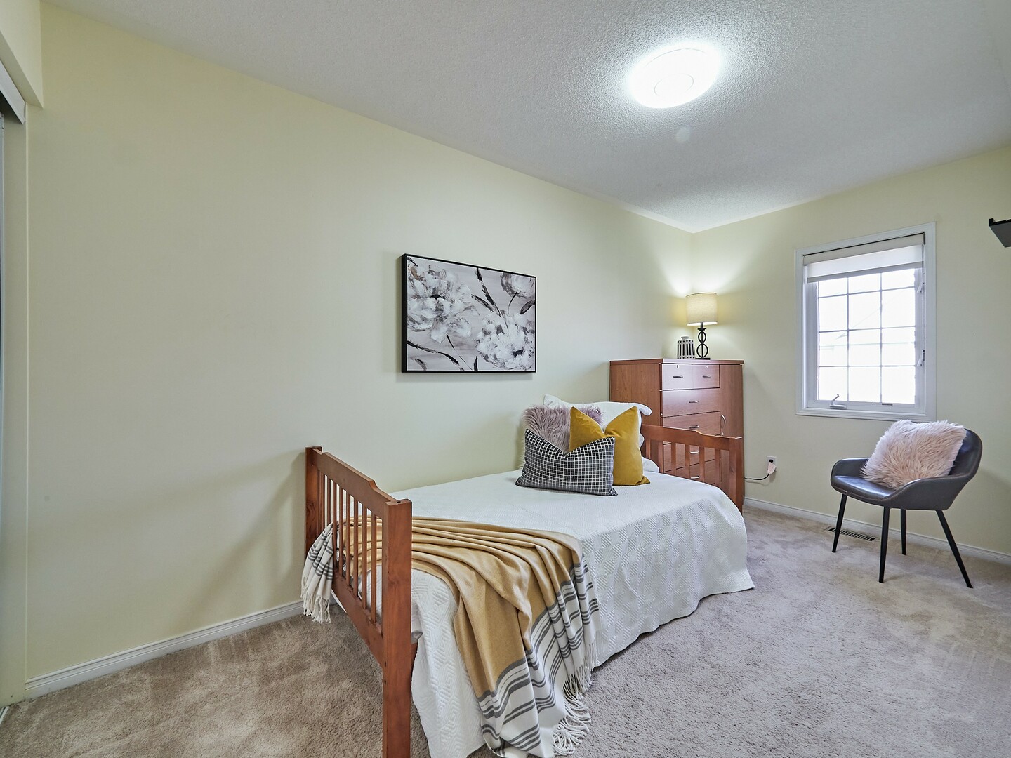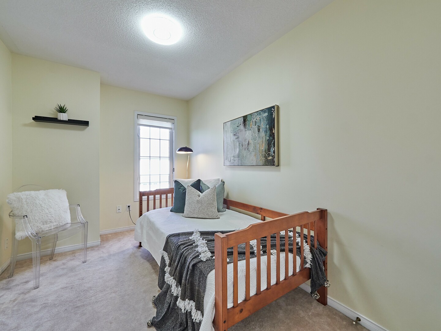 The master bedroom’s ensuite washroom also has ceramic-tiled finishes and a vanity newly updated with a quartz counter - with this bright, yet restful, retreat additionally showcasing wall-to-wall closet storage, space for a sitting area, and windows along its west wall filling the room with abundant natural light.