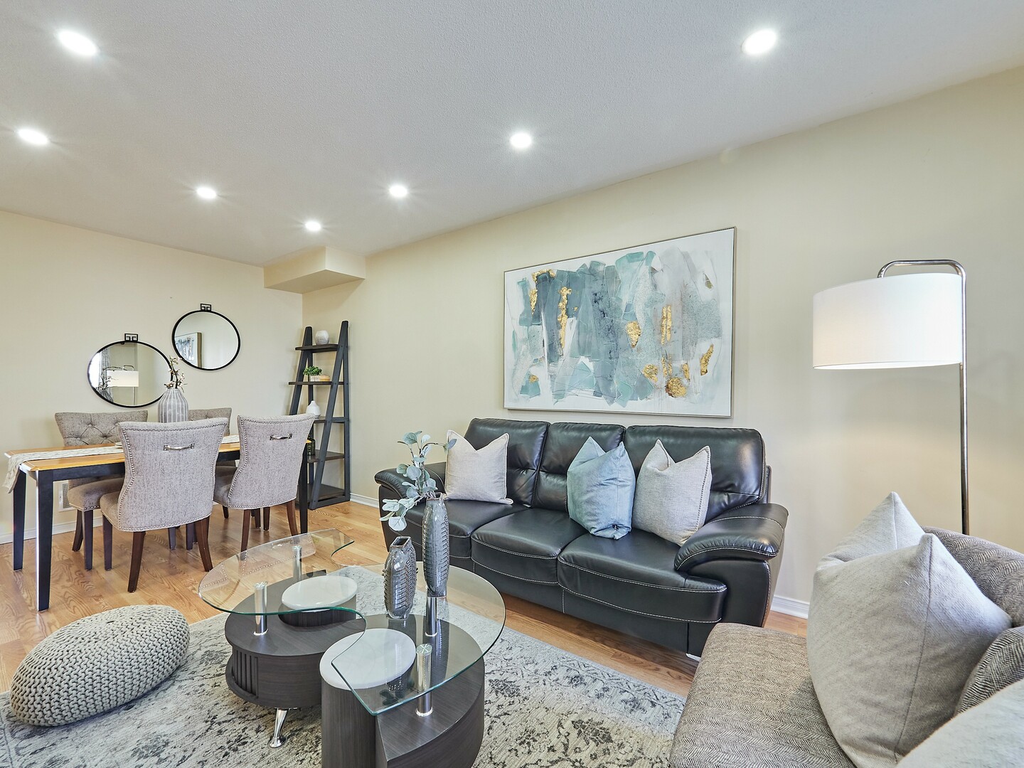 Beautiful 3 Bdrm 3 Bath Townhome Located in a Gated Community * 3 Flrs plus full Bsmt, Most Homes in the Complex are 3 Levels * Freshly Painted * Quartz Counters in Kitchen & Baths * Prim. Bdrm has 4 pc Ensuite * Walk Out in Bsmt to Backyard * Access to Garage from Family room * Close to great schools * Rec Centre * Hwy 401 * Shopping & more * Furn. ('21), A/C ('20), Roof ('18) *