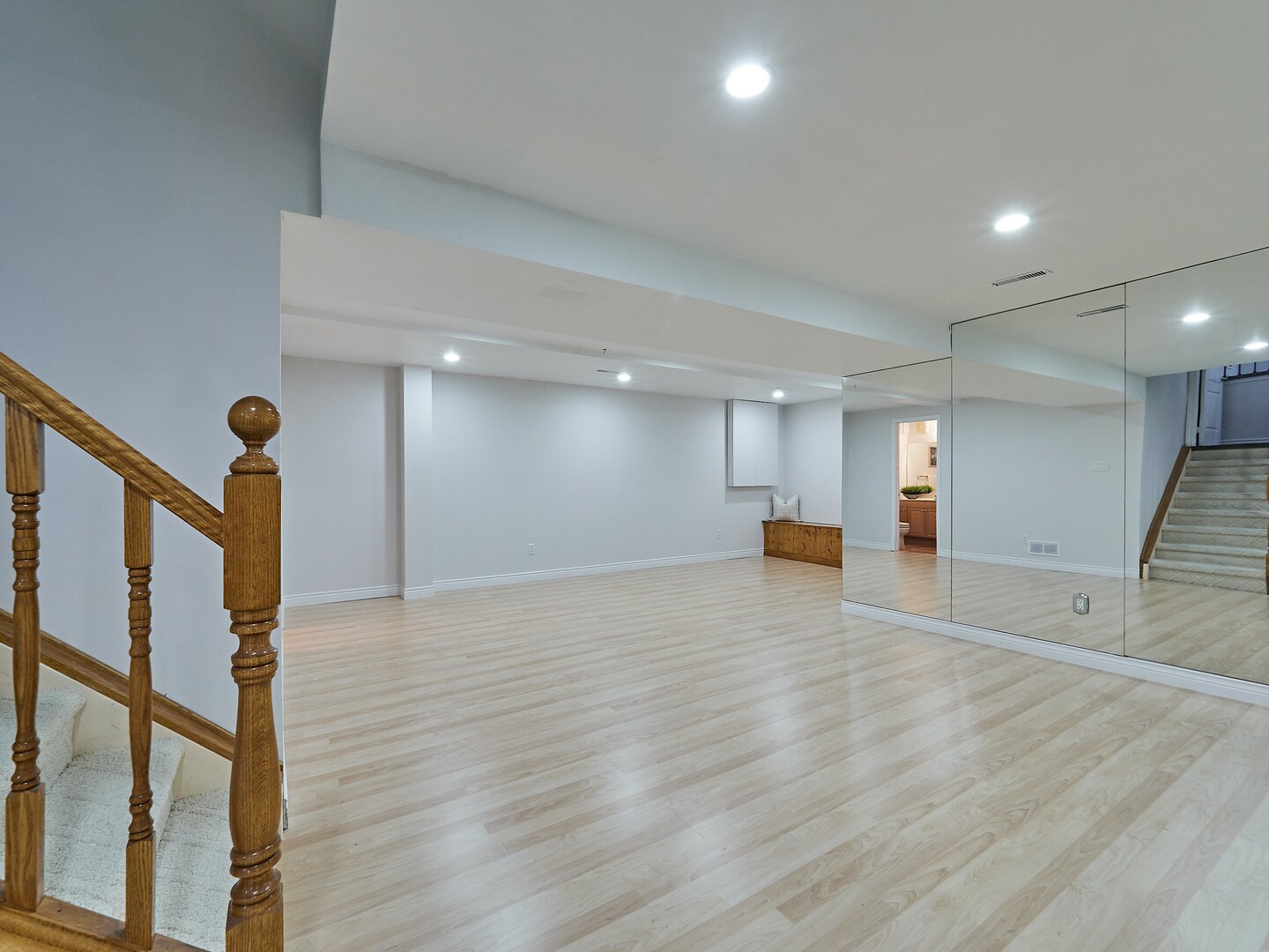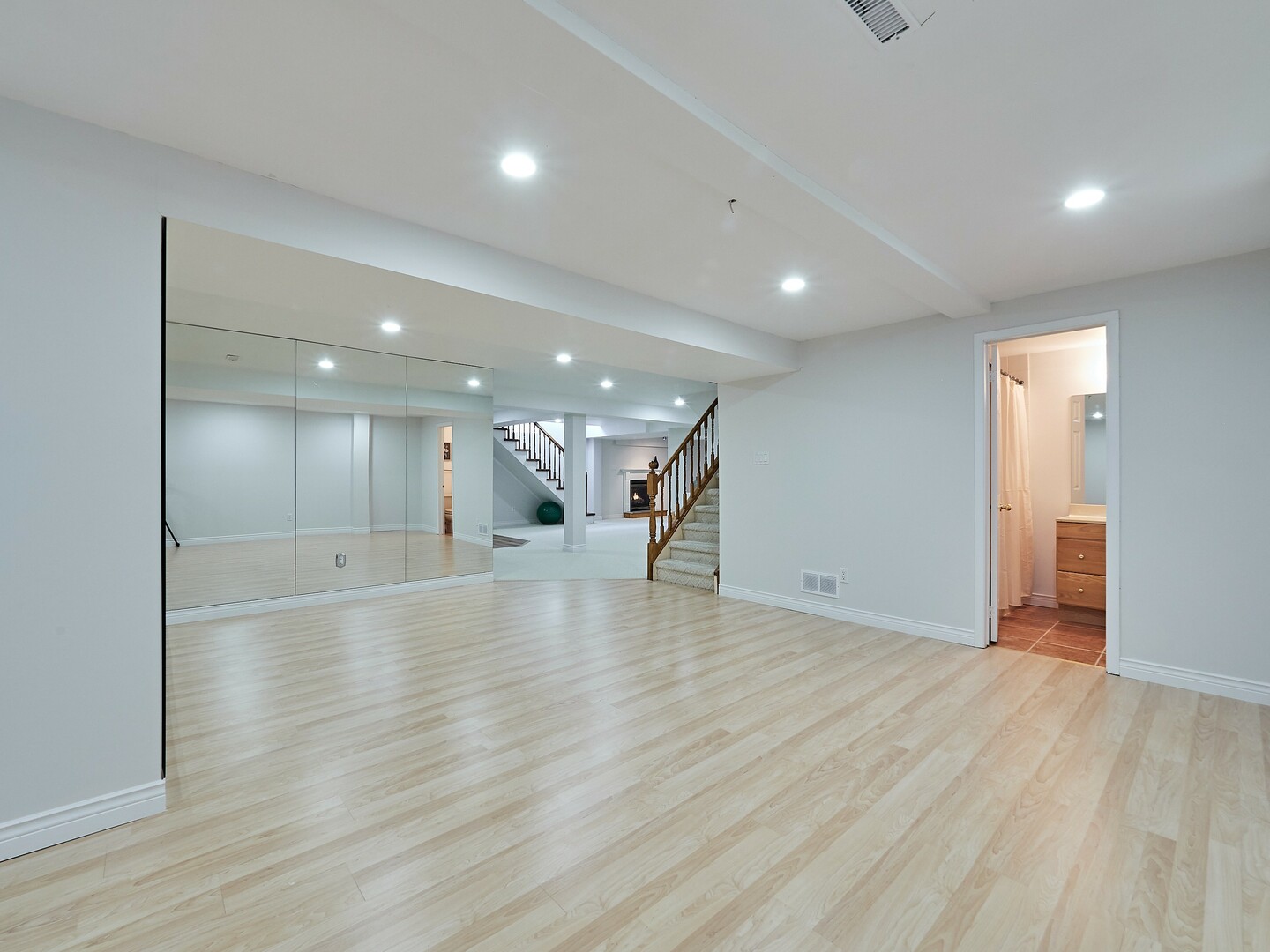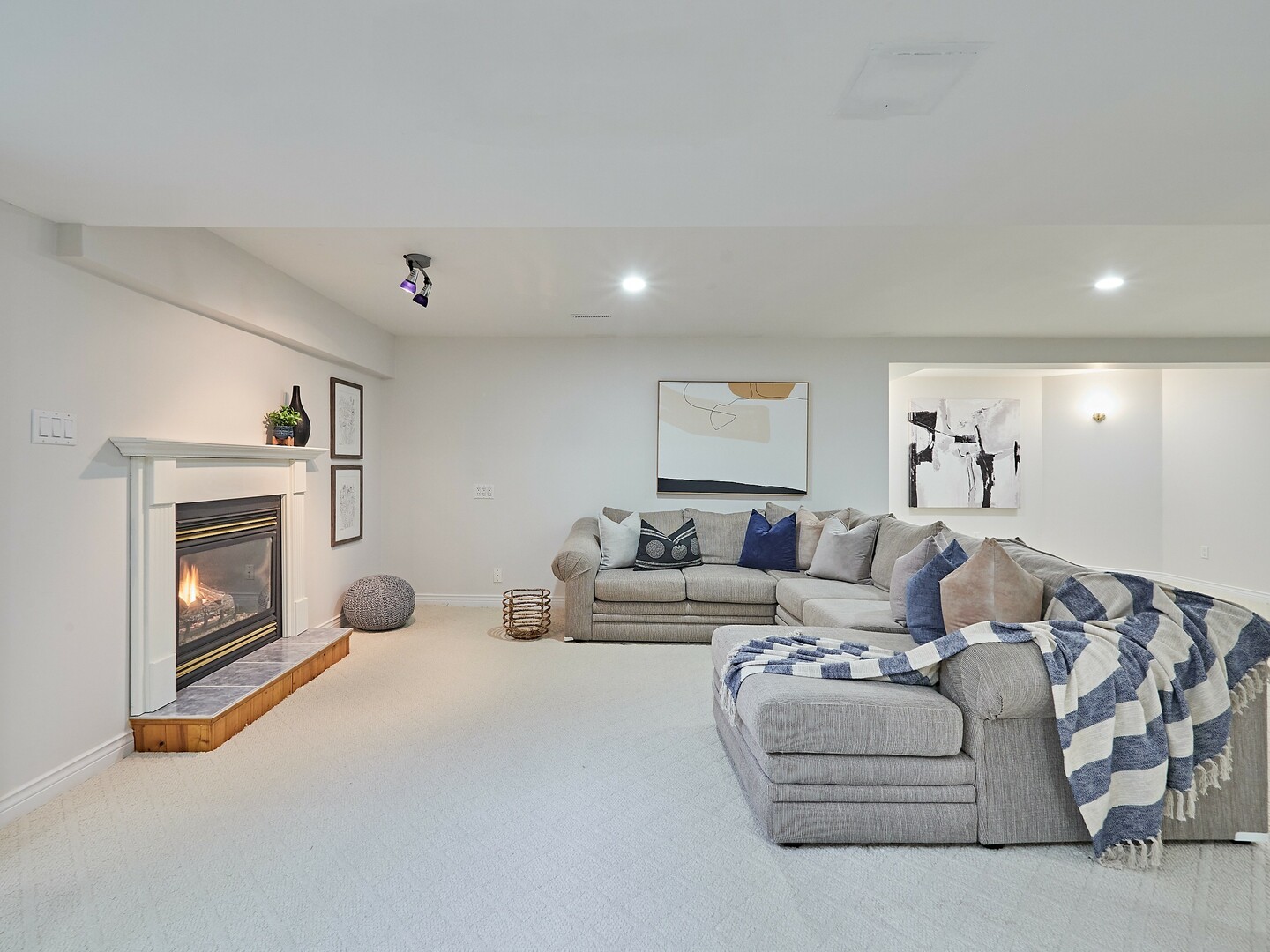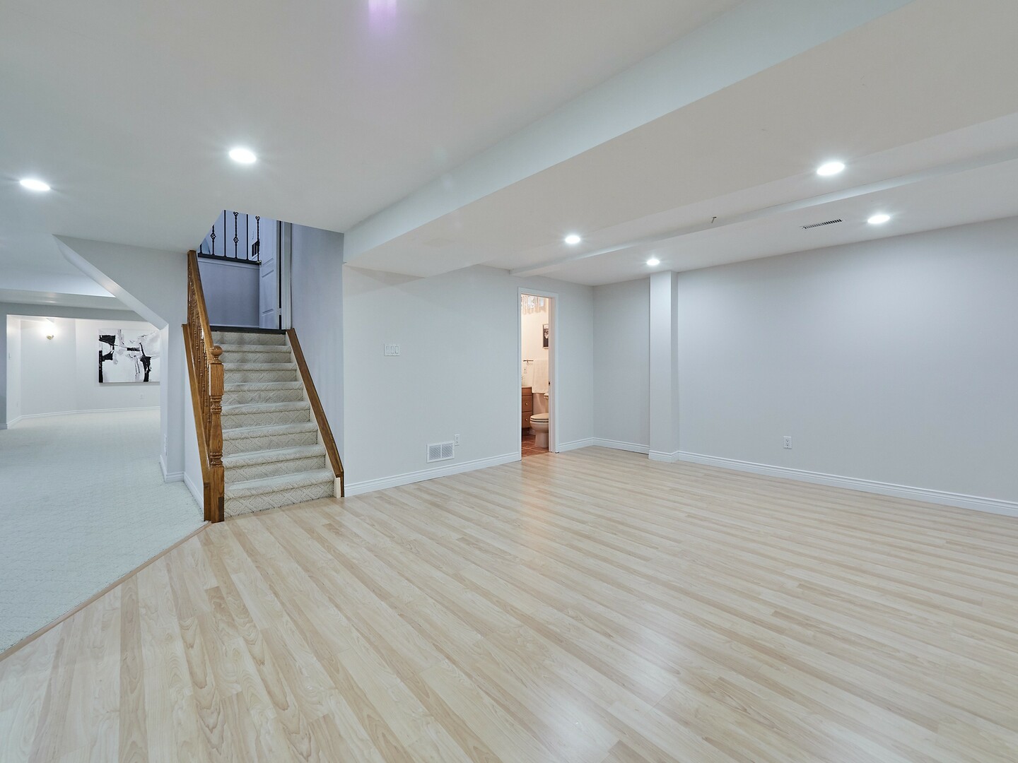 The lower level is as immaculately maintained as the rest of the home, and showcases a fully finished open layout with two distinct recreational areas brightened with pot lighting. Directly off the staircase landing is a games area with laminate flooring; mirrored accent walls; a wall-to-wall bench seat; as well as a 4-pc washroom.