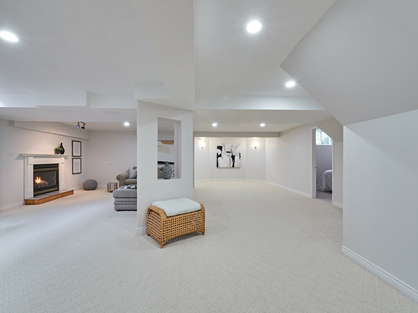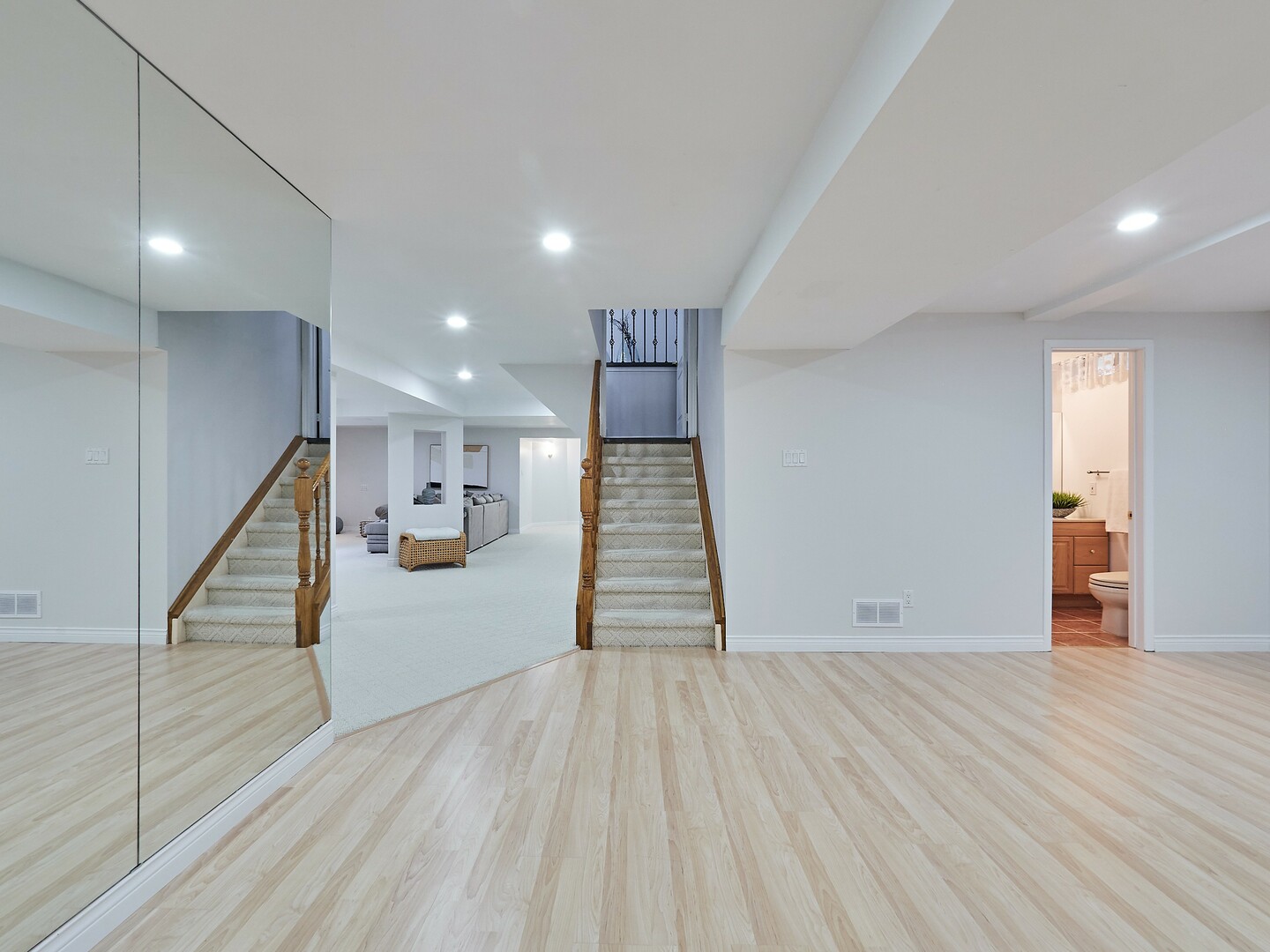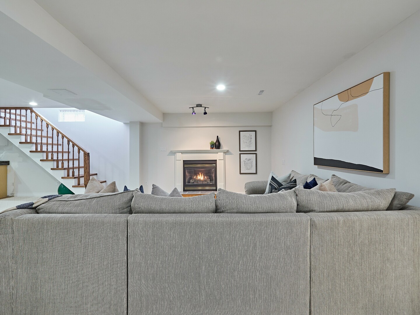 The lower level is as immaculately maintained as the rest of the home, and showcases a fully finished open layout with two distinct recreational areas brightened with pot lighting. Directly off the staircase landing is a games area with laminate flooring; mirrored accent walls; a wall-to-wall bench seat; as well as a 4-pc washroom.