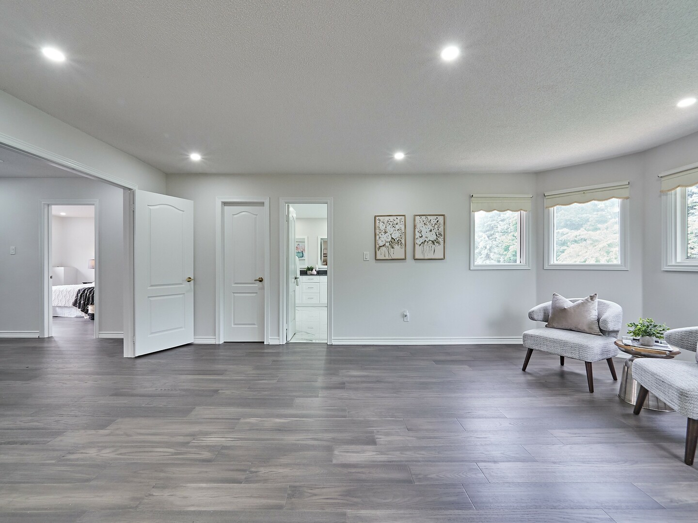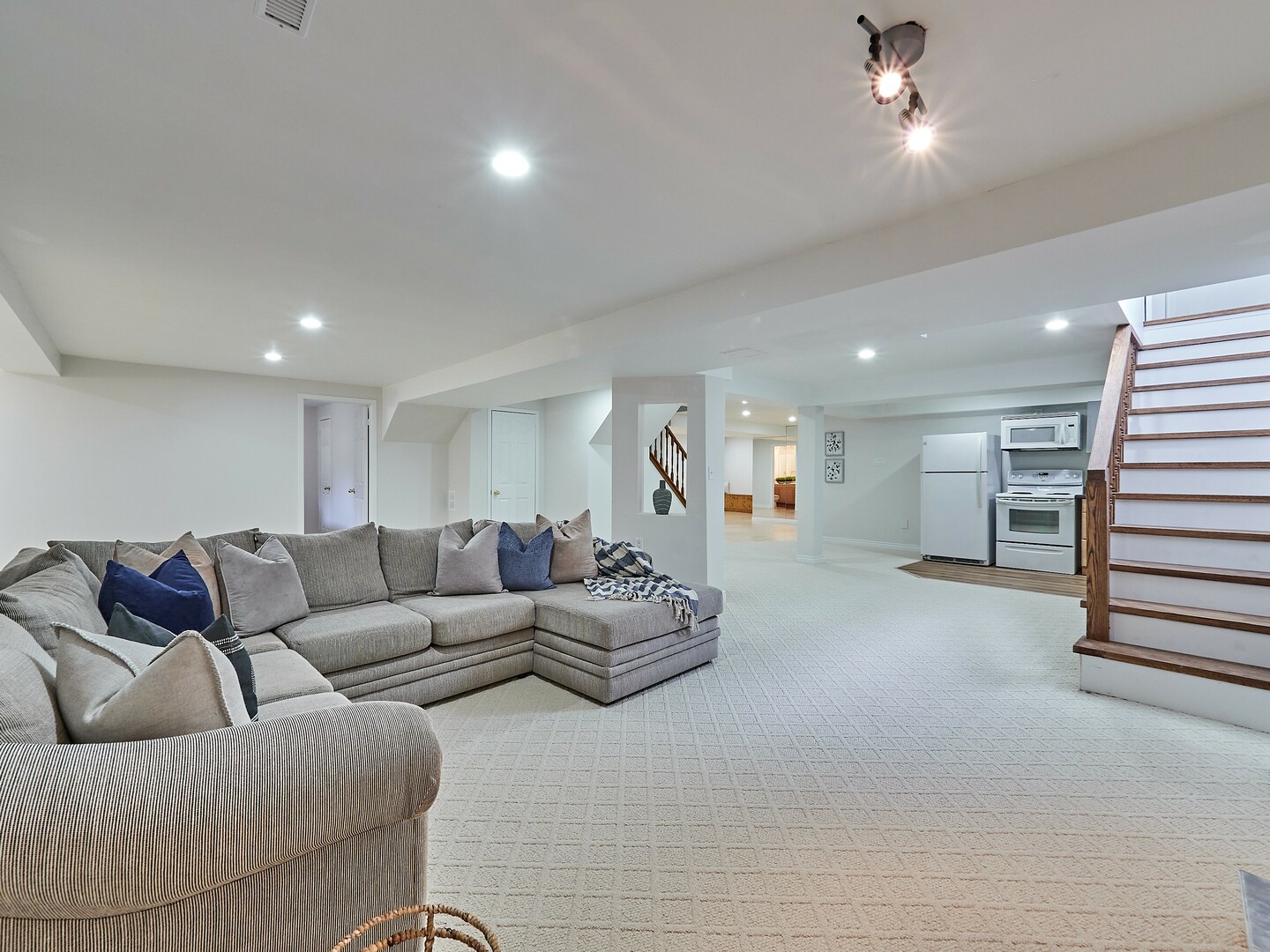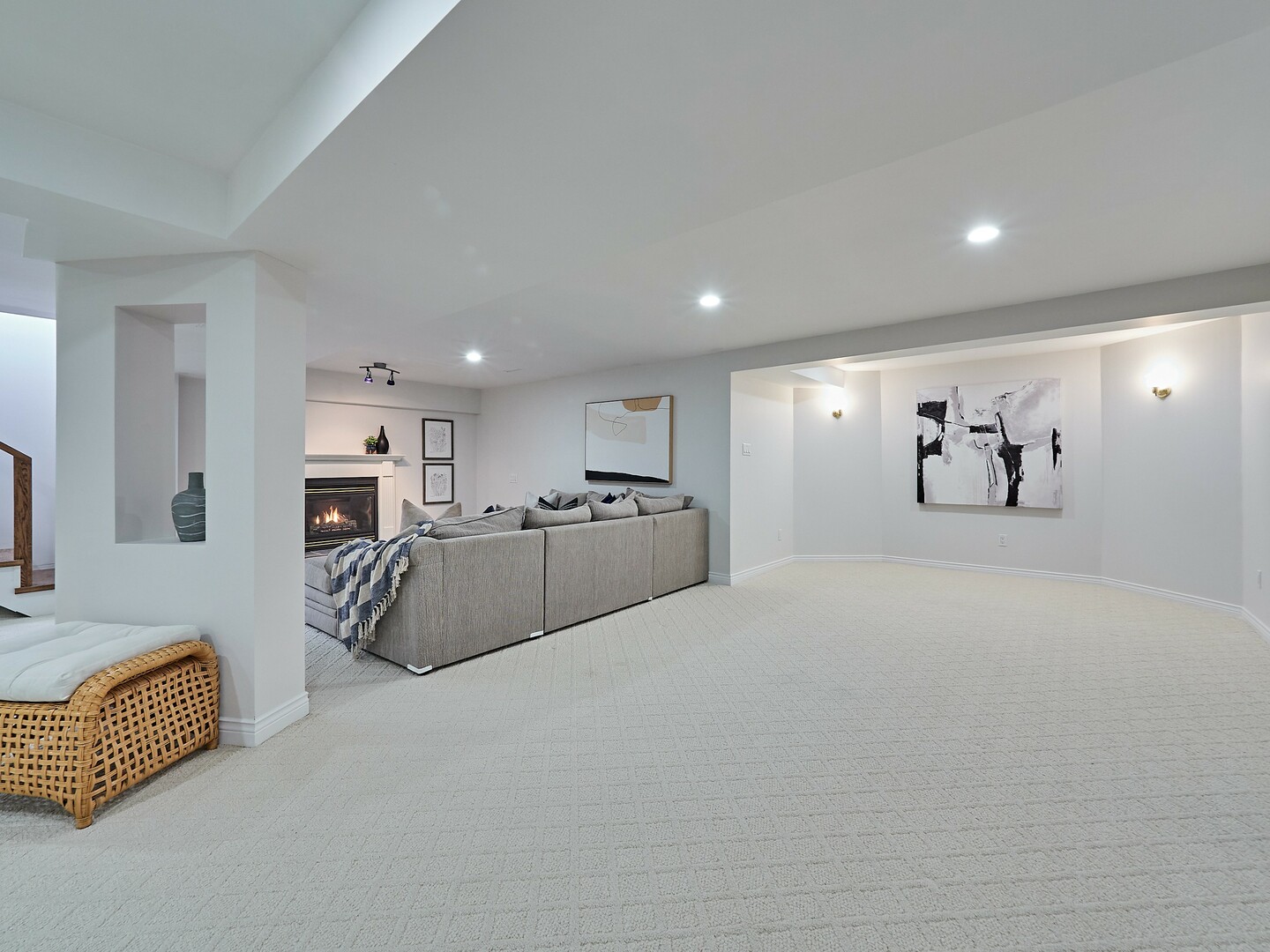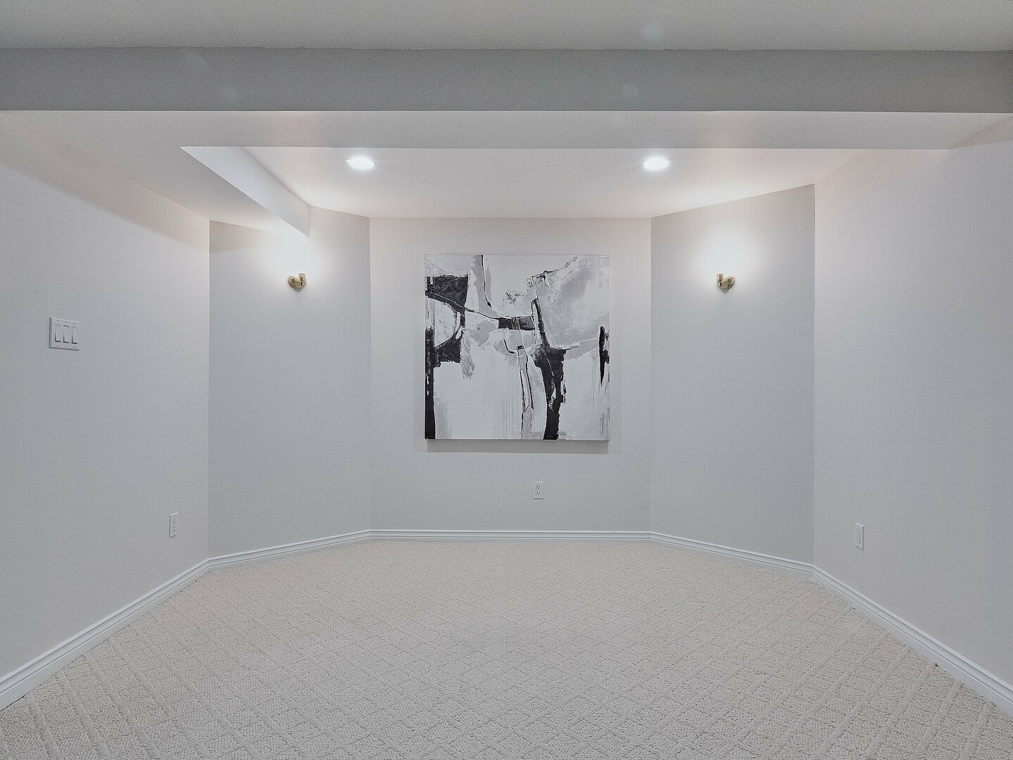 The lower level is as immaculately maintained as the rest of the home, and showcases a fully finished open layout with two distinct recreational areas brightened with pot lighting. Directly off the staircase landing is a games area with laminate flooring; mirrored accent walls; a wall-to-wall bench seat; as well as a 4-pc washroom.