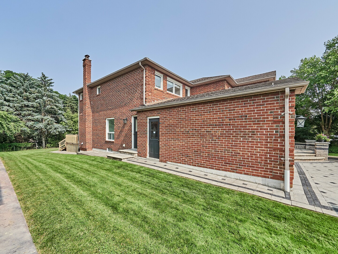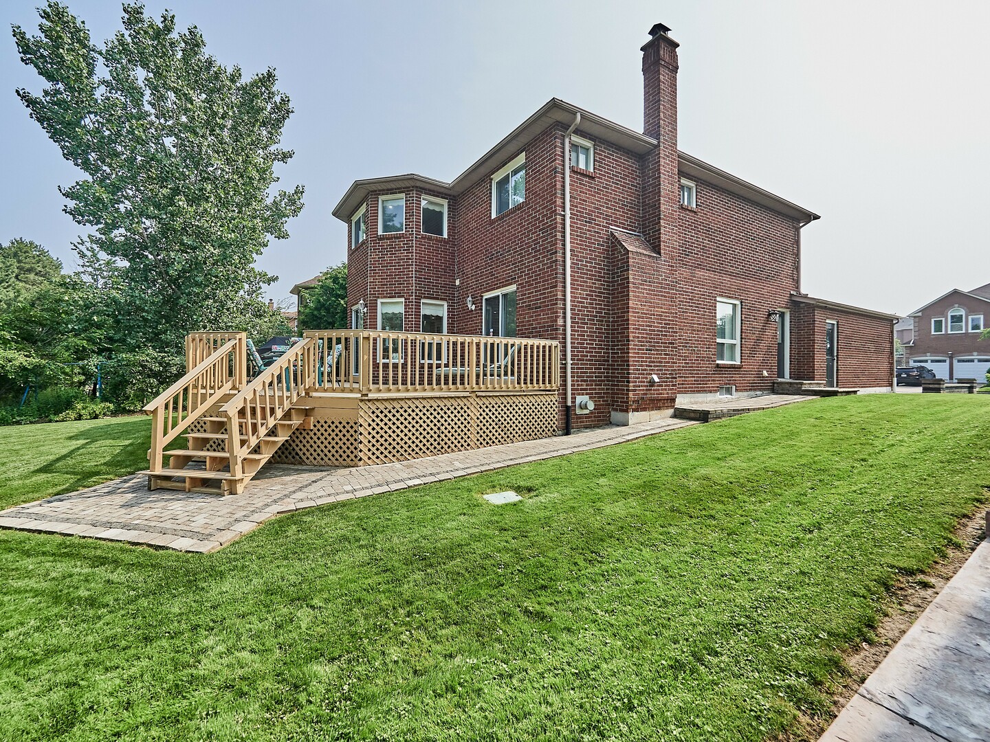 An immaculately maintained property showcasing interlocking stone walkways on the north and south sides to a beautiful backyard retreat - stone landscaping is also extensively used in the front yard, enhancing both the curb appeal and stately presence of this home. The geometric patterned interlocking driveway, its surrounding accent border, and its accompanying walls are finished with an aesthetically pleasing colour contrast of light and dark stone - all which is carried over to a spacious west-facing front terrace overlooking front yard greenery and mature trees.