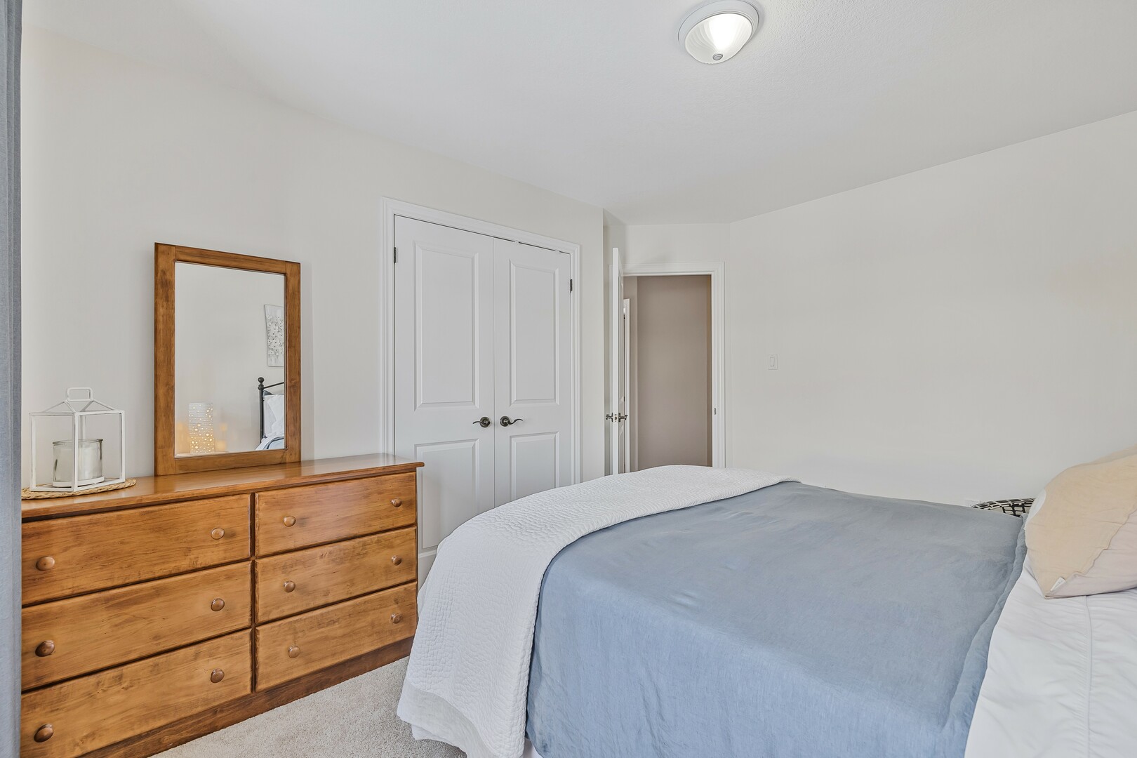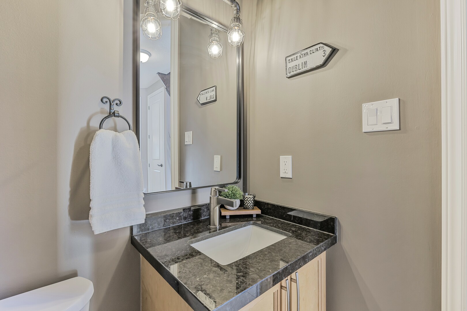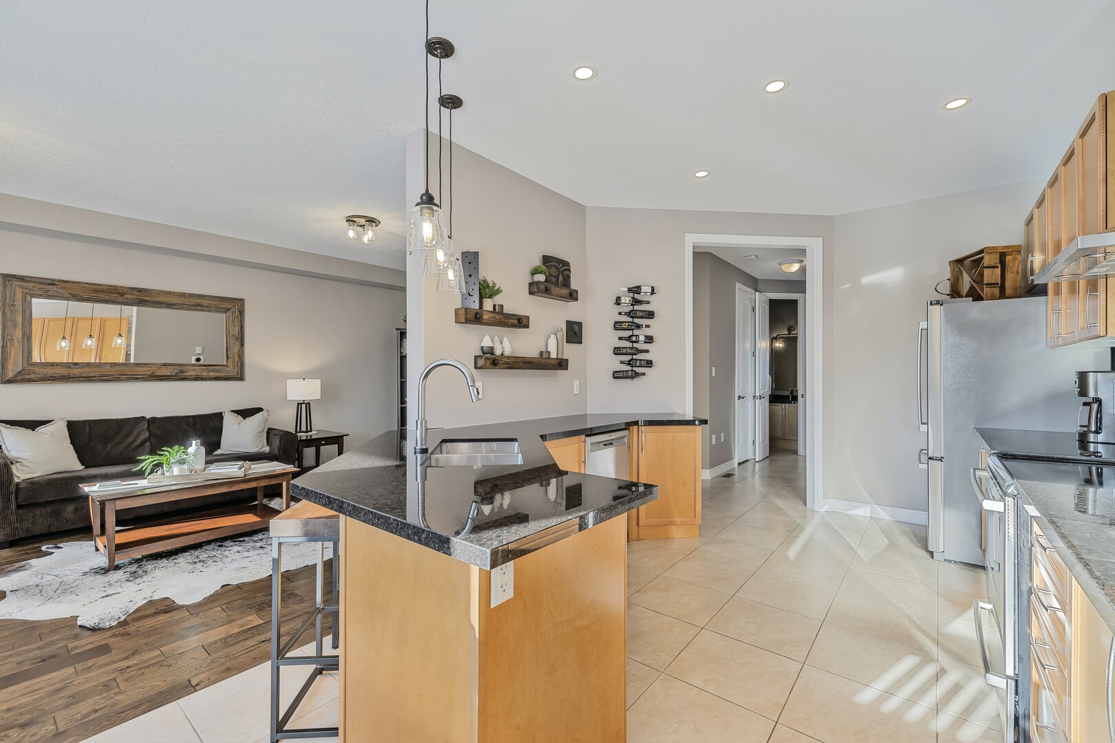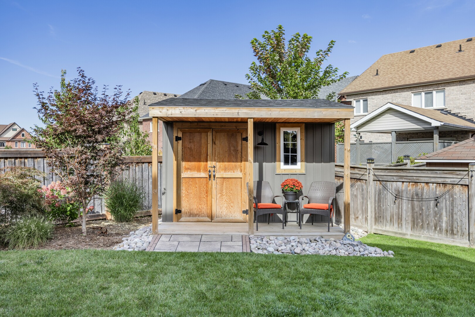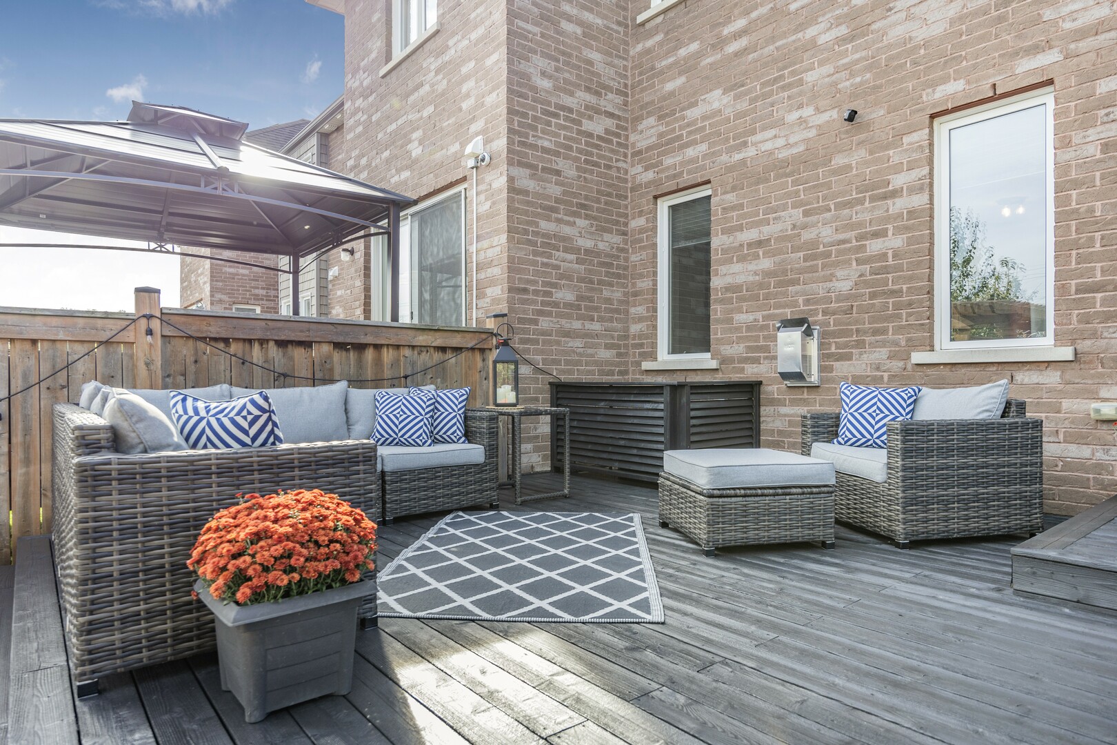 Welcome to this beautifully maintained Dorchester II home by Previn Court! This four-bedroom end unit townhouse is exceptionally clean, well cared for, and shows beautifully. The main floor features 9-foot ceilings, hardwood flooring, and custom blinds throughout. The kitchen boasts Bosch appliances, granite countertops, and breakfast bar seating, with a walkout from the dining area to the backyard deck and patio. The living room showcases a custom gas fireplace, while the front den/office provides a versatile space. A powder room and garage access complete this level. Upstairs, the second floor includes four spacious bedrooms with carpet throughout. The principal bedroom offers a walk-in closet and an en suite with a separate glass-enclosed shower and a luxurious soaker tub. The bathrooms feature upgraded granite countertops, and a laundry room is conveniently located on this floor. The unfinished basement features tall ceilings, above-grade windows, and a bathroom rough-in, offering great potential. The exterior is a backyard retreat, featuring a fully fenced yard with two custom pergola privacy walls, a garden shed, and a large, pool-sized premium lot (6000+ sq. ft. / ~560 m). A ~200 sq. ft. deck leads down to a ~500 sq. ft. patio, perfect for relaxing and entertaining. A covered front porch and all brick exterior adds charm and curb appeal. This ~2154 sq. ft. home (as per builders plans) offers a perfect blend of style, space, and comfort. Must be seen!