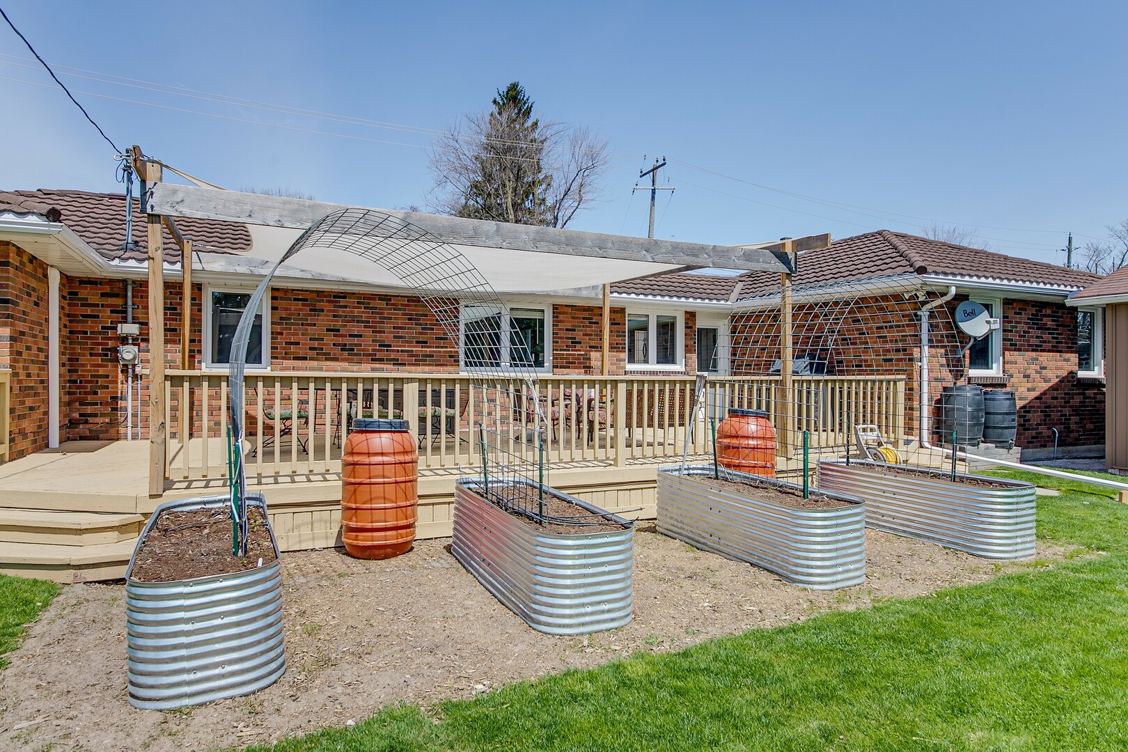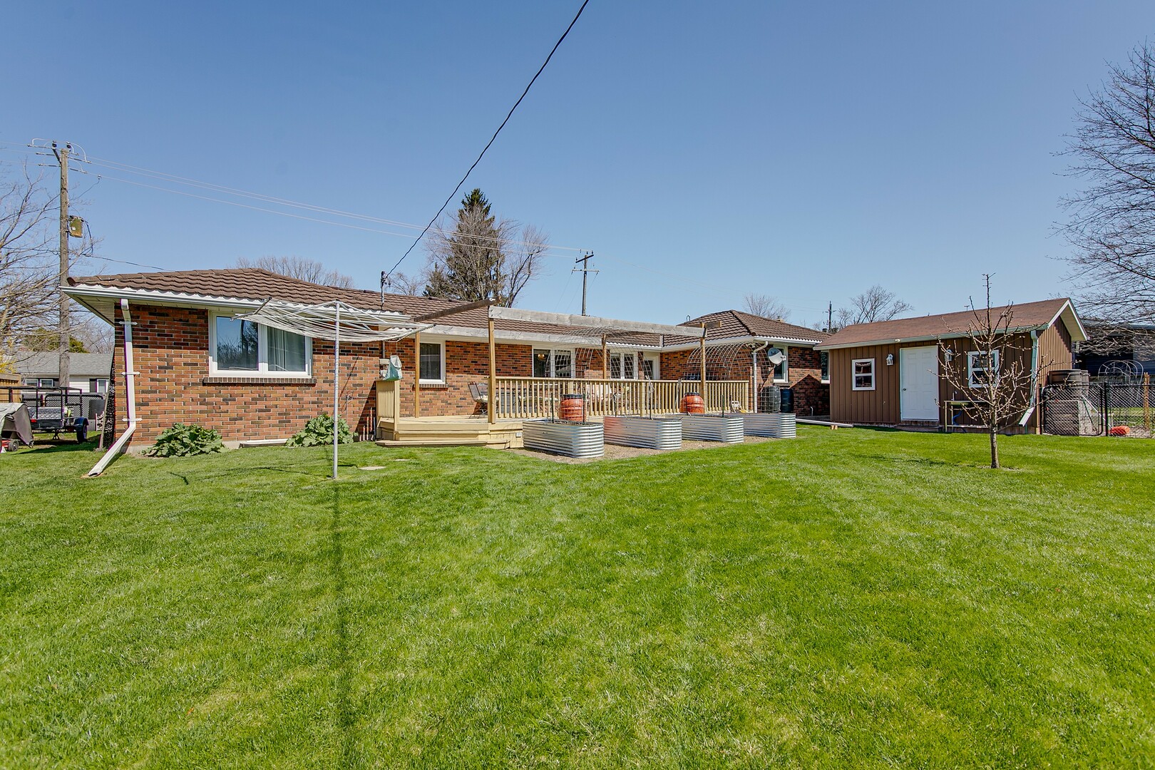 Welcome Home to 211 Albert Street West, a charming all-brick bungalow located in the heart of Alliston's thriving uptown neighborhood, where community spirit and small-town charm come alive. This enchanting home is surrounded by stunning gardens that bloom with vibrant colors and a spacious deck, perfect for morning coffee or afternoon barbecues, just steps away from the essentials like Grocery and Pet Stores. As well as downtown shopping, making it an ideal haven for busy families or individuals seeking convenience and a relaxed pace of life. Imagine strolling to the many local schools, Parks, Outdoor Pool and splash pad, the town recreational center, or the pickleball and tennis courts, where you can engage in a friendly match or simply enjoy the fresh air and scenic views. For entertainment, you're just a short walk from the local cinema, restaurants, and cafes, offering a diverse range of cuisines and atmospheres to suit every taste. This house is also within minutes of Stevenson Memorial Hospital. The property occupies a large, immaculately maintained lot, featuring a picturesque landscape of fruit trees, vibrant annuals, and ample space to nurture your own home garden. As you step inside, large windows flood the interior with natural light, creating a warm and inviting ambiance. The charming front porch, adorned with comfortable seating, beckons you to slow down and unwind, savoring the tranquility of your surroundings. With ample parking and convenient garage access, this property seamlessly blends comfort, functionality, and curb appeal, making it the perfect retreat for those aiming for a peaceful and practical lifestyle. Added Features: Backyard Workshop Building is 11x15 with Hydro and 2 screened windows Ductless Heat Pump System installed 2024 Electrical extras: Generator Inlet Box Surge Protector Garage Security features Secondary vehicle access with curb cut on West side of the house