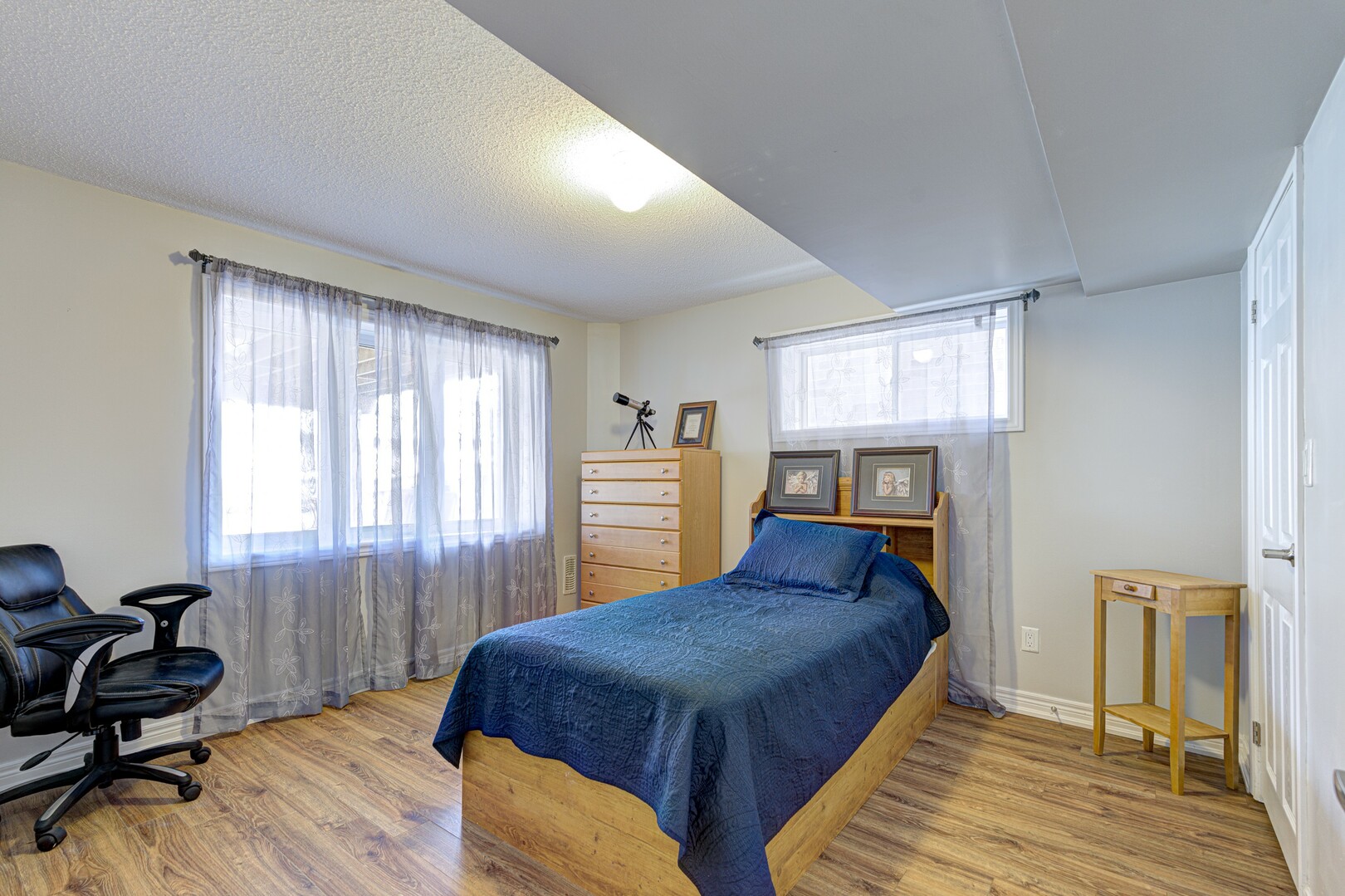 The basement apartment has been thoughtfully finished, with large above-grade windows drawing in natural light, a stylish eat-in kitchen, comfortable bedroom, and walk-out sliding doors to a private, covered 24x5 deck—the perfect spot for enjoying morning coffee or entertaining guests.