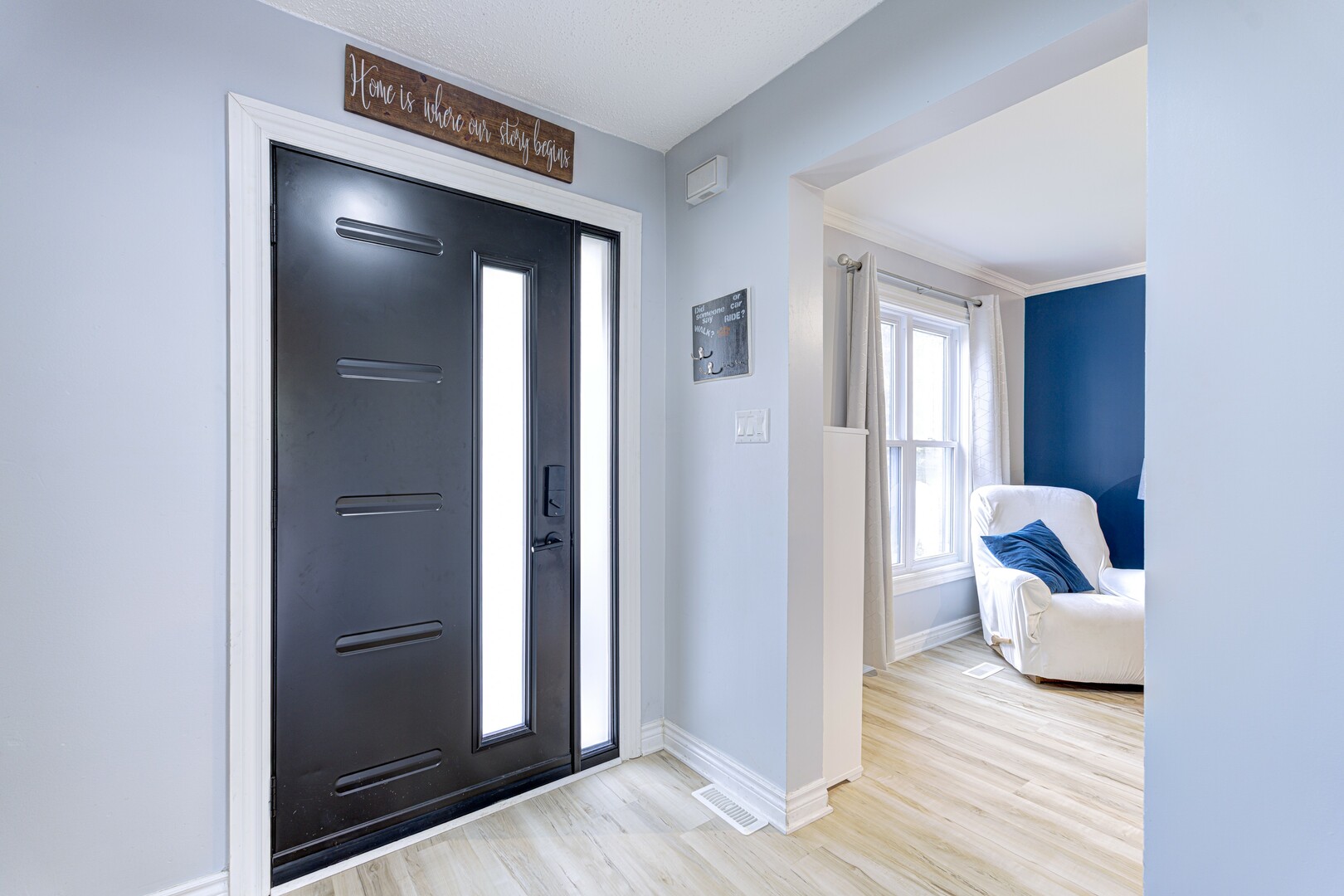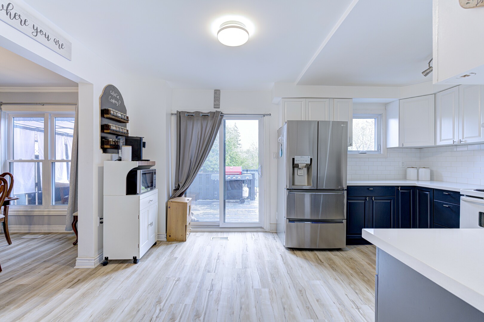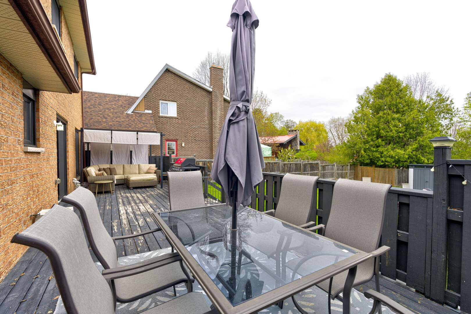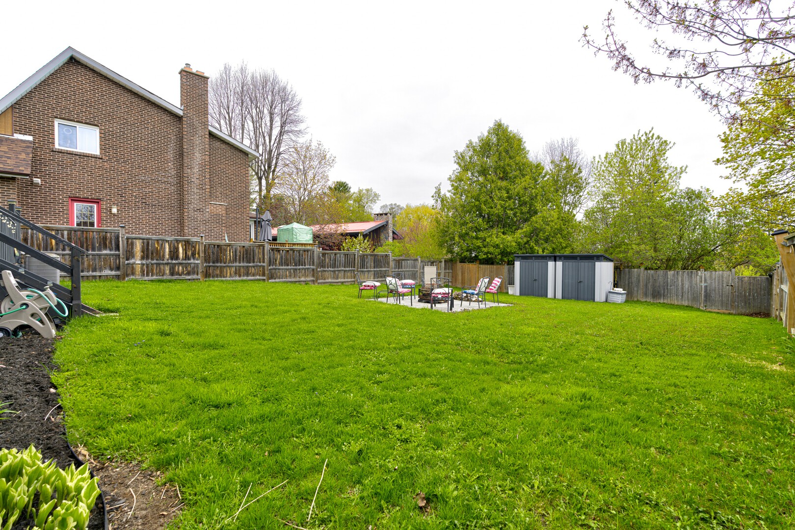 This beautiful all-brick two-storey home is nestled on a quiet court, just a short walk from the vibrant downtown core. Featuring a spacious and well-designed layout, the home offers generously sized rooms perfect for family living, with the added benefit of a private, self-contained basement apartment. The basement includes its own separate entrance through the garage, as well as a dedicated entrance to the main level, allowing for complete privacy and independence from the rest of the home ideal for in-laws, adult children, or rental opportunities. The main level also includes a private entrance to the oversized double garage for added convenience. Inside, the home boasts stylish vinyl flooring throughout and a main-level primary bedroom, enhancing accessibility and comfort. The bright kitchen features a walkout to a large deck that overlooks a fabulous, pool-sized backyard perfect for entertaining with a cozy firepit and interlock brick patio creating the ultimate outdoor retreat. Modern updates include all-new windows and exterior doors with a sleek black finish, elevating the home's curb appeal with a contemporary touch. Offering 2,428 finished square feet and 40 years of charm, this home seamlessly blends comfort, style, and functionality.