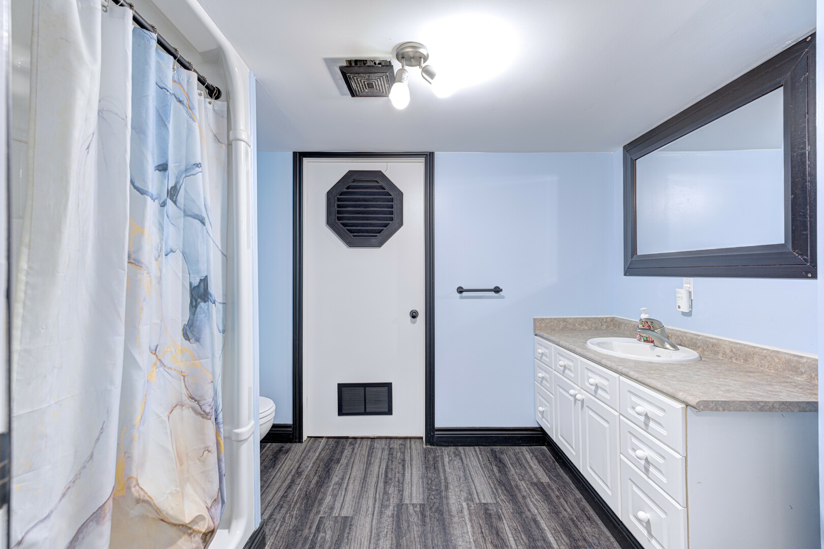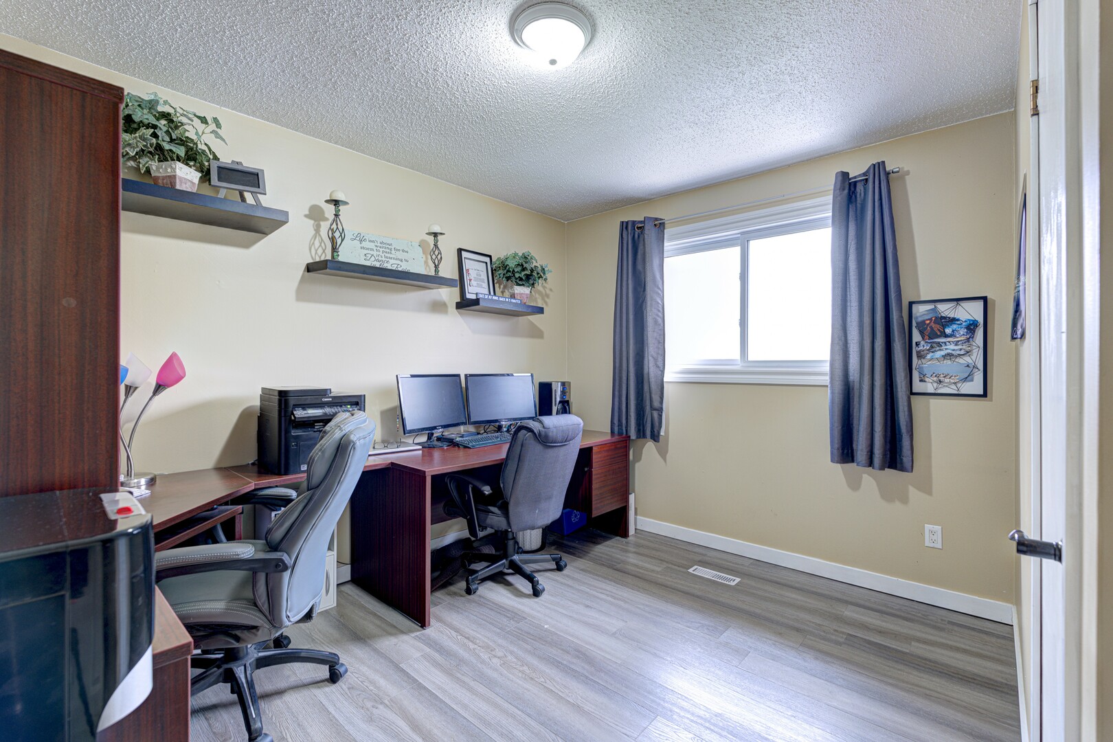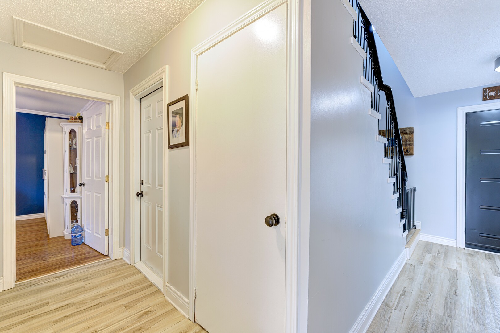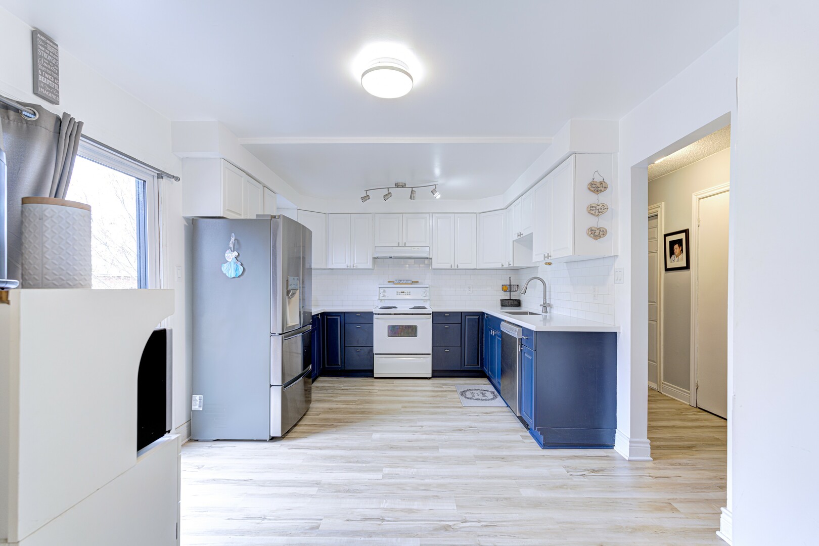 This beautiful all-brick two-storey home is nestled on a quiet court, just a short walk from the vibrant downtown core. Featuring a spacious and well-designed layout, the home offers generously sized rooms perfect for family living, with the added benefit of a private, self-contained basement apartment. The basement includes its own separate entrance through the garage, as well as a dedicated entrance to the main level, allowing for complete privacy and independence from the rest of the home ideal for in-laws, adult children, or rental opportunities. The main level also includes a private entrance to the oversized double garage for added convenience. Inside, the home boasts stylish vinyl flooring throughout and a main-level primary bedroom, enhancing accessibility and comfort. The bright kitchen features a walkout to a large deck that overlooks a fabulous, pool-sized backyard perfect for entertaining with a cozy firepit and interlock brick patio creating the ultimate outdoor retreat. Modern updates include all-new windows and exterior doors with a sleek black finish, elevating the home's curb appeal with a contemporary touch. Offering 2,428 finished square feet and 40 years of charm, this home seamlessly blends comfort, style, and functionality.