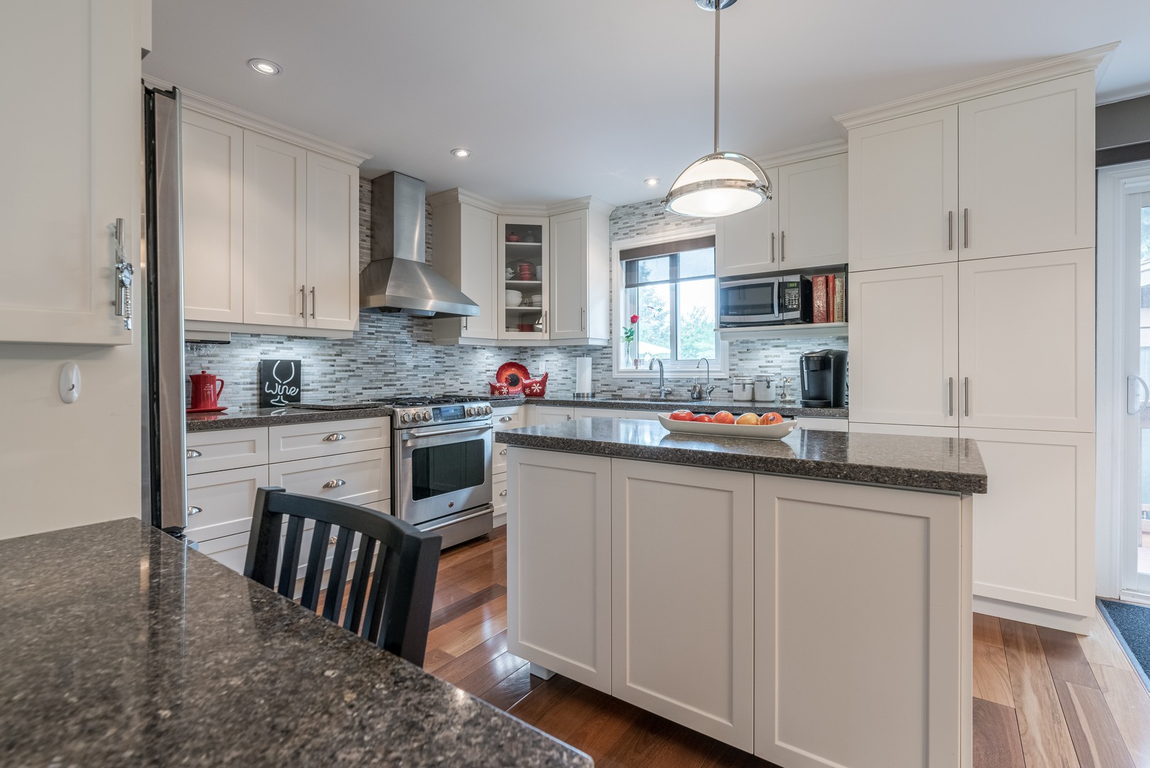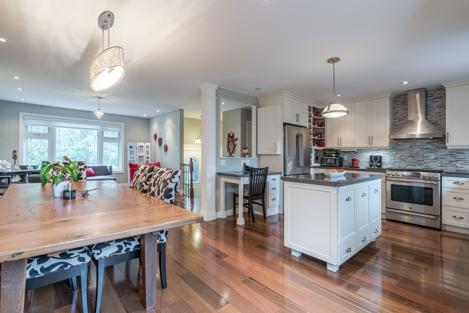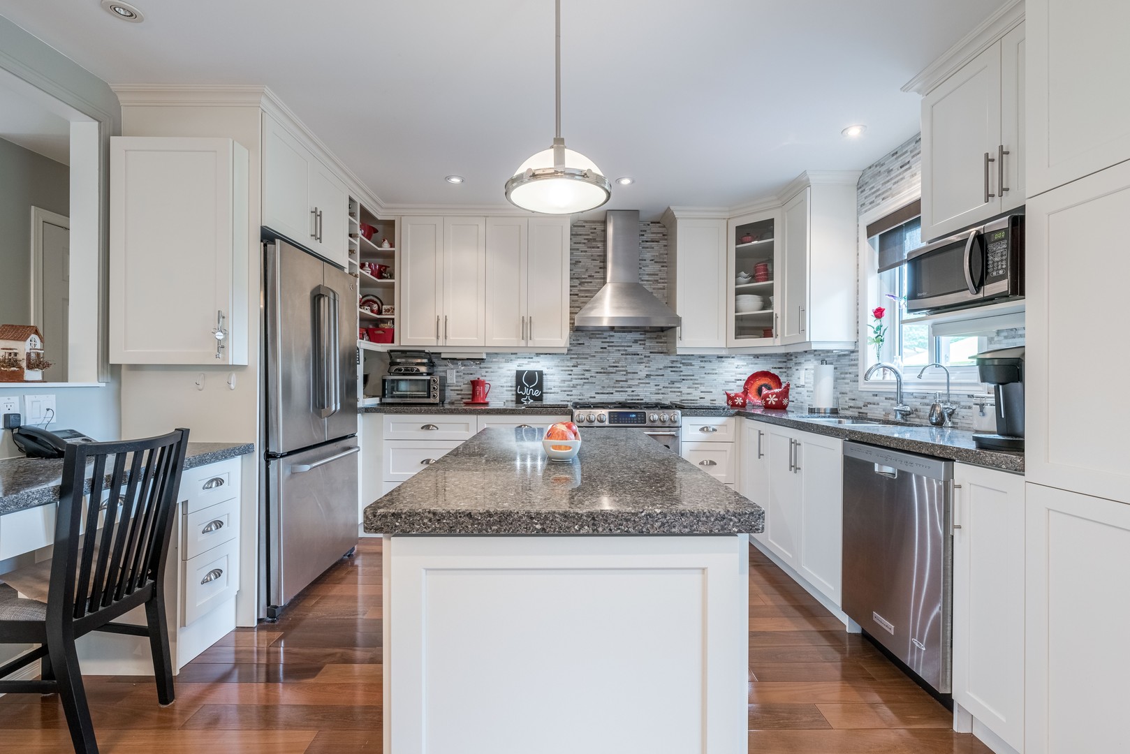 New Custom Kitchen Gorgeous backsplash, cabinet under lighting, B/I wine rack, B/I desk,