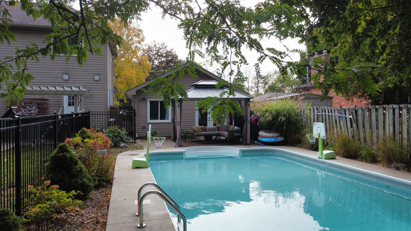 ]Welcome to your dream home, seamlessly blending luxury with nature! This stunning home is beyond living space, it's a lifestyle! Featuring an enchanting backyard oasis with a sparkling saltwater pool (2016) and a charming pool house with a sauna. The pool area is fully fenced for safety and peace of mind, separating it from the lush grass yard which is also fully fenced. Enjoy the shade of a beautiful maple tree which can even be tapped for maple syrup adding a rare unique touch to this sprawling 75x120 premium lot! Life is not all play, so the garage has been transformed into a functional space providing parking, storage and a small 3 seasons home office overlooking the pool, adding versatility for both work while keeping an eye on those who play. Outdoor lighting was added in 2020 adding to the already stunning curb appeal. Before you step inside, take a moment to soak in the charming covered front porch overlooking the front garden. Indoors, find a sought-after layout in this home that was completely rebuilt from the foundation up and completed in 2013. From the spacious front entrance, enter through french doors into the living room with a stunning stone fireplace. The kitchen, upgraded in 2023, features quartz countertops, updated uppers in "Simply White" & stainless steel appliances. You won't mind doing dishes when you overlook the incredible backyard through the large picture window. The second floor offers 4 bedrooms and an office nook. The primary suite is a tranquil haven with an ensuite bathroom and ample storage. New Berber leading to lower level, refinished in 2023, is versatile with an additional bedroom and modern updated lighting. Practical enhancements include waterproofing and an extra sump pump (2023). A radon elimination system was added in 2021 for peace of mind. Embrace serenity, laughter, and create memories in this extraordinary property. Your dream home with an incredible backyard oasis awaits – seize the opportunity to make it yours today!