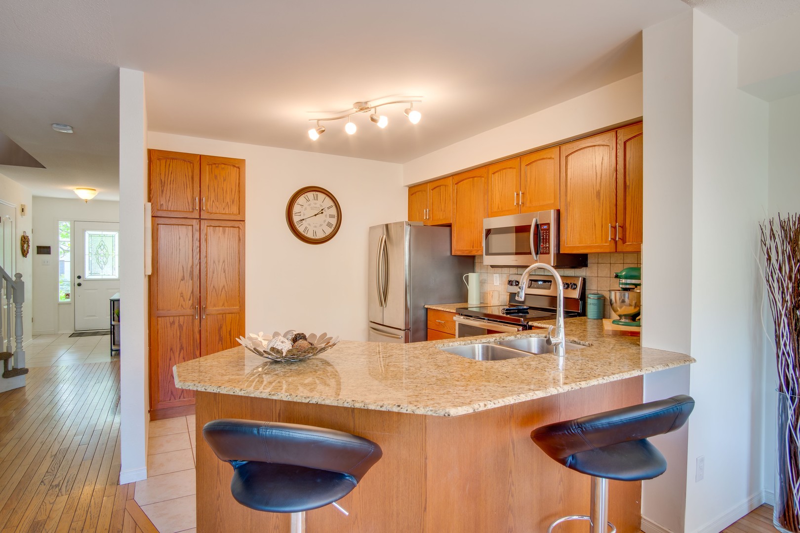 Location, location, location this perfectly located freehold townhouse is minutes from 403 and amenities! Offering an open concepts main floor living plan this beautiful town has it all. Eat-in kitchen featuring granite and stainless steel appliances mixed with tile and maple flooring on the main floor. Dining room leads to private rear yard perfect for entertaining. Main floor offers powder room and garage entrance. Second floor features a loft/den that can be converted into a third bedroom. Generously sized Master suite offers his and her closets and bathroom entrance. Basement is unfinished and ready for your design and style. A must see!!! Book your appointment today and experience with this home has to offer.