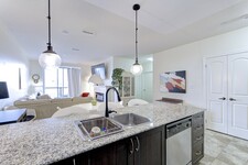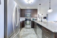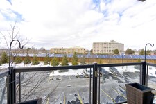 Great Opportunity to live in downtown Milton in an energy efficient Green Life Building! Close to great shopping, restaurants, parks and public transportation! This cozy unit has 2 bedrooms, 2 full baths and 2 parking spots! Over 1000 sq ft and 9 ft ceilings, the open concept makes entertaining easy! Kitchen has granite countertops with an breakfast bar, stainless steel appliances and open concept! Dining area and living room are spacious, with walkout to balcony! Living room has a modern built-in, electric fireplace and mantle for cozy evenings! Good sized bedrooms with laminate flooring. Primary has 4 piece ensuite and double closets! Second bathroom is also a four piece bath! Ensuite laundry for convenience! The building has lots of visitor parking, exercise area, meeting/party room, as well as a games room!