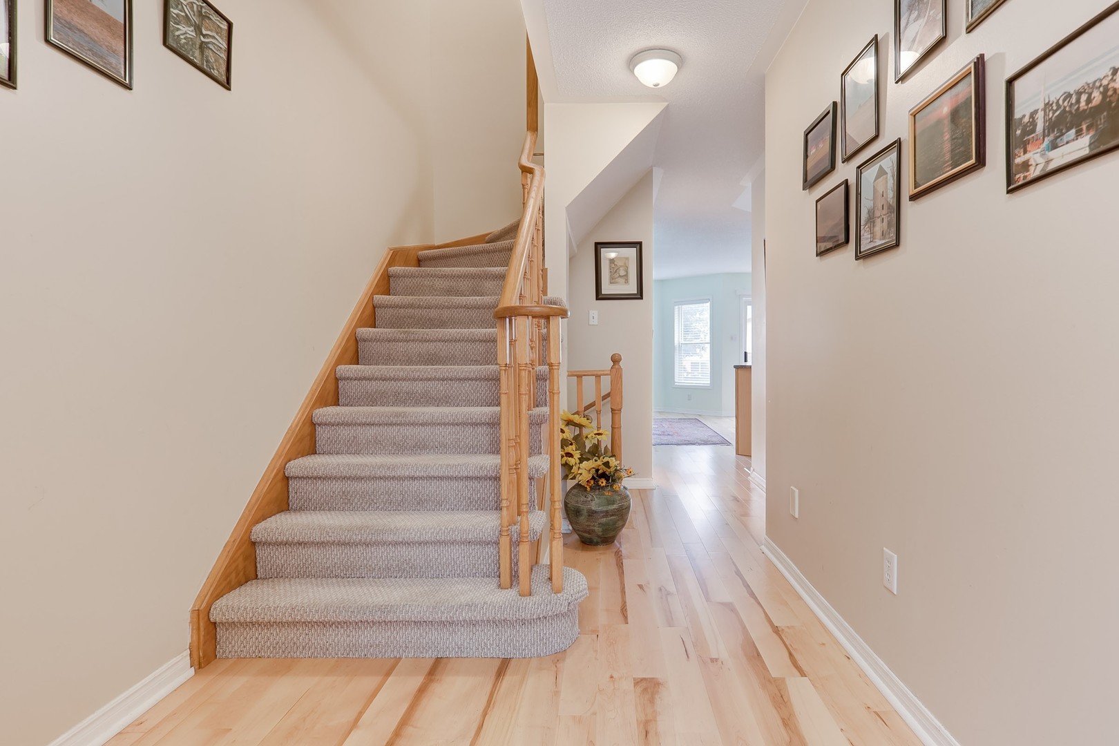 Situated In Sought After Aurora Community, Features A Bright Open Concept Living, Dining, Kitchen W/Breakfast Bar & W/Out To Deck. Fully Fenced Back Yard. Beautiful 4 1/4" Maple Hardwood Floors On Main. Garage Access Off Foyer. The Upper Level Features 3 Spacious Bedrooms & Master W/Ensuite. Professionally Finished Basement. Upgraded Front Walkway & Drive W/Park For 2 Cars. Walking Distance To All Amenities, Parks, Schools, Go, Transit & More!
