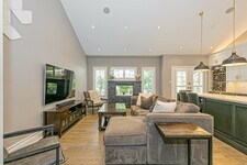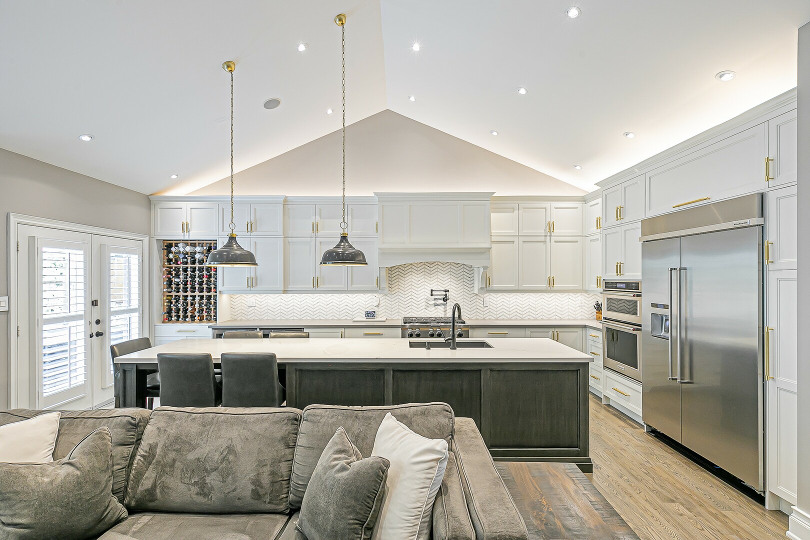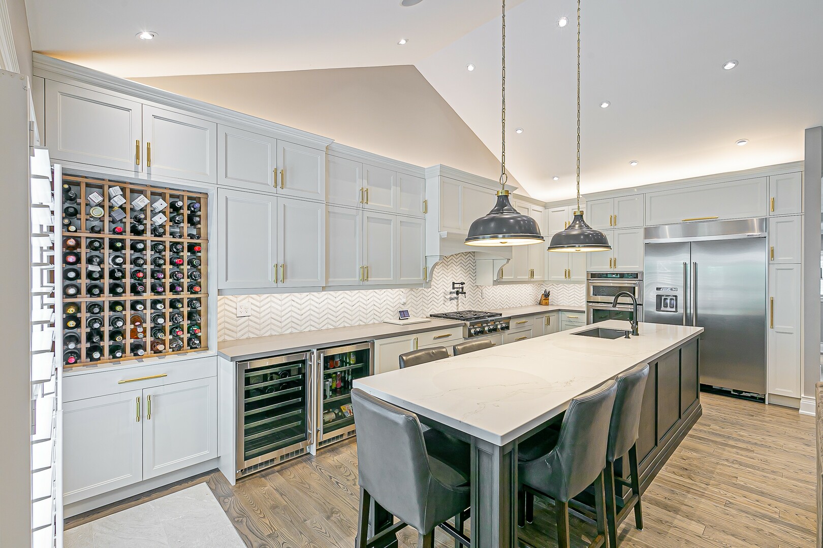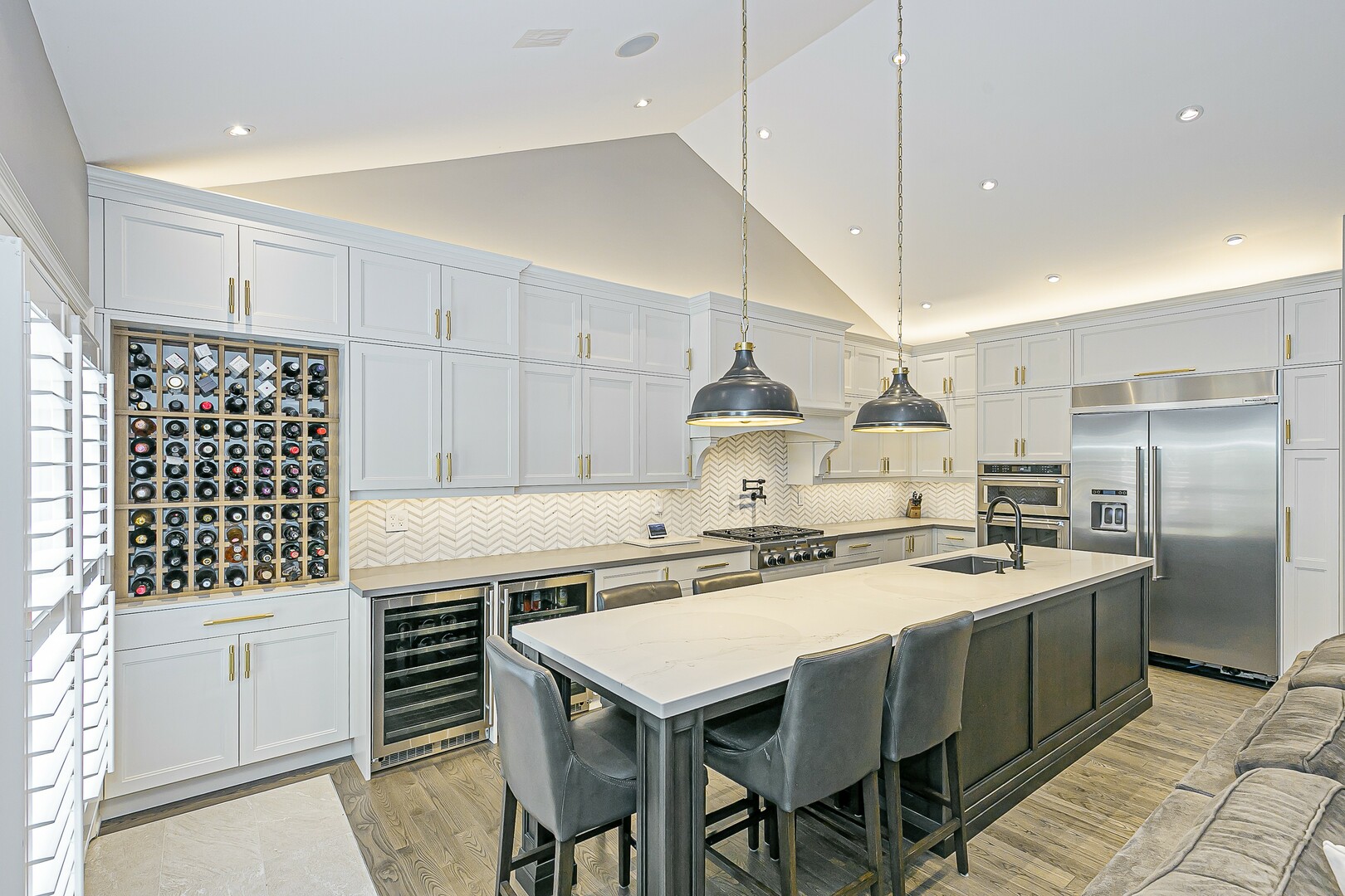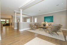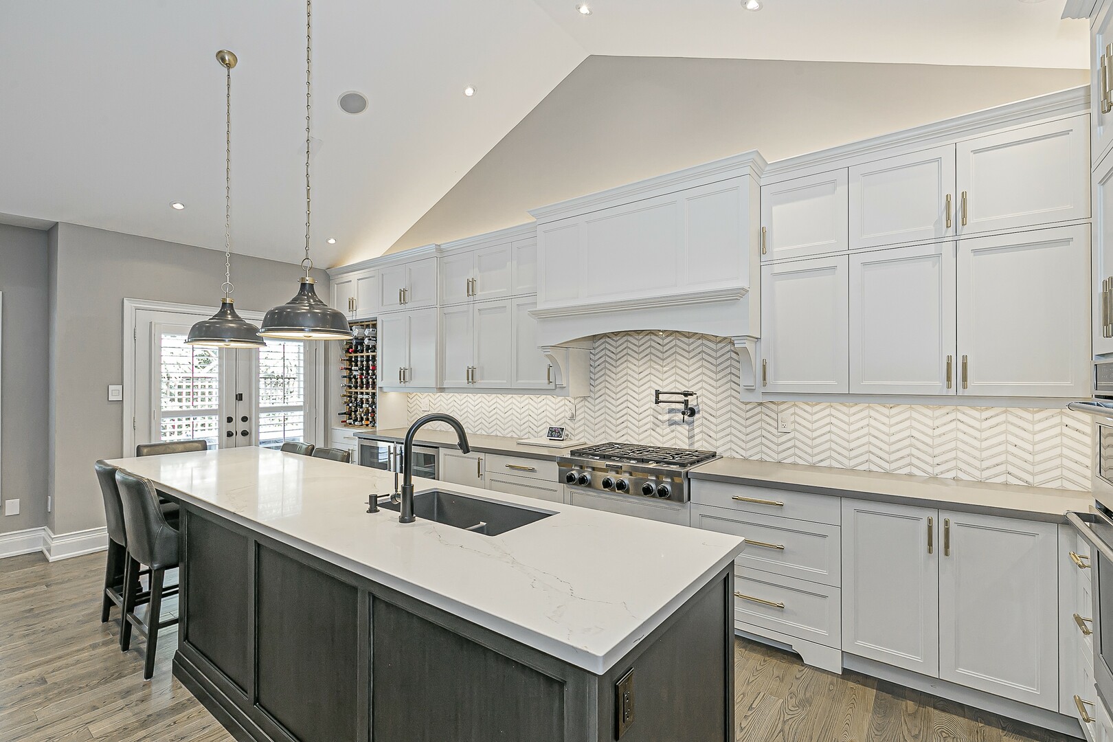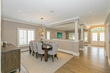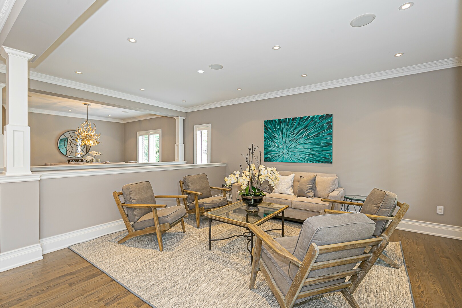 Step inside to a spacious, light-filled foyer with a double-door entry and a walk-in closet. The open-concept main floor is perfect for both everyday living and entertaining. The formal living room boasts elegant crown moulding and a large window overlooking the front yard. The dining room offers a warm and inviting space, perfect for gathering with family and friends. The chef-inspired kitchen is the heart of the home, complete with stainless steel appliances, pot filler, quartz countertops, custom cabinetry, a large island with breakfast bar, pendant lighting and a walkout to the back deck. The adjoining great room features a vaulted ceiling and a cozy double-sided fireplace that can be enjoyed from both indoors and out. A powder room is conveniently located off the main living area.