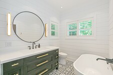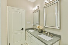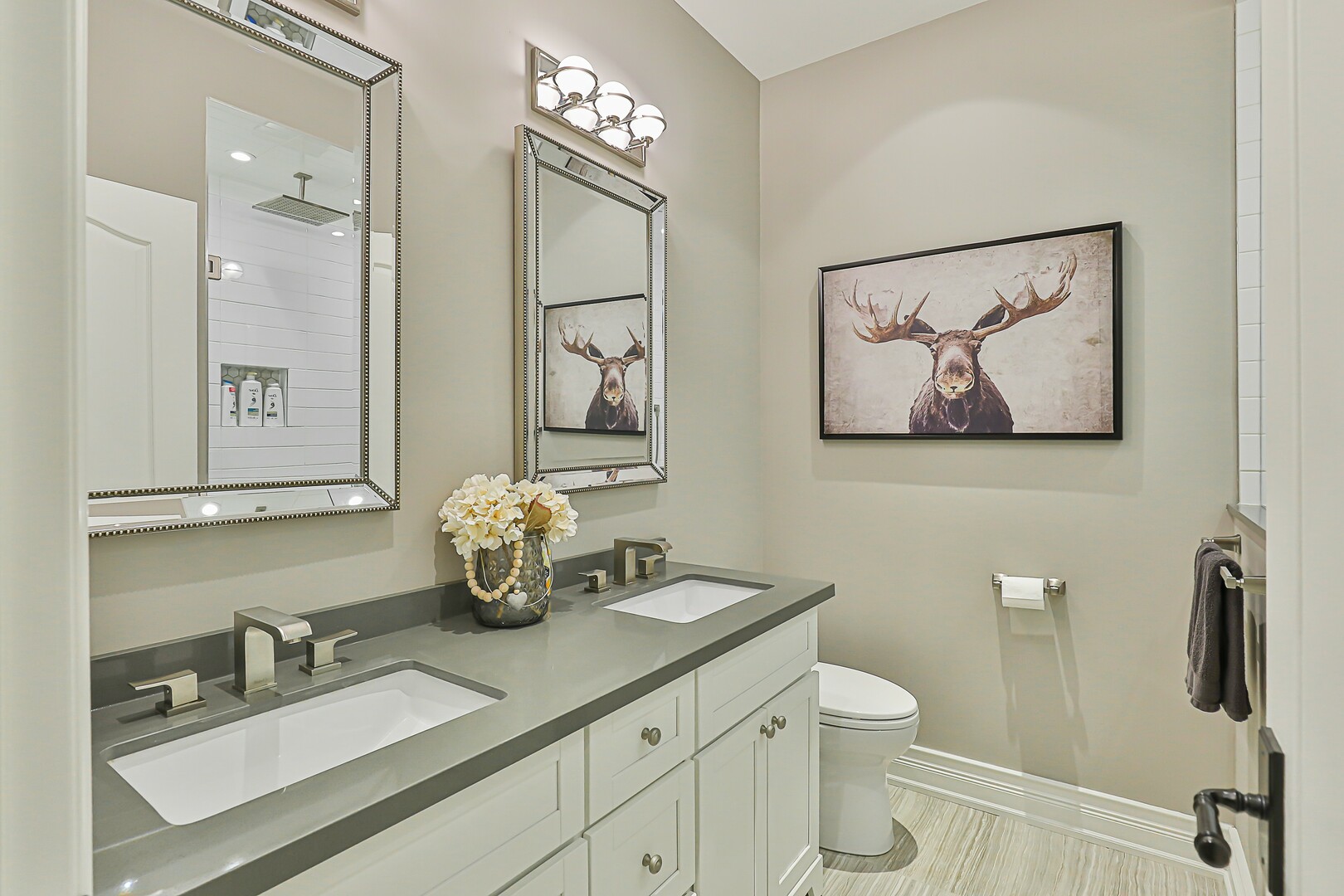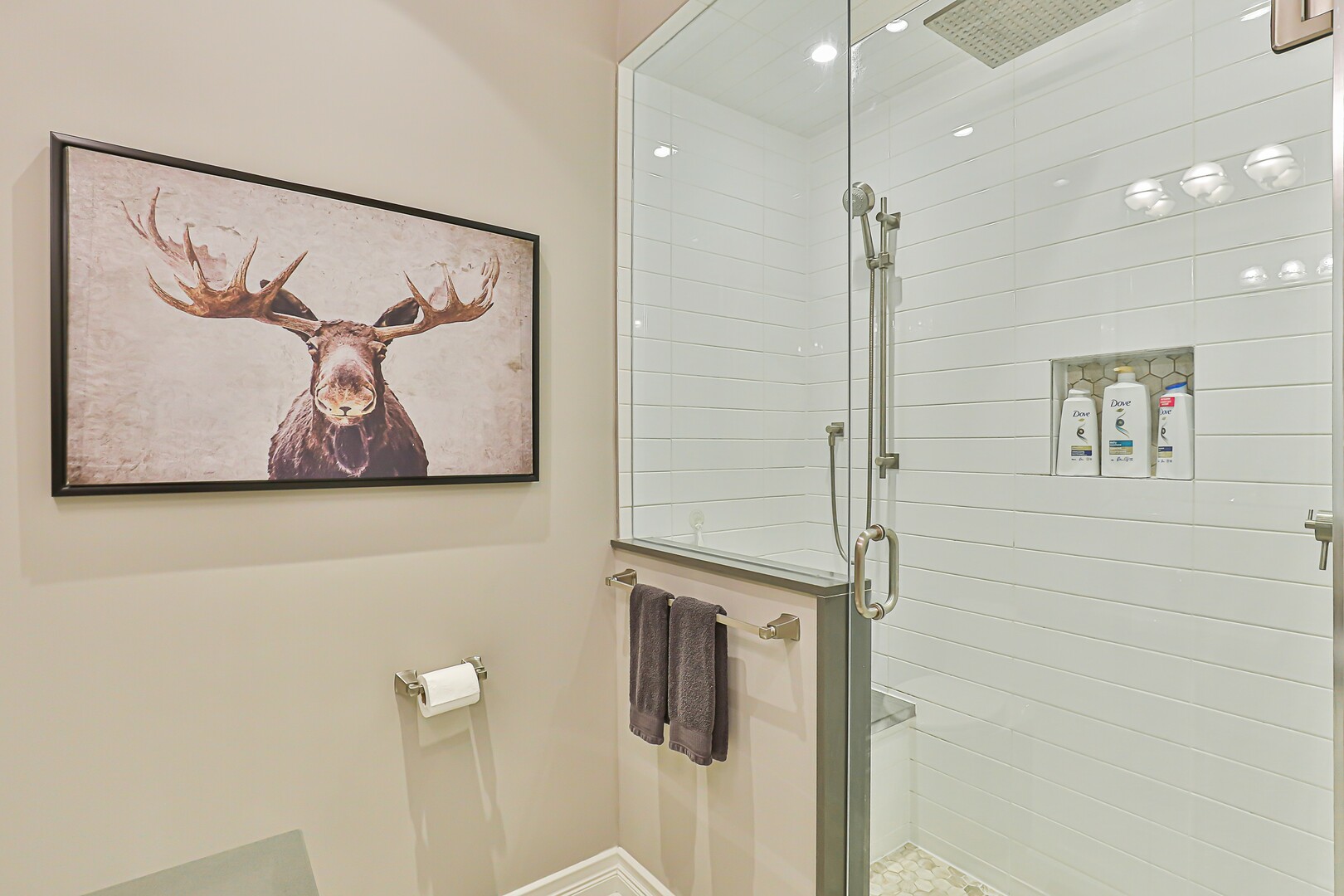 • Primary ensuite bathroom renovated with Brizo faucets for the sink and tub, custom vanity with Caesarstone quartz vanity top, heated floor & accessible shower with built in shower seat