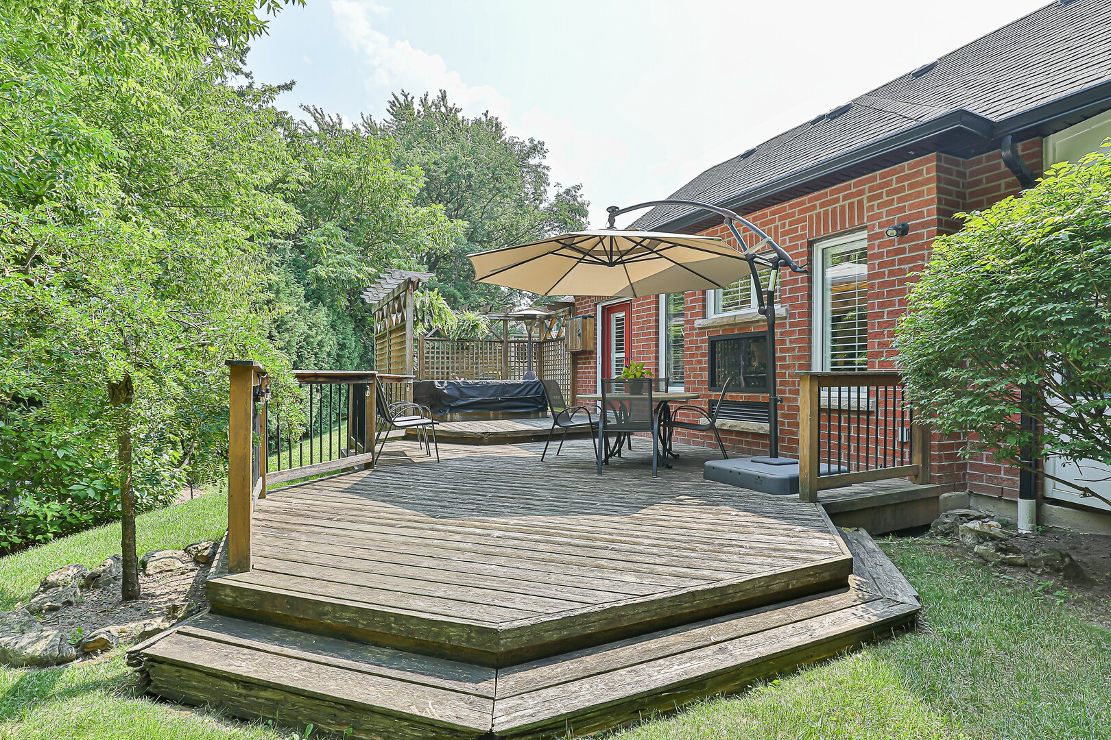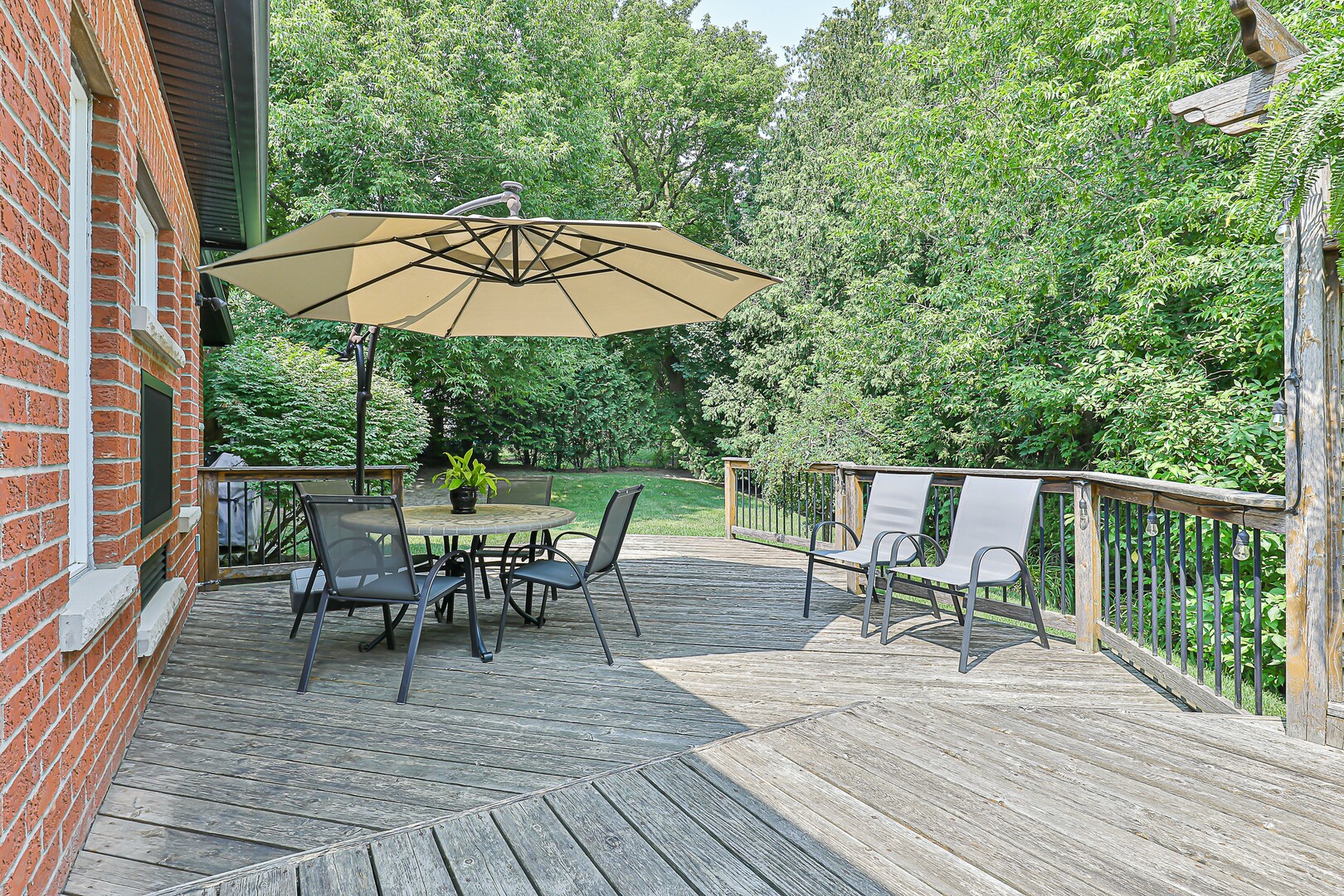 The partially finished basement offers a fourth bedroom and a large utility/storage area. The expansive unfinished space offers endless possibilities. Step outside to your private backyard with a spacious two-tiered deck with a fireplace, gas BBQ hookup and plenty of room for outdoor entertaining and relaxation.