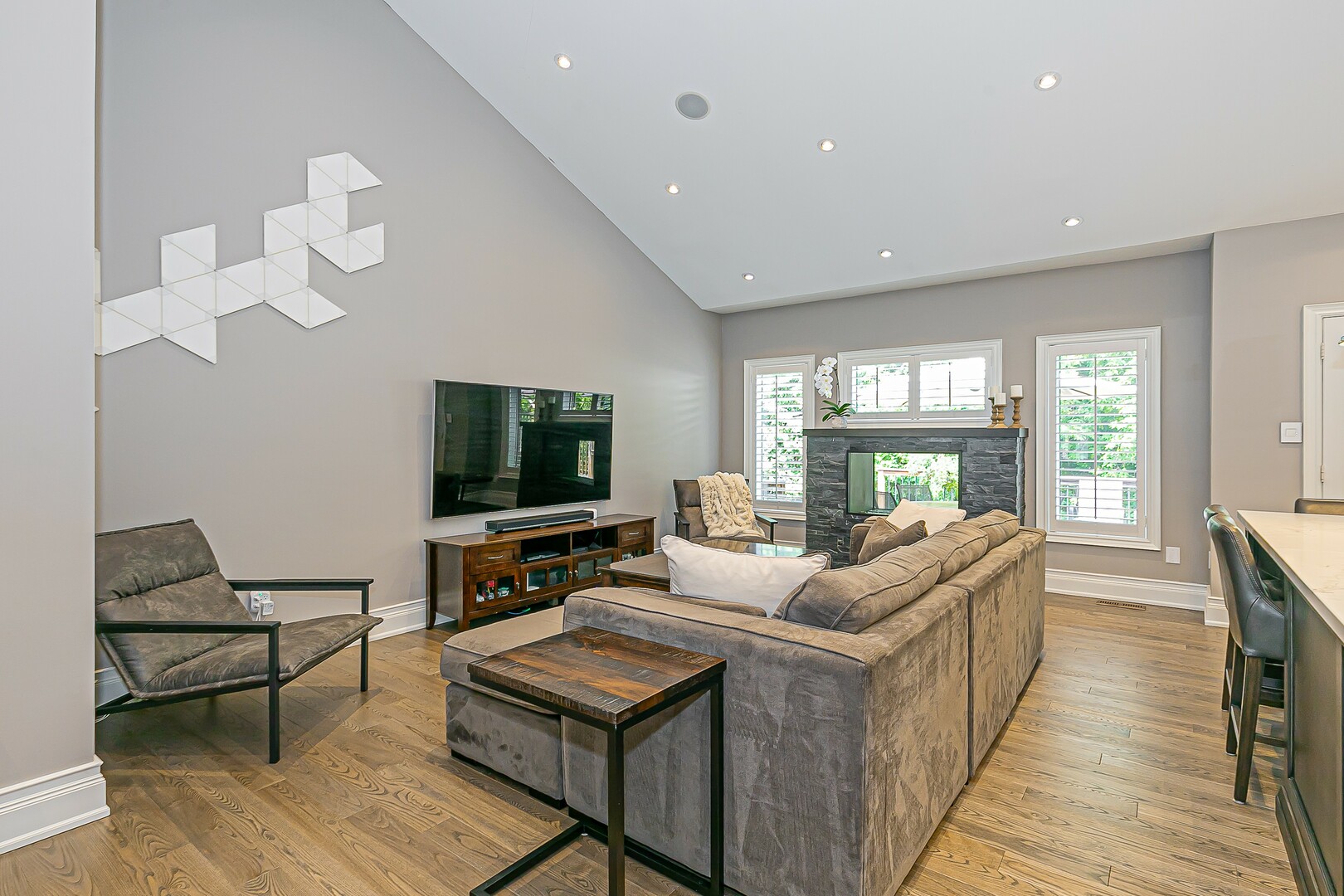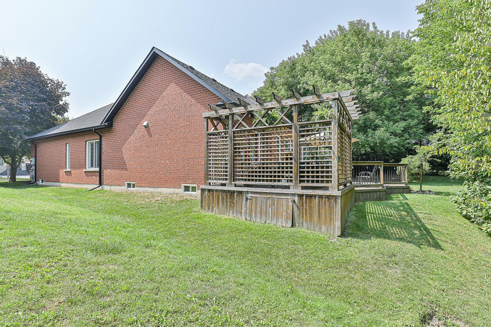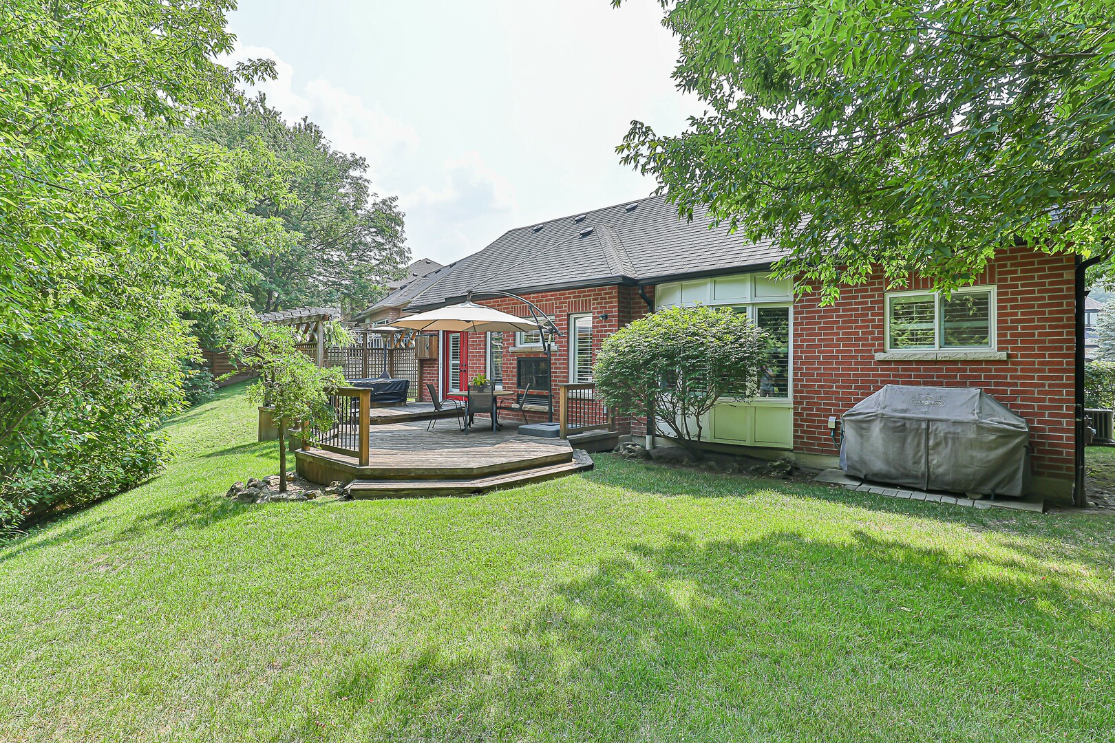 Nestled on a peaceful cul-de-sac, this beautifully updated all-brick bungalow offers exceptional curb appeal with its landscaped gardens, interlock walkway & charming covered front porch. Step inside to a spacious, light-filled foyer with a double-door entry & a walk-in closet. The open-concept main floor is perfect for both everyday living & entertaining. The formal living room boasts elegant crown moulding & a large window overlooking the front yard. The dining room offers a warm & inviting space, perfect for gathering with family & friends. The chef-inspired kitchen is the heart of the home, complete with stainless steel appliances, pot filler, quartz countertops, custom cabinetry, a large island with breakfast bar, pendant lighting & a walkout to the back deck. The adjoining great room features a vaulted ceiling & a cozy double-sided fireplace that can be enjoyed from both indoors & out. A powder room is conveniently located off the main living area. The serene primary bedroom retreat features a vaulted ceiling, his & hers closets- one of which is a walk-in & a spa-like 4 piece ensuite with a freestanding tub & a glass-enclosed shower with rain showerhead and a handheld. Two additional bedrooms feature pot lights, ceiling fans, closets and share a stylish 4 piece bathroom. The laundry/mudroom is thoughtfully designed with custom cabinetry, quartz countertops, a built-in bench with hooks & direct access to the double car garage. Beautiful hardwood floors run throughout the main level. California shutters adorn this home enhancing both style & privacy. A built-in sound system adds an extra touch of luxury. The partially finished basement offers a 4th bedroom & a large utility/storage area. The expansive unfinished space offers endless possibilities. Step outside to your private backyard with a spacious 2-tiered deck with a fireplace, gas BBQ hookup & plenty of room for outdoor entertaining & relaxation. See attachment for list of updates. (id:9346)