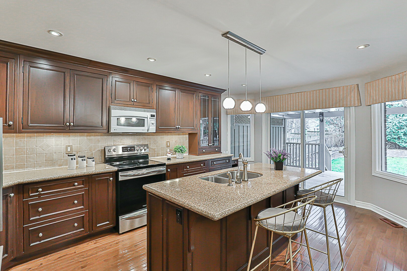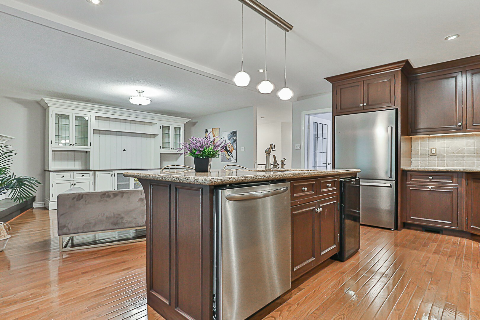 Welcome to this stunning detached bungalow in the sought-after Aurora Highlands community! This home combines modern functionality with a warm, cottage-like charm, offering a perfect retreat for families and professionals alike. Features include 3 spacious bedrooms and 3 full bathrooms, designed for comfort and convenience. A double garage with direct access to the house and a massive driveway accommodating up to 6 cars. An open-concept layout with a combined living and dining room, featuring gleaming strip hardwood flooring throughout. A chef's dream kitchen with custom black walnut cabinetry, a center island with a breakfast bar, and a cozy gas fireplace in the adjoining family room. Perfect for entertaining and family gatherings. Walk out to a spacious deck and beautifully landscaped garden in a fully fenced backyard, offering a serene, and cottage-style lifestyle. A huge basement ready for your personal touch and main floor laundry for ultimate convenience. Nestled on a quiet street, close to places of worship, parks, trails, public transit, grocery stores, banks, and a bustling business center. Quick access to Highways 404/400 ensures easy commuting. This property combines the tranquility of suburban living with all the conveniences of urban amenities. Don't miss the opportunity to make this your forever home! Schedule your viewing today!