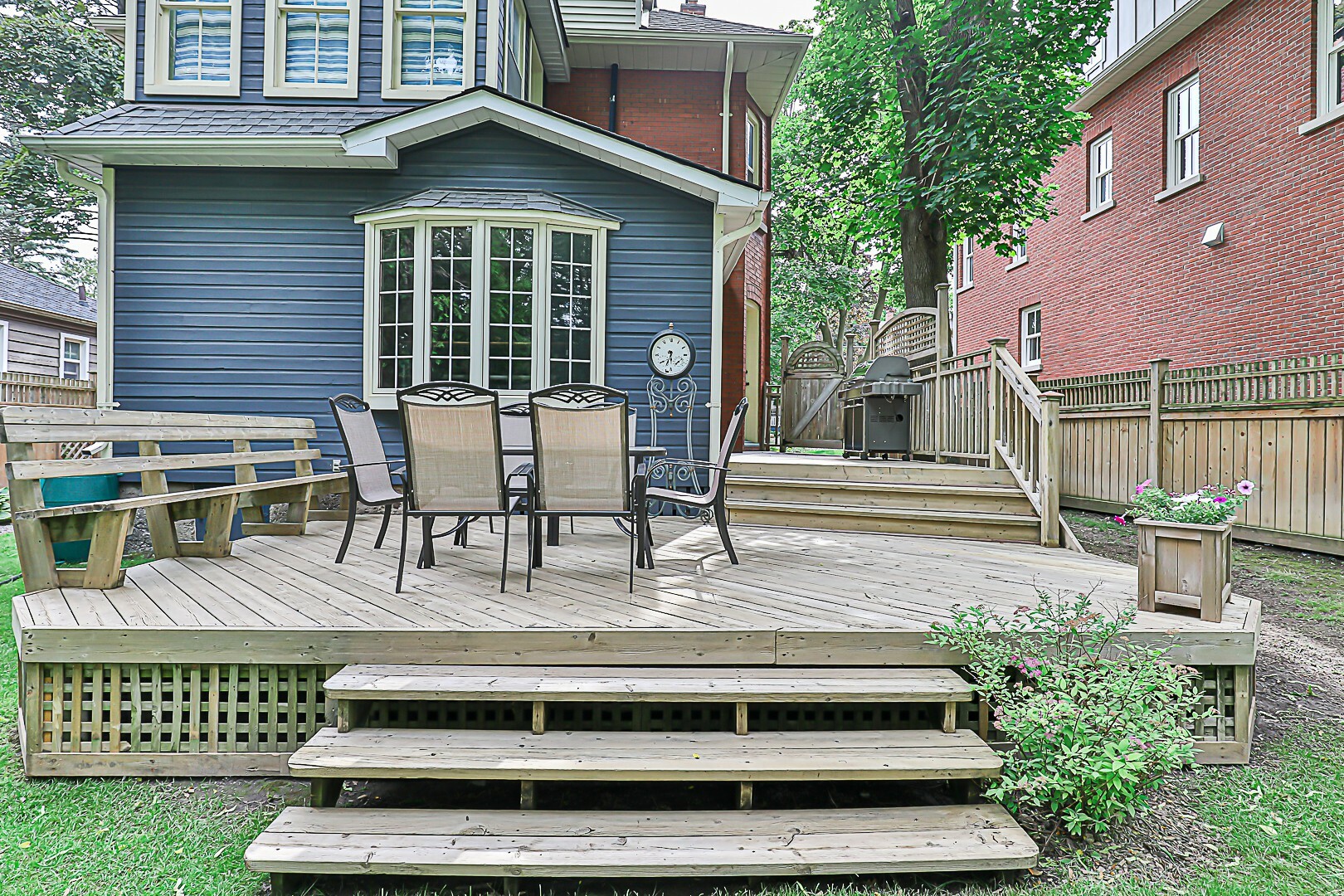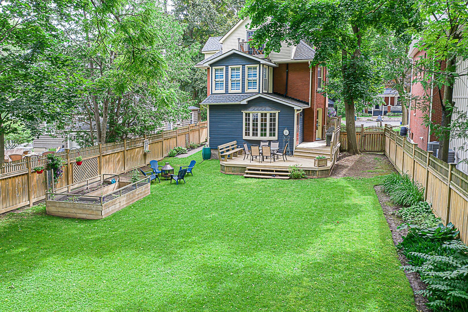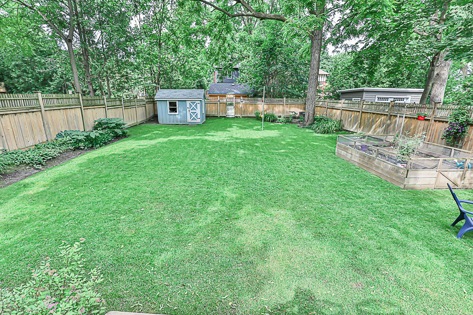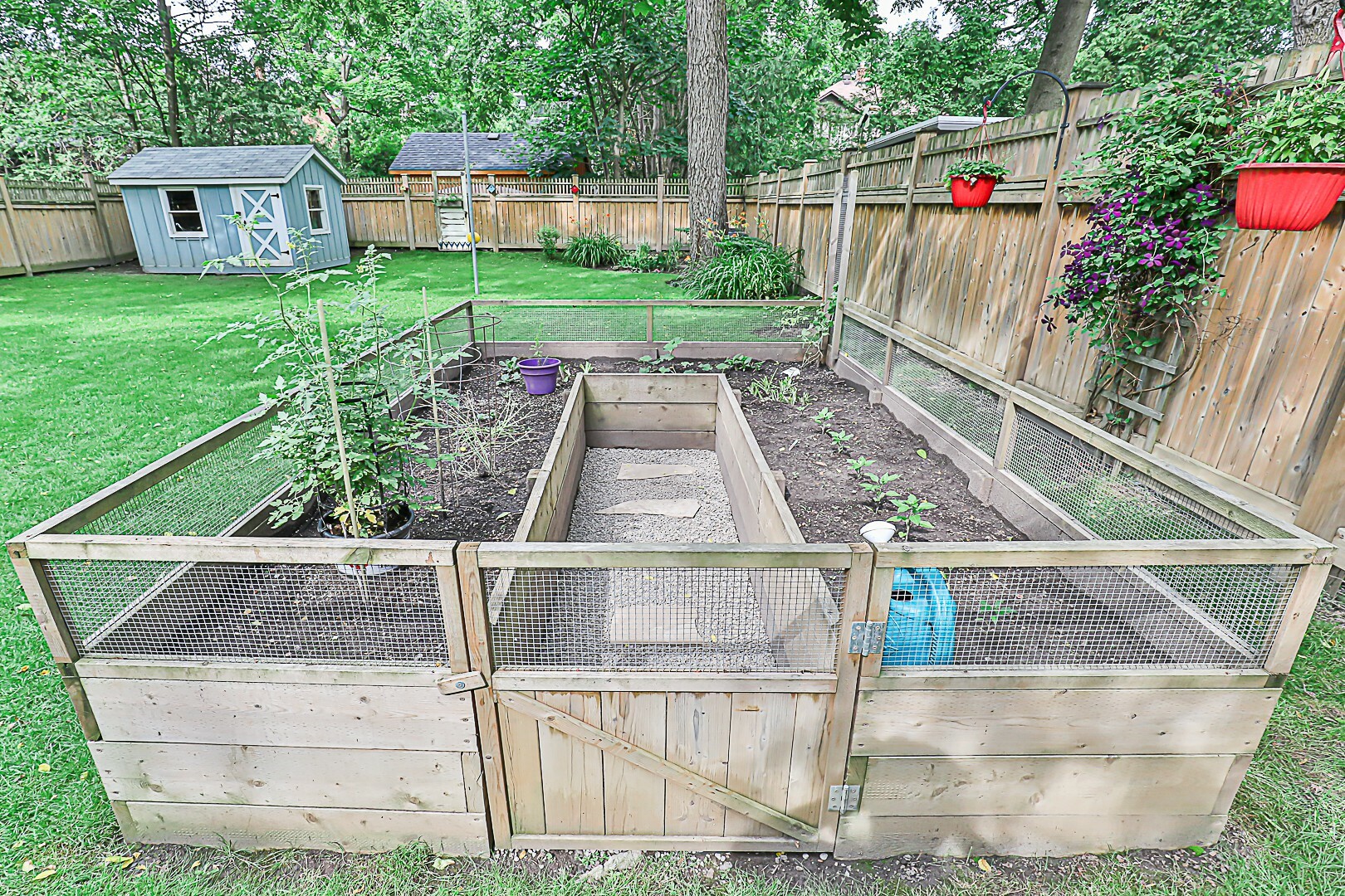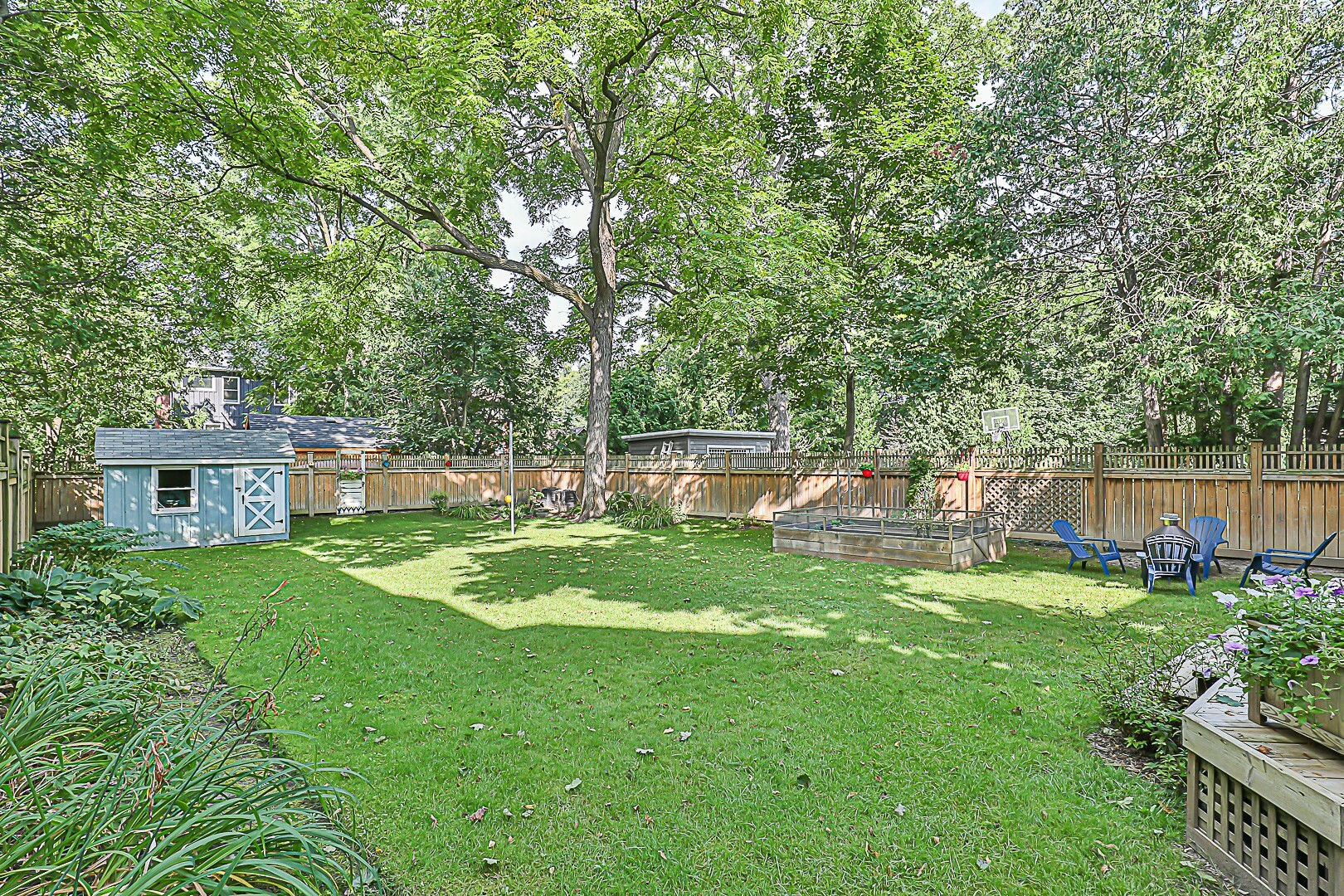 The private Backyard is what dreams are made of. An expansive yard with a 2-tiered deck, Garden Shed, raised vegetable garden, edged with perennial gardens, and towering tree’s on and around the property.