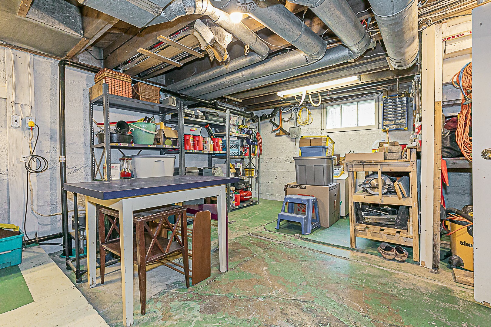 Laundry is in the Basement along with a Workshop. Half the basement is partially finished and is currently being used for storage but could easily become a Rec Room with above grade windows at each end.