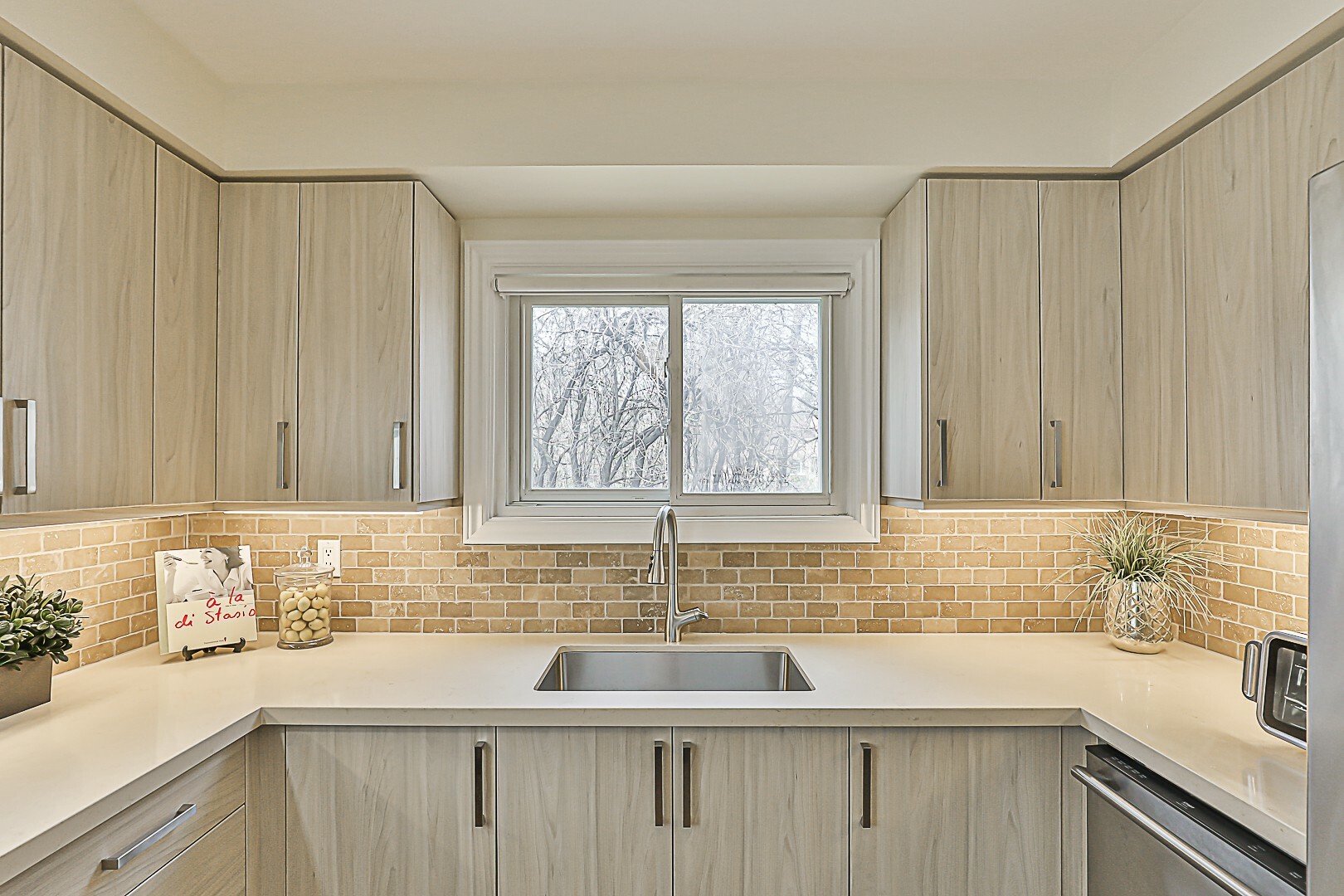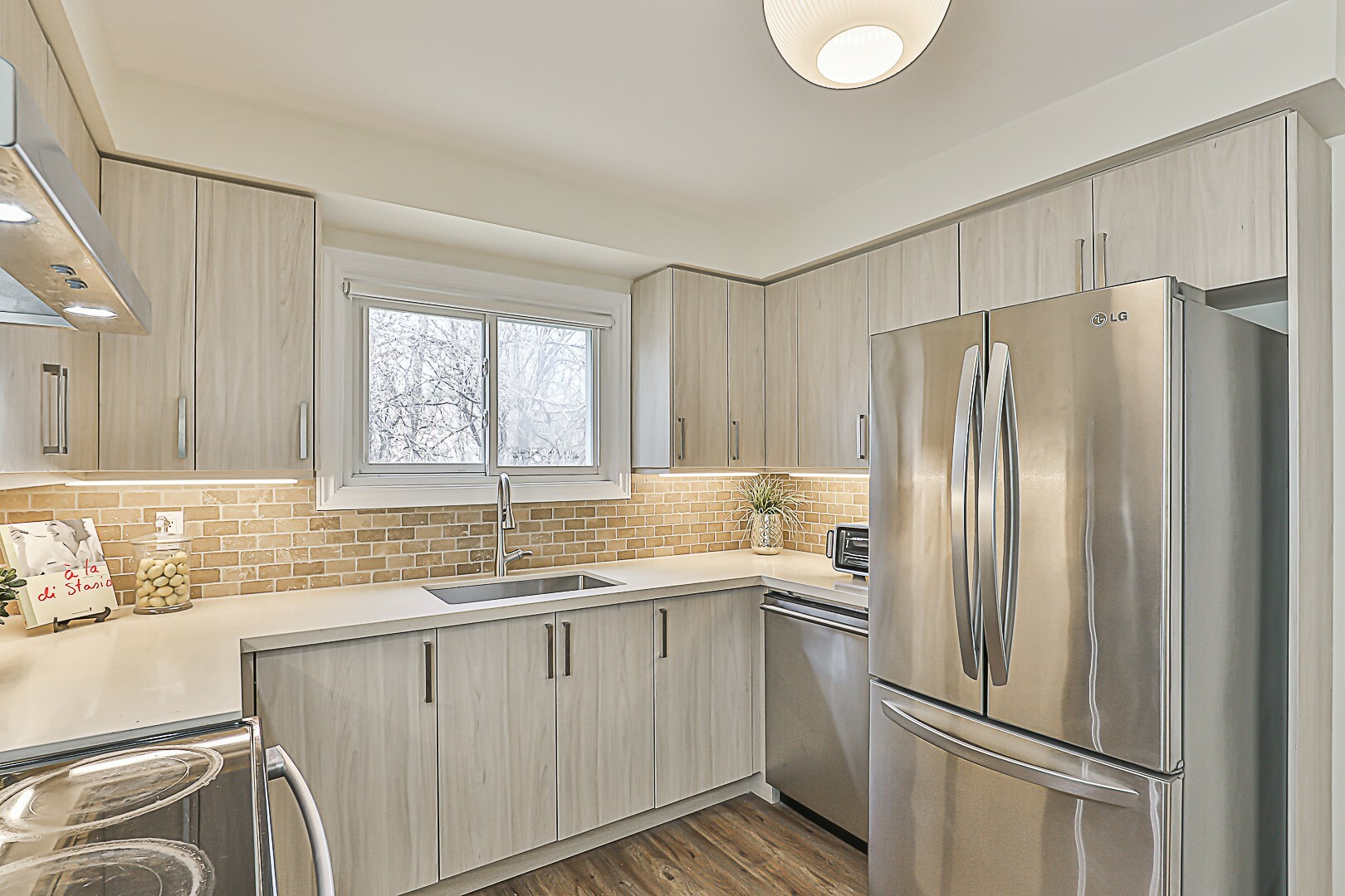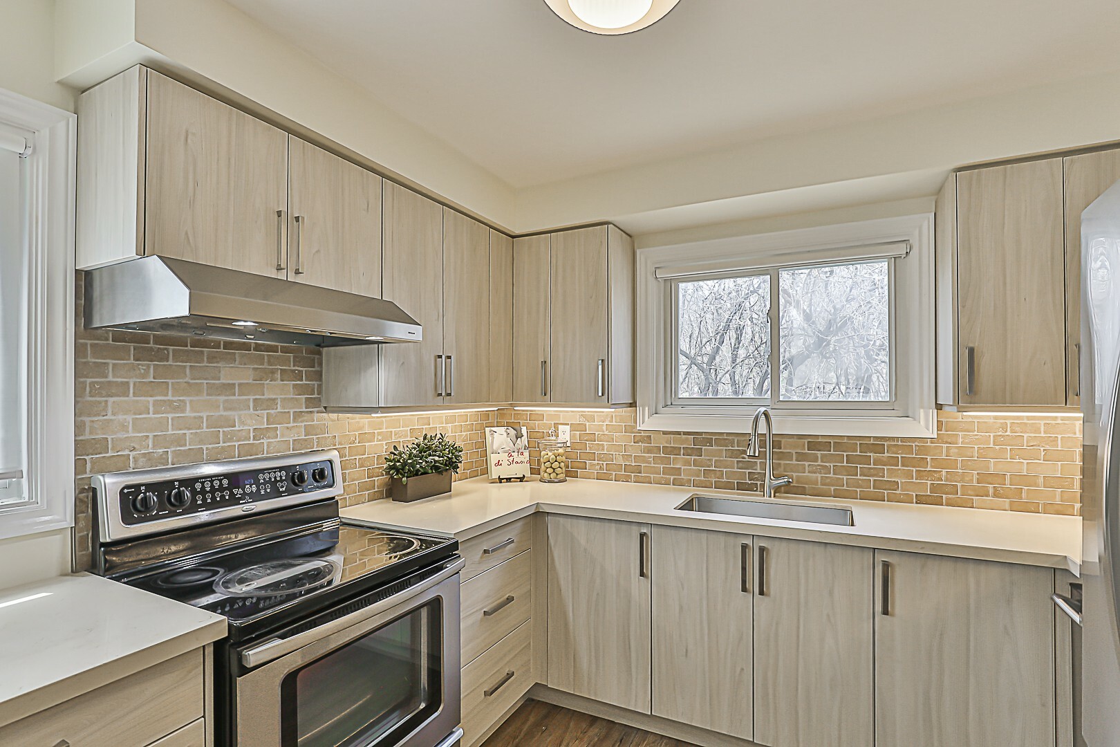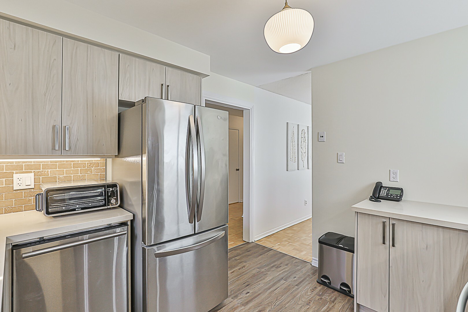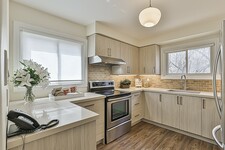 The heart of the home is undoubtedly the stunning kitchen. Completely transformed in 2023, it showcases gorgeous quartz countertops, cozy under-cabinet lighting, easy-to-clean vinyl floors, plenty of pot drawers, and sleek appliances. Open up a corner cupboard and see the thoughtful design details that went into this renovation. You'll love how the kitchen flows into the dining room and spacious living area—ideal for hosting gatherings. Picture those dinner parties and holiday celebrations filled with laughter and joy—it truly is a space for creating lasting core memories.