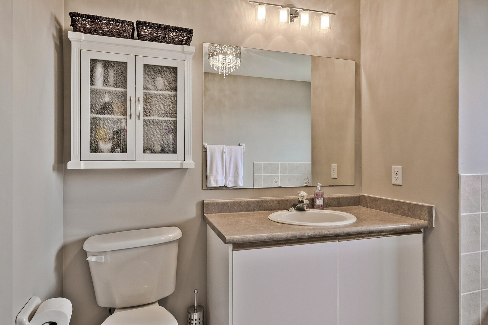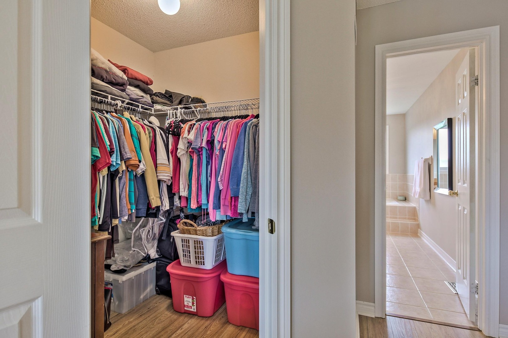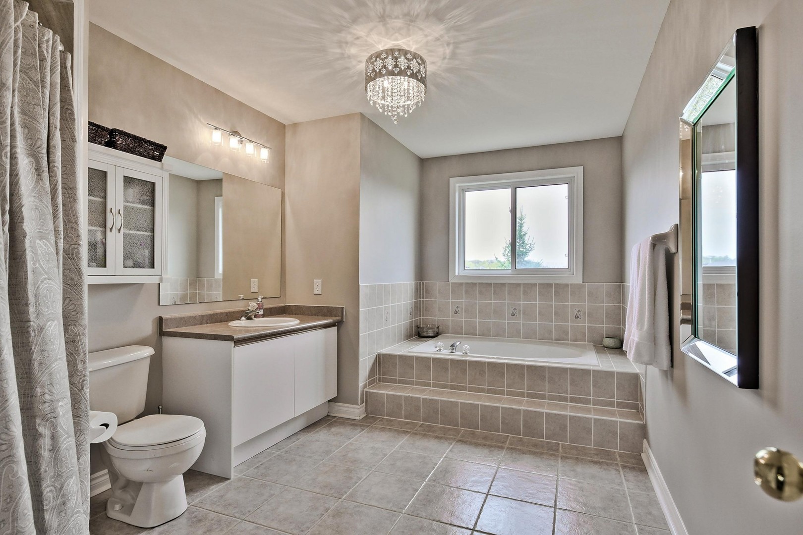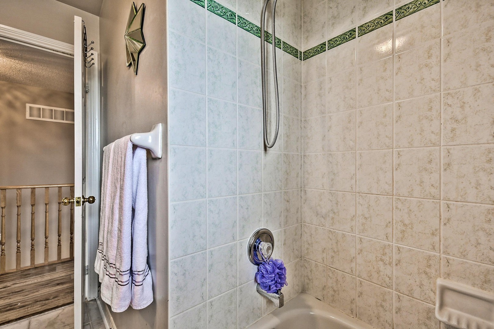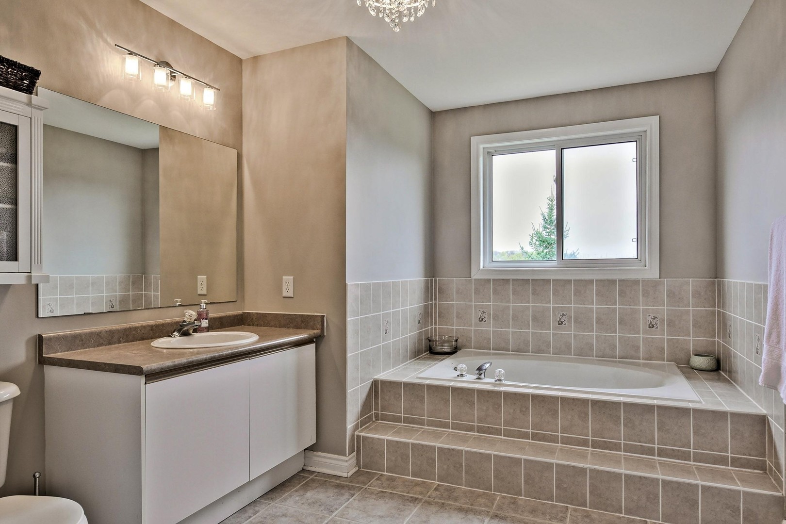Spacious foyer, formal living room and dining room, sunken fam rm c/w gas fireplace. Kitchen with w/o to deck and private fenced yard. Hugh master suite with w/i closet and ensuite. 2 car attached garage with inside entry. Newly painted and new flooring.