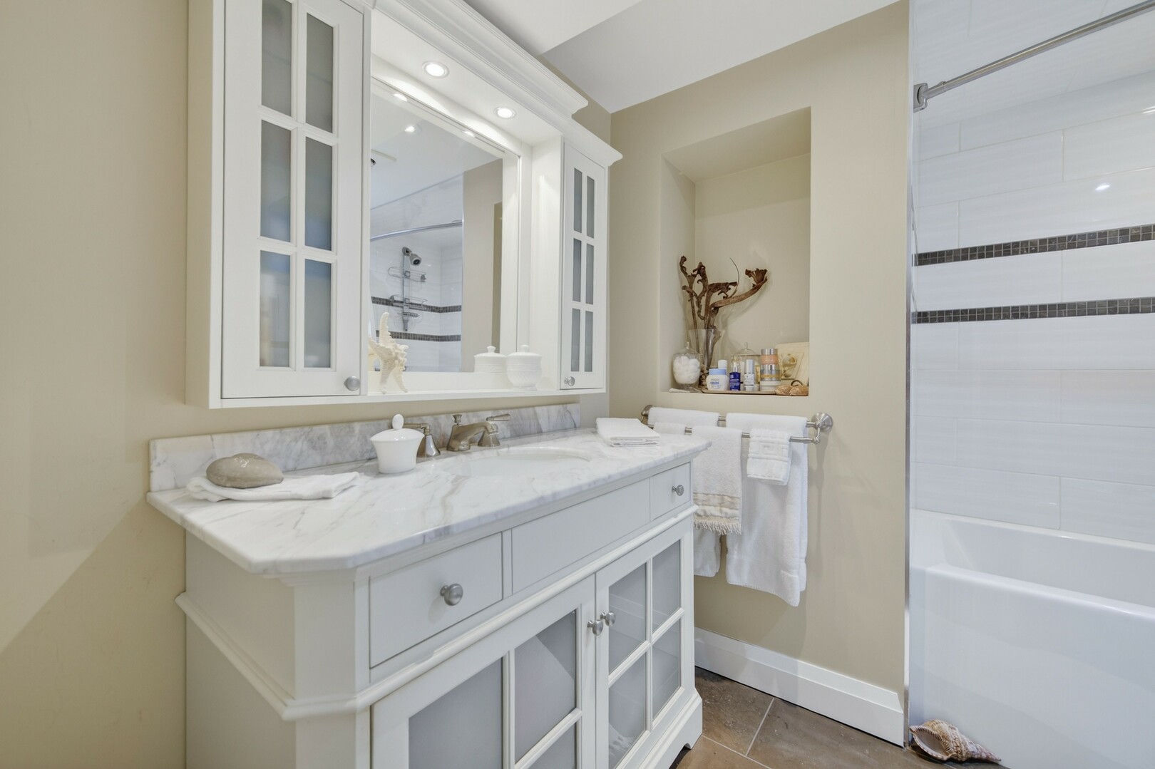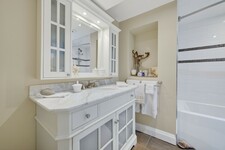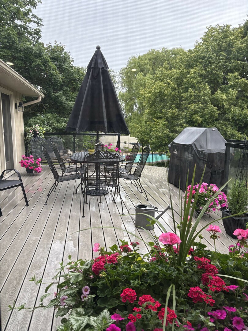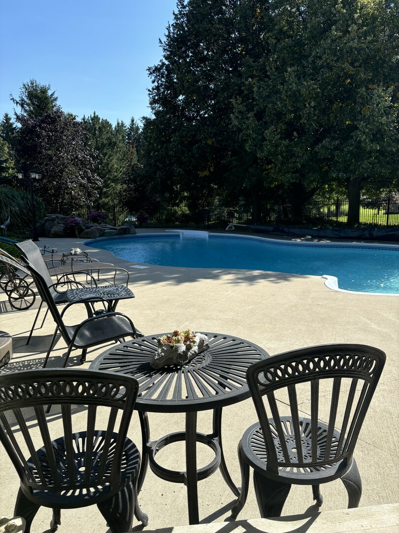 When summer arrives, the backyard becomes the backdrop for unforgettable memories—pool days, birthday parties, and quiet evenings by the water. The heated inground pool, waterfall feature, and pool house are all enclosed by an elegant powder-coated wrought-iron fence, while a composite deck leads you from the house to the pool area, making entertaining easy and effortless.