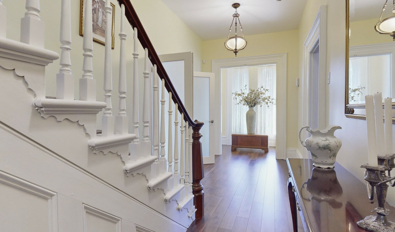 A truly unique home boasting 7 bed, 5 bath & has been tastefully updated sparing no expense for modern comfort while trying to keep the original charm. New hardwood floors, heated floors in the front entrance, sunroom and 4 of the bathrooms. Main floor laundry features cabinetry for storage, beautiful backsplash & quartz countertops. A custom bench & closet system has been installed at the front entrance for convenience & extra storage. Known as Cherry Cottage circa 1877 this home is essentially two homes in one with slight differences in architectural details between the East & West side of the home. Featuring high ceilings, large windows, 13inch baseboards, crown molding, double staircases, floor-to-ceiling pocket doors separating the formal dining & sitting room, and 2 fireplaces that are now decorative. Main floor games room could also be used as a primary bedroom. At the top of the East staircase, you'll find a beautiful stained-glass feature and 4 of the 7 bedrooms. The luxurious primary suite includes a walk-in closet & ensuite with double sink vanity, soaker tub, luxury steam shower & heated floors. 2 bedrooms share a bath with a gorgeous clawfoot tub. The last bedroom on the East side features a renovated semi-ensuite bath that is shared with the 3 bedrooms that are accessible using the West staircase. There are 2 sets of mechanicals controlling their respective side of the home and were upgraded in 2020 including 2 furnaces, 2 AC condensers and 2 independently metered Boilers feeding 2 indirect hot water tanks, a commercial grade system that provides endless hot water & is ultra efficient. Attic insulation was replaced with 4inch spray foam and 16inch of blown for added comfort & efficiency. This home also attracts attention for its stunning gardens & large inviting porch. The fenced yard offers privacy & a large area that is perfect for entertaining. Upgrades continue outside with a lawn sprinkler system installed in 2020 and a new custom shed in 2023.