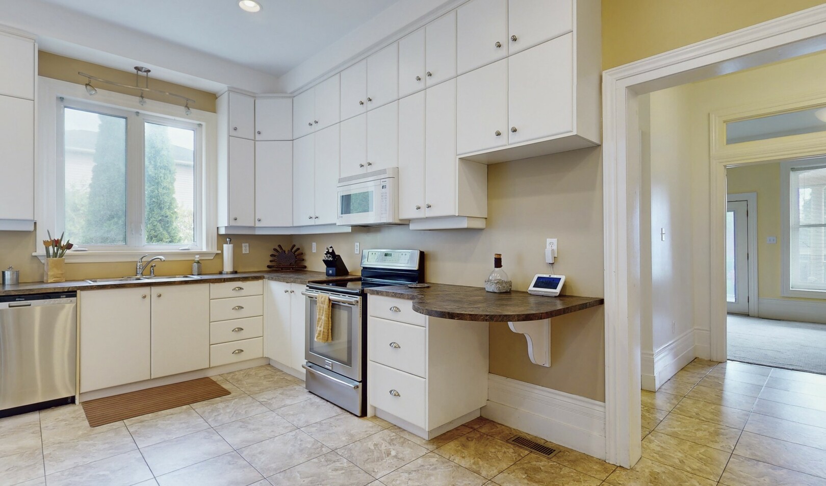 This 7 bedroom, 5 bath home has been tastefully updated for modern comfort with new hardwood floors throughout, and heated tile floors in the front entrance, sunroom and 4 of the bathrooms. Updated main floor laundry features cabinetry for storage, beautiful backsplash and quartz countertops. At the front entrance is a custom bench and closet system for convenience and additional storage.