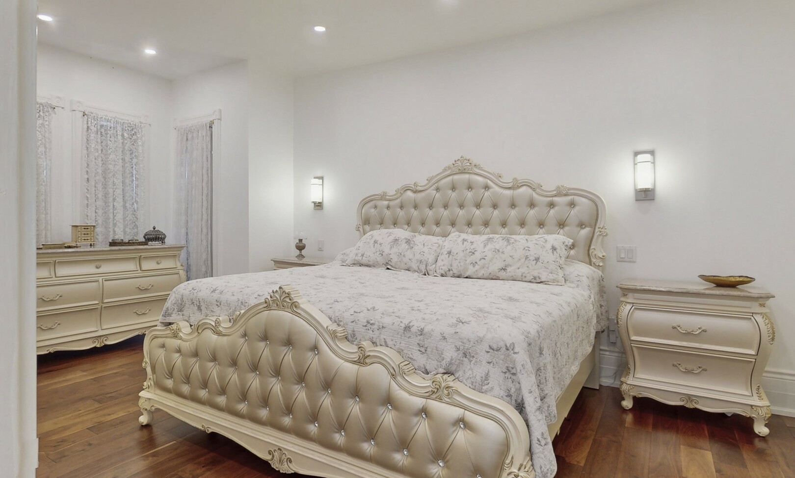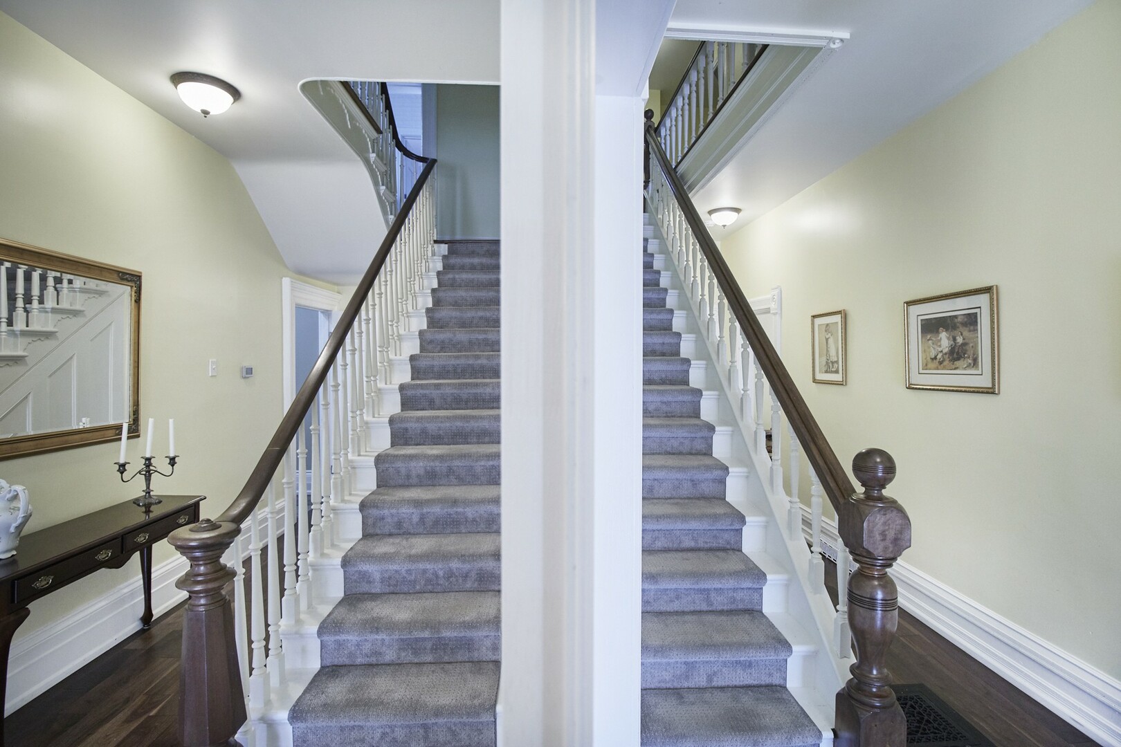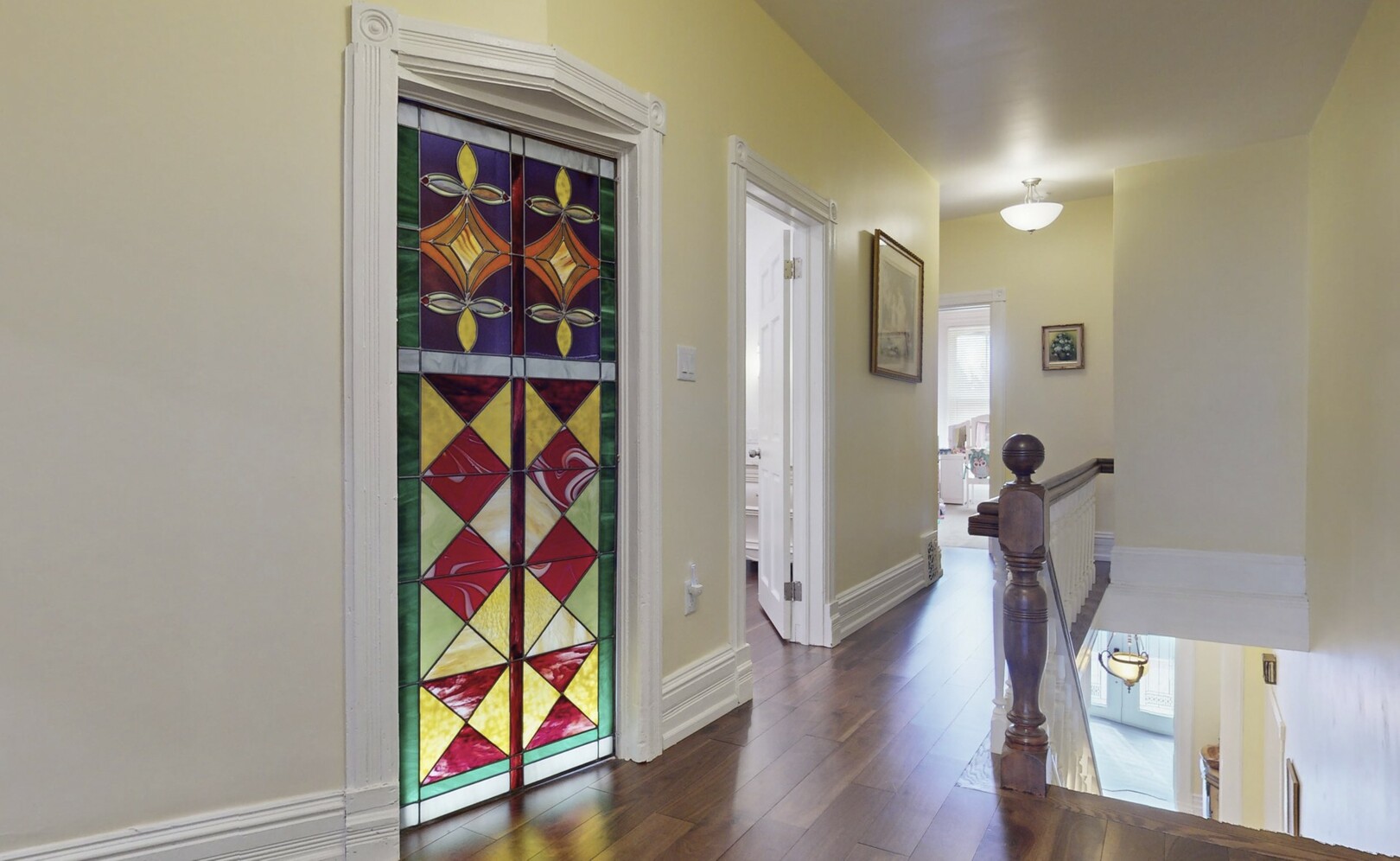 At the top of the East staircase, you'll find a beautiful stained-glass feature and 4 of the 7 bedrooms. The luxurious primary suite includes a walk-in closet, and ensuite with double sink vanity, soaker tub, luxury steam shower and heated floors. 2 bedrooms share a bath with a gorgeous clawfoot tub. The last bedroom on the east side features a renovated semi-ensuite bath that is shared with the 3 bedrooms that are accessible using the West staircase.