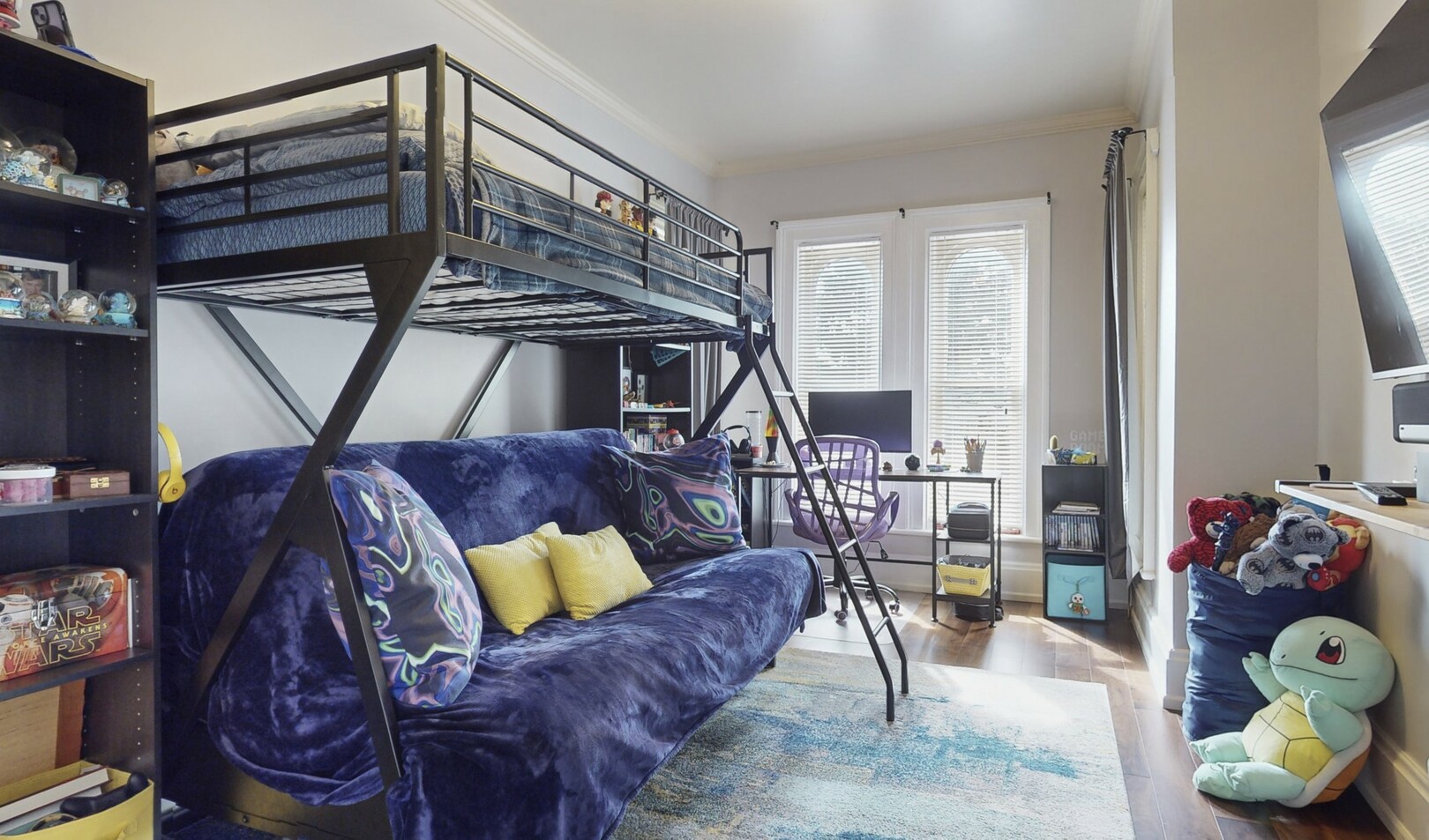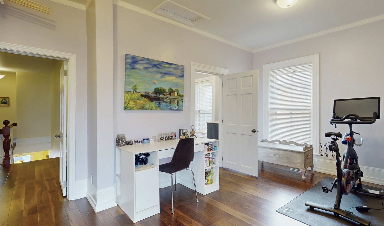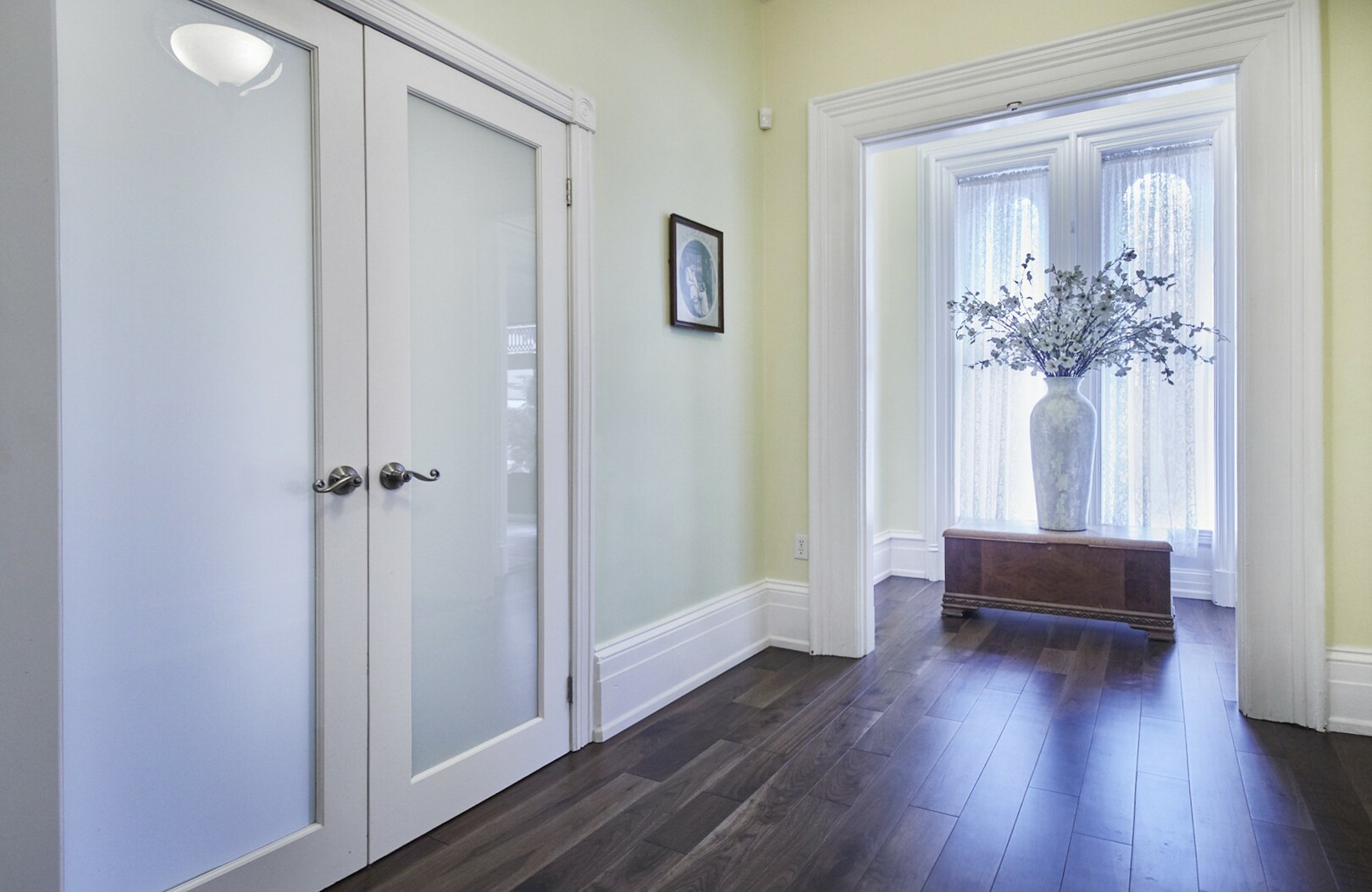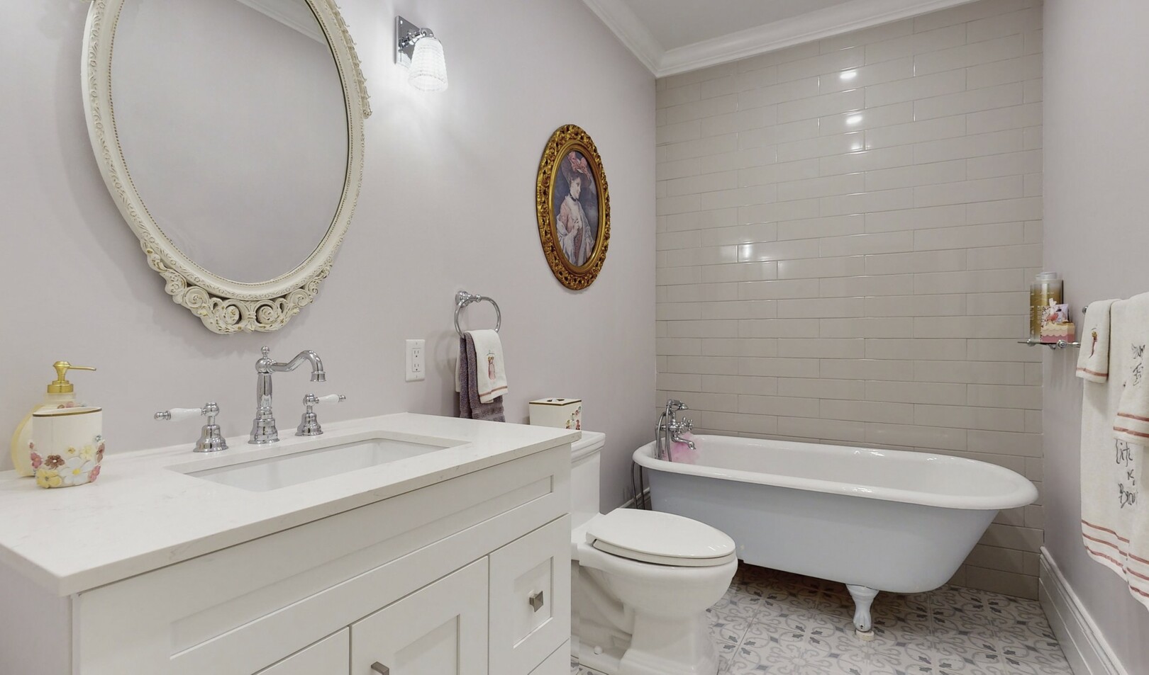 At the top of the East staircase, you'll find a beautiful stained-glass feature and 4 of the 7 bedrooms. The luxurious primary suite includes a walk-in closet, and ensuite with double sink vanity, soaker tub, luxury steam shower and heated floors. 2 bedrooms share a bath with a gorgeous clawfoot tub. The last bedroom on the east side features a renovated semi-ensuite bath that is shared with the 3 bedrooms that are accessible using the West staircase.