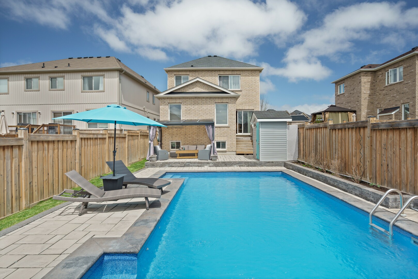 Welcome to 107 Rutherford Road, a beautiful 2-storey detached home with finished basement and inground pool nestled in the heart of Bradford's family-friendly community. This home boasts 4 spacious bedrooms and 4 bathrooms, offering ample space for comfortable living. As you enter, you're greeted by a bright and airy open-concept layout, perfect for both entertaining and everyday living. The main floor features a modern kitchen equipped with stainless steel appliances, a center island, and a cozy breakfast area with sliding glass doors leading out to a private backyard oasis featuring a heated, saltwater inground pool. The living and dining areas create a warm and inviting atmosphere. Family room features a vaulted ceiling, large windows and electric fireplace. Upstairs, the primary bedroom serves as a tranquil retreat, complete with a 4-piece ensuite bathroom and a walk-in closet and three additional well-appointed bedrooms. The finished basement offers a versatile space with recreation room, gym, 2pc washroom and includes ample storage options. This home is just minutes from Highway 400, and within walking distance to parks, schools, and local amenities. Don't miss the opportunity to make this exceptional property your new home. (id:9346)