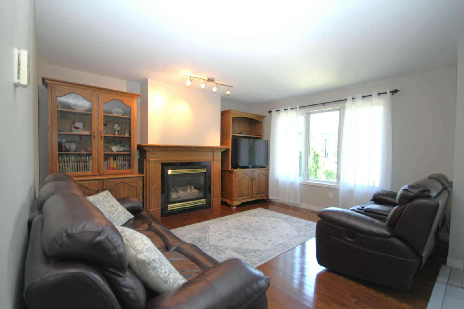 The main floor family room is warm and welcoming, centered around a cozy gas fireplace and custom cabinetry, ideal for relaxing evenings or movie nights. A large main floor laundry/mudroom with garage access adds practical everyday convenience.