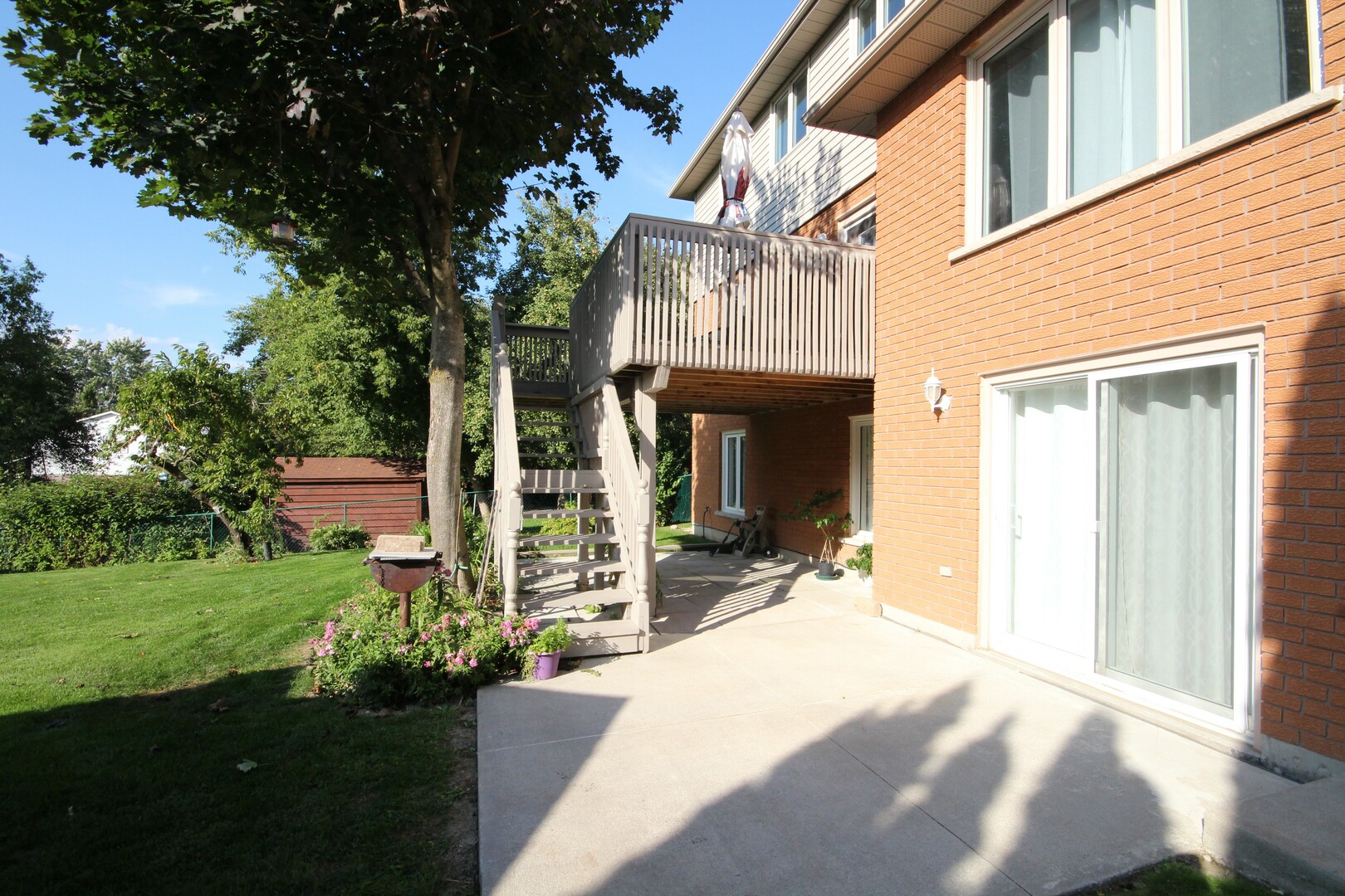 French doors open into the bright and spacious living and dining room combination, offering a formal space perfect for entertaining or hosting holiday gatherings. The heart of the home—an updated kitchen—features granite countertops, stainless steel appliances, a tile backsplash, pantry, and ample cabinetry to satisfy both style and function. The adjacent breakfast area leads to a walkout deck, where you can enjoy morning coffee or evening dinners overlooking your expansive backyard oasis, complete with a patio, mature fruit trees, garden beds, and storage shed.