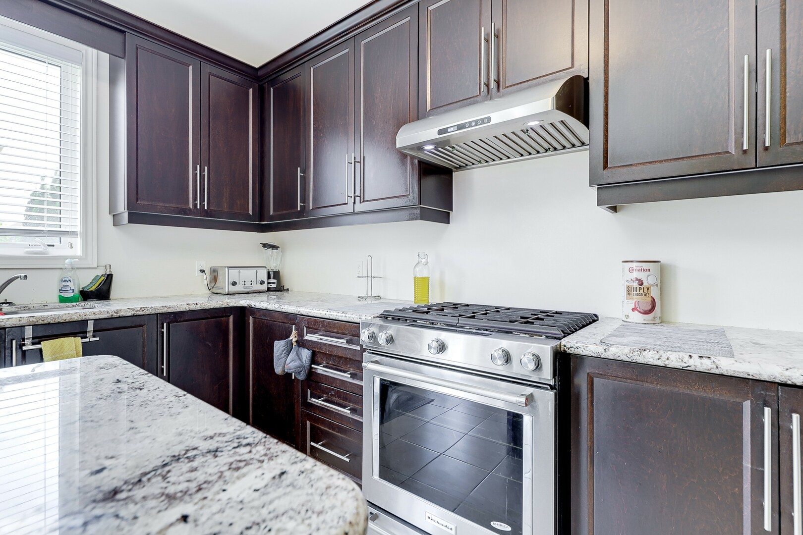 Large kitchen with pass-through to dining and living areas