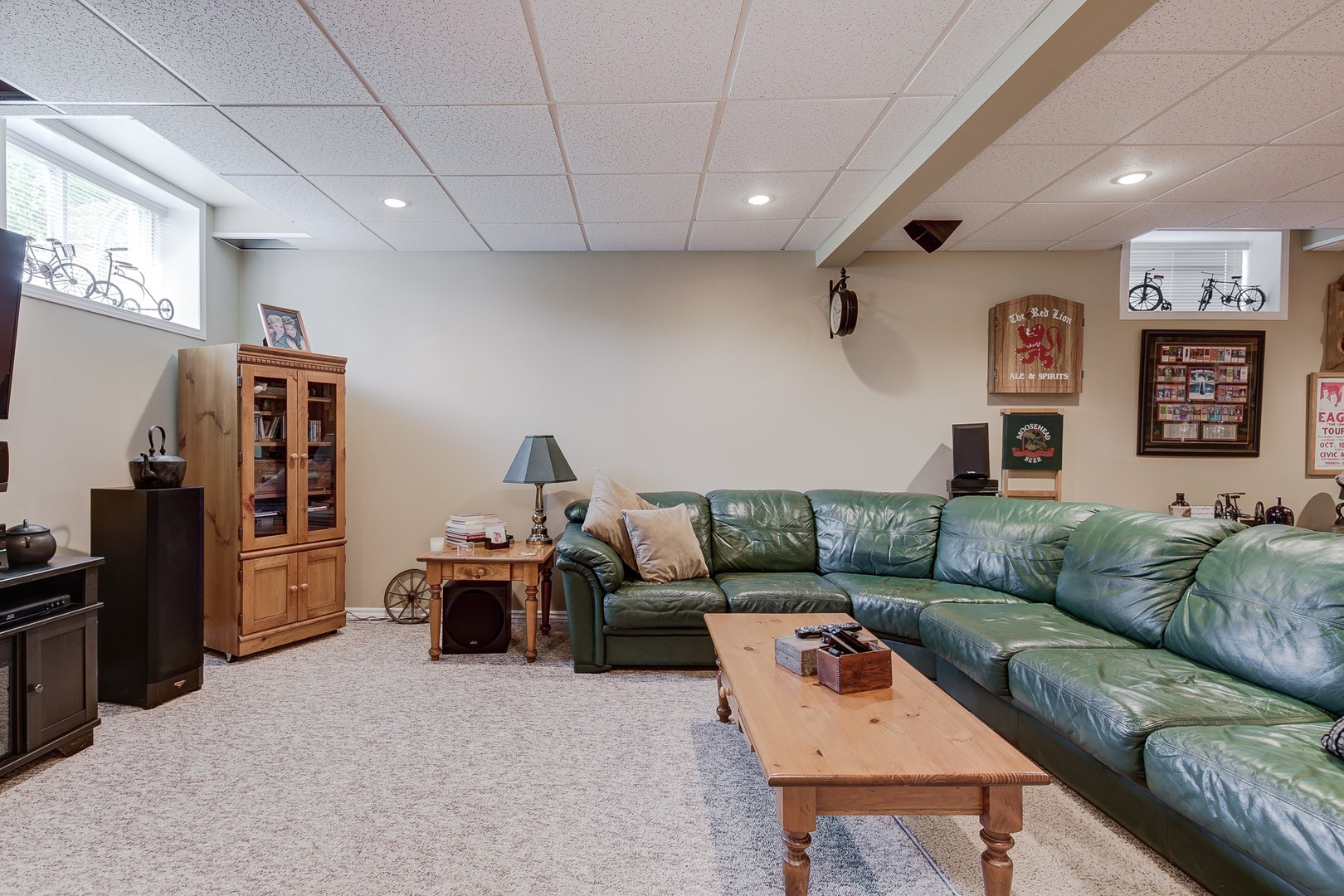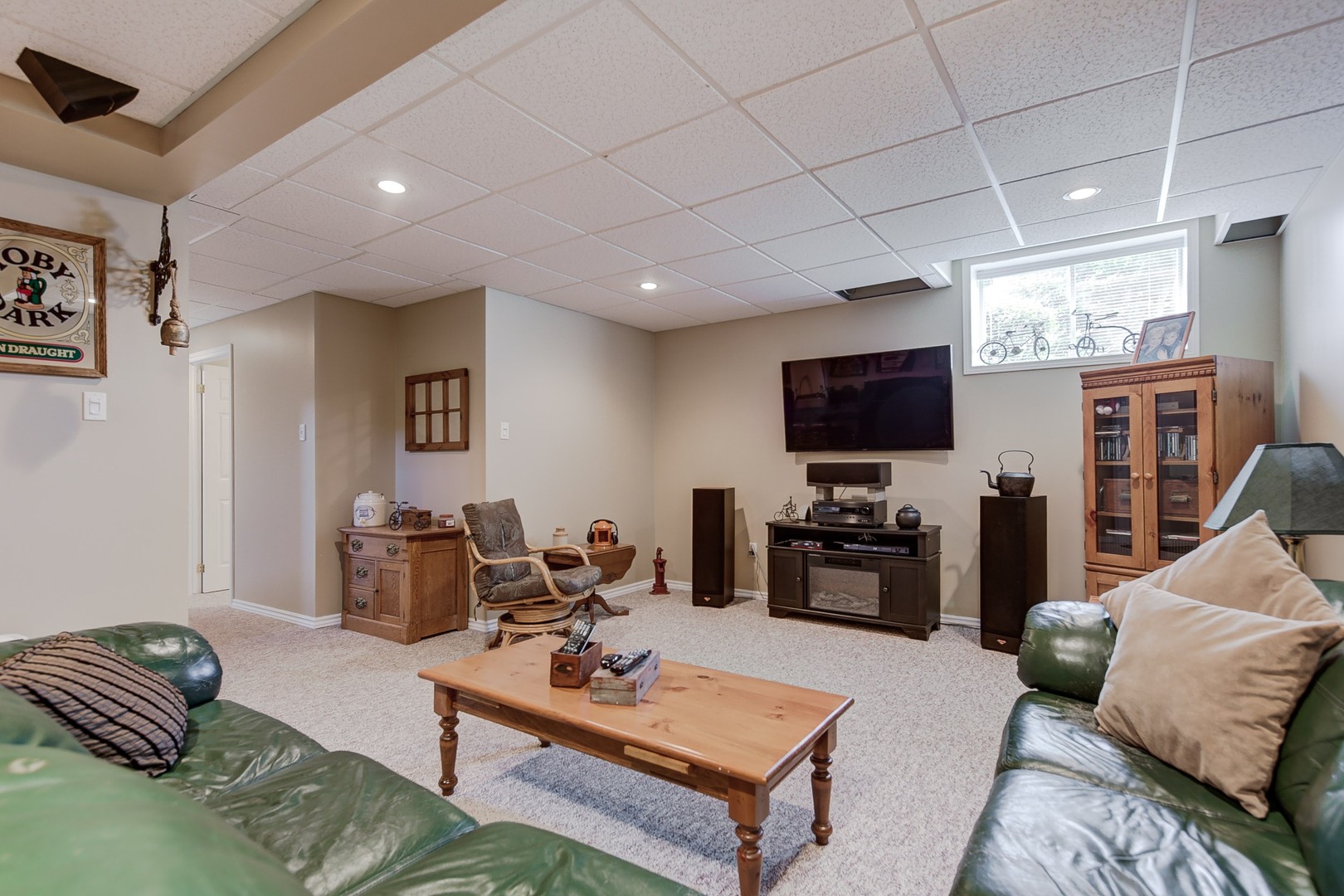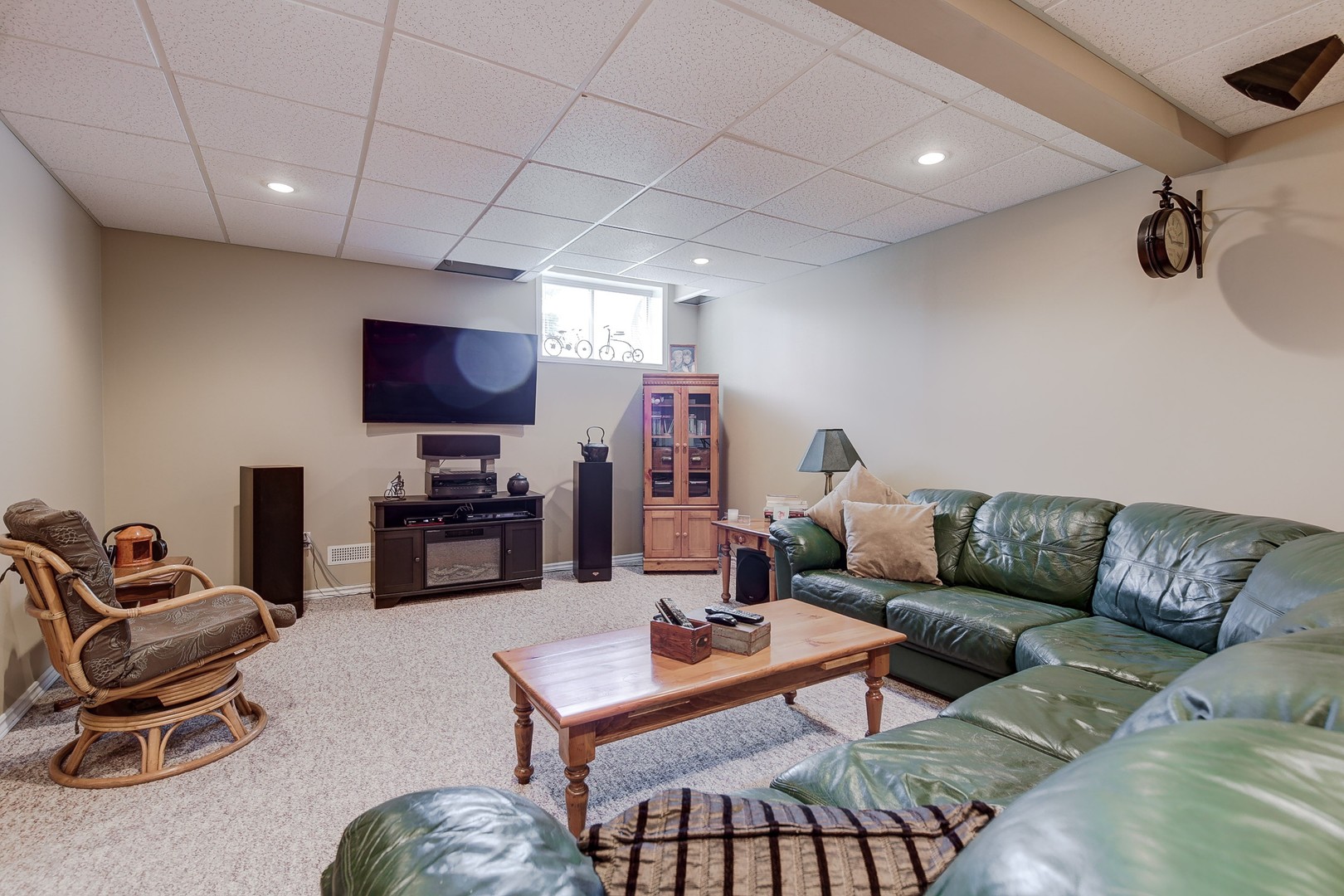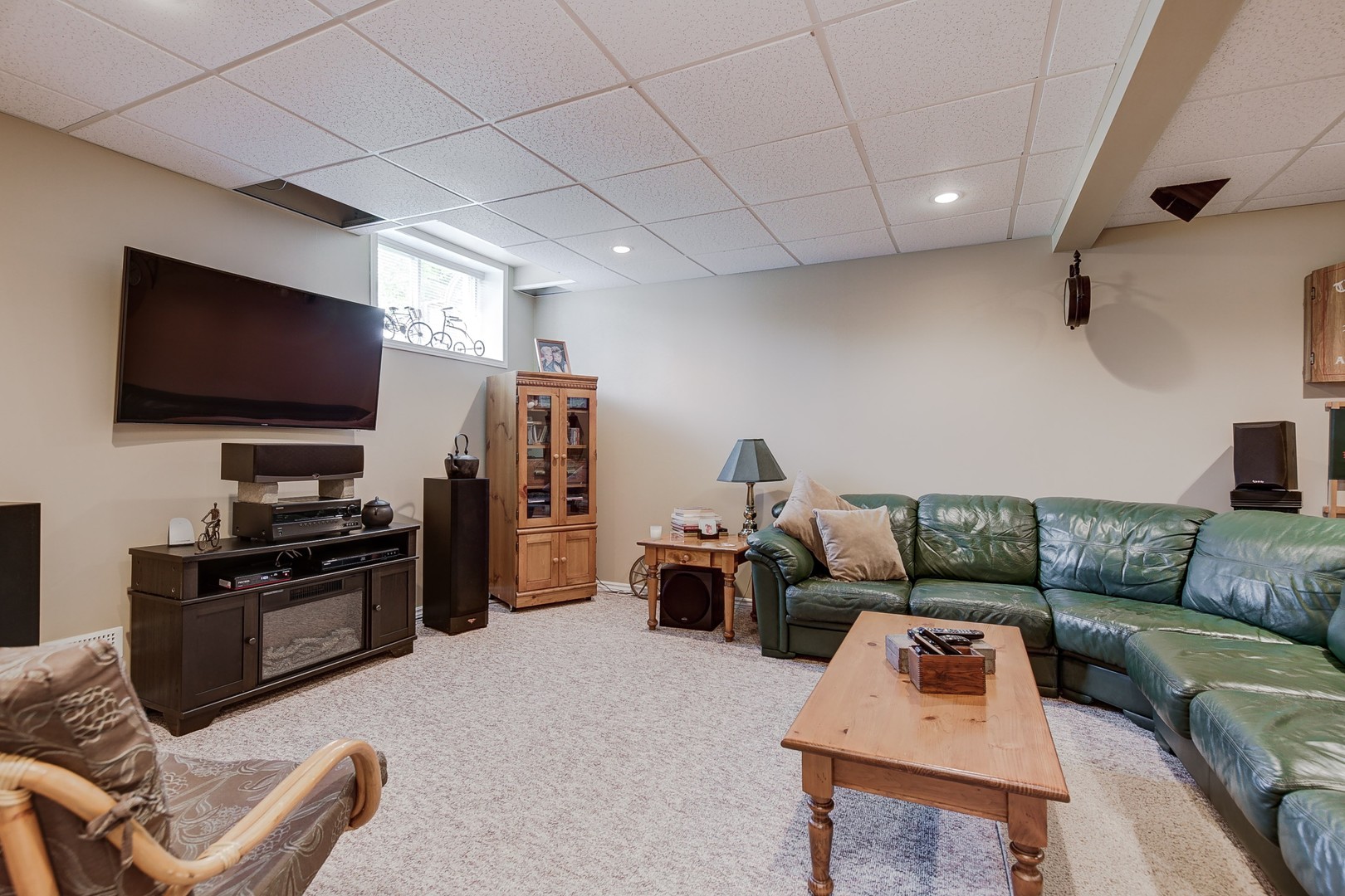 Fully finished bright basement with above grade windows, boasts an extra 3 piece washroom, two extra bedrooms, and an office with storage closet.Inviting family room has and electric fireplace, dry bar, and pot lights.